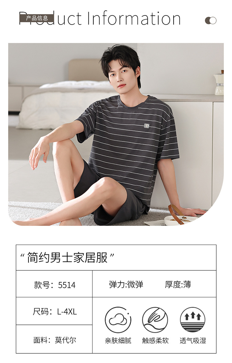 Pajamas modales de hombre, pantalones cortos de mangas cortas, 2025 nuevo verano delgado, casual, grande, ropa de hogar
