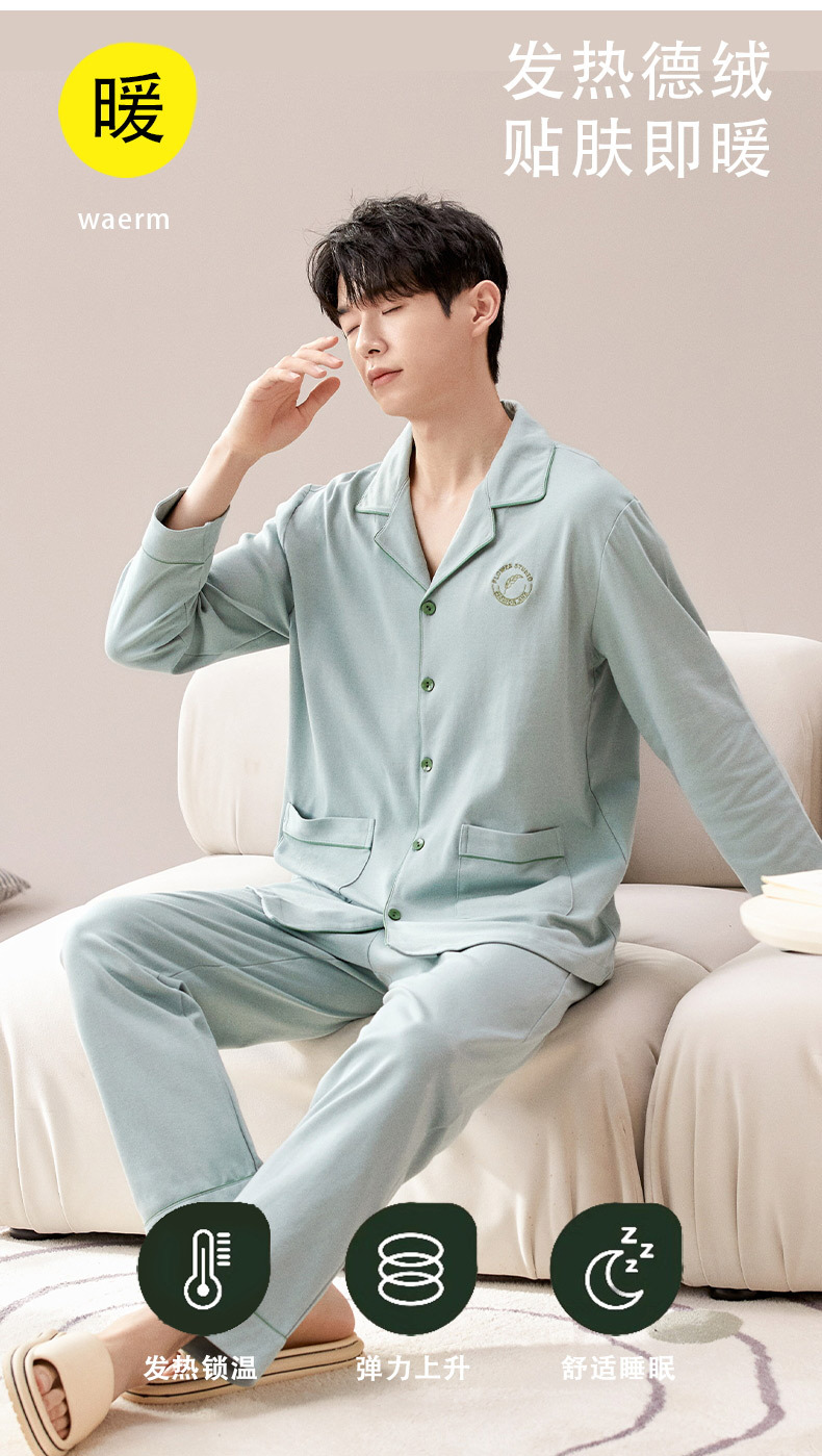 Pijamas de hombre primavera y otoño de hombre 2025 nuevo de terciopelo de manga larga otoño y invierno engrosado conjunto de ropa cálida de invierno