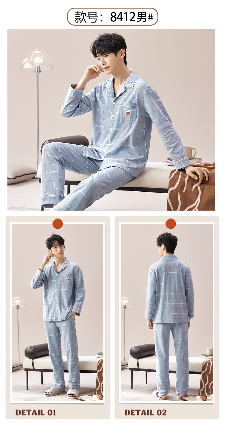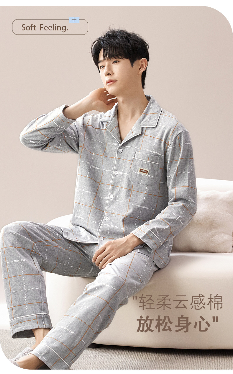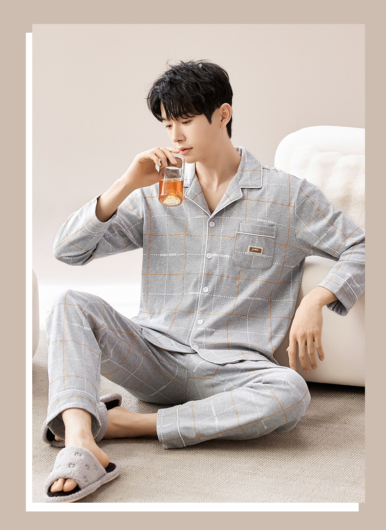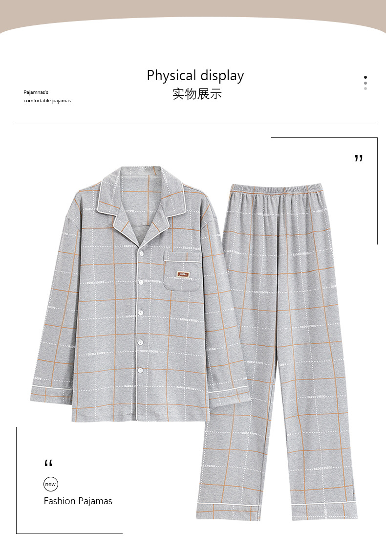2024 primavera nuevos pijamas de los hombres de mediana edad y ancianos de algodón cardigan jóvenes pantalones de manga larga ropa en el hogar traje casual