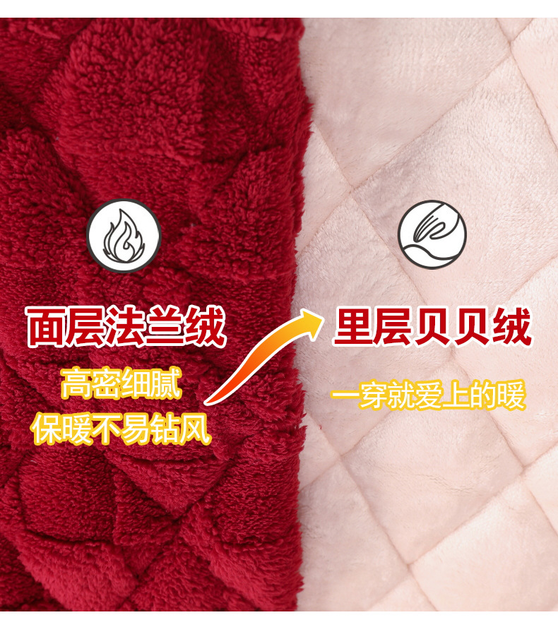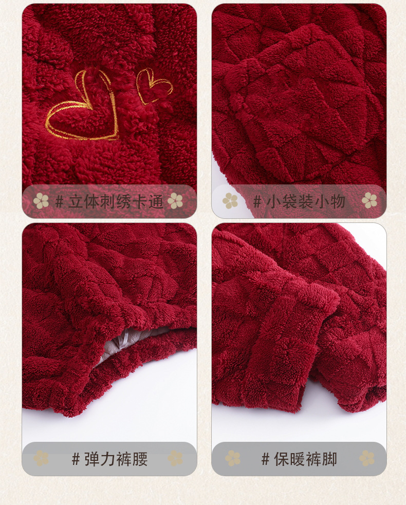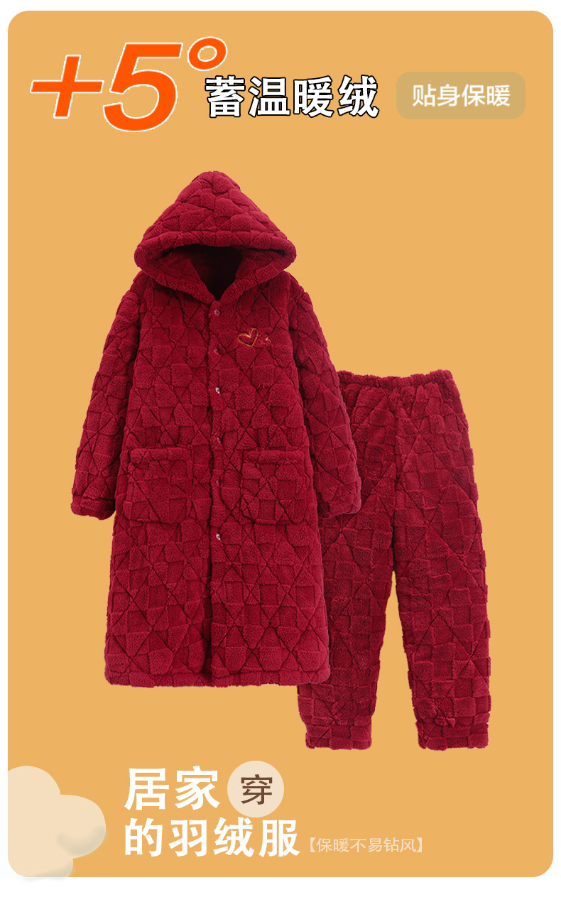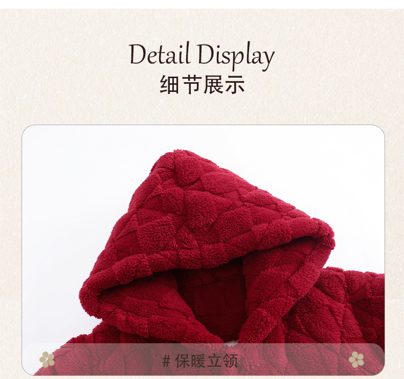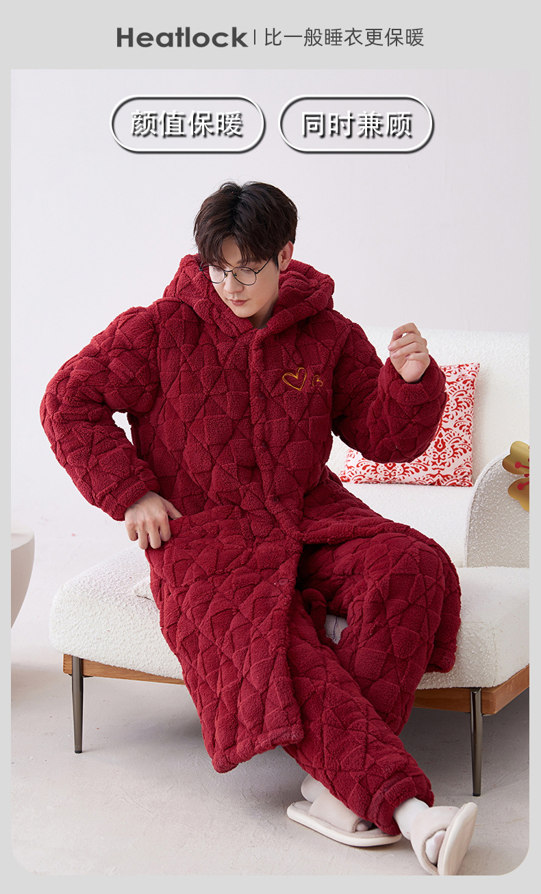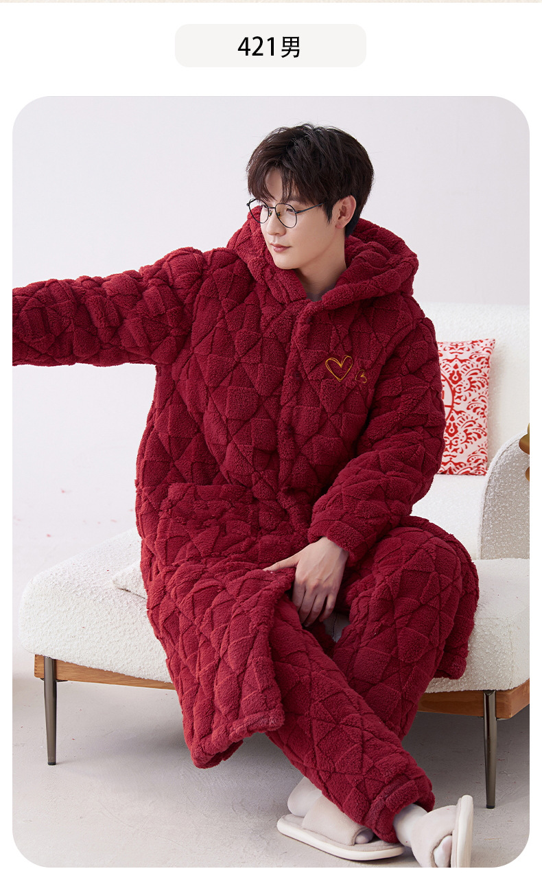 Pijamas de hombre de otoño e invierno de lana de coral de tres capas acolchadas engrosadas de lana forrada de invierno de color rojo brillante cálido traje de desgaste para el hogar