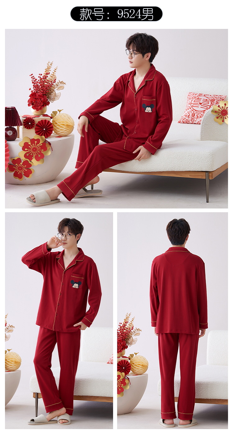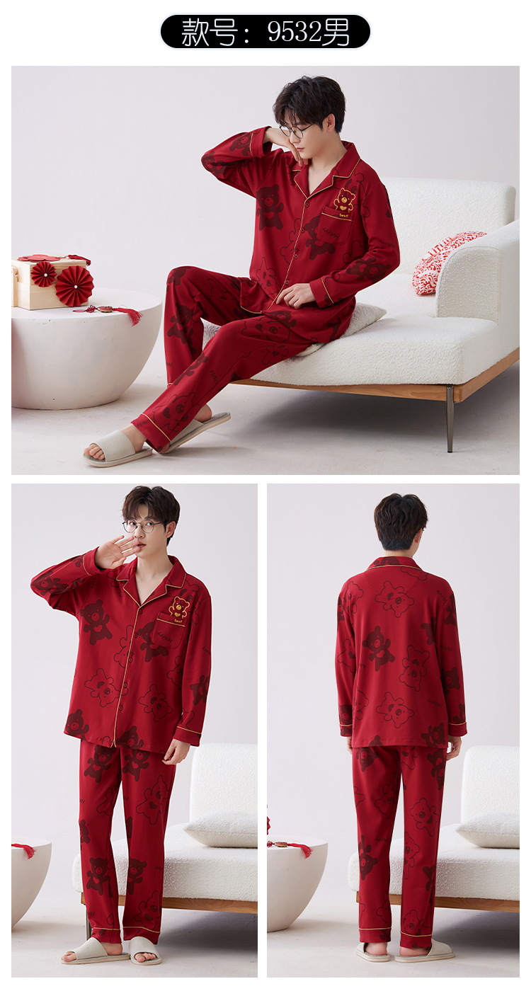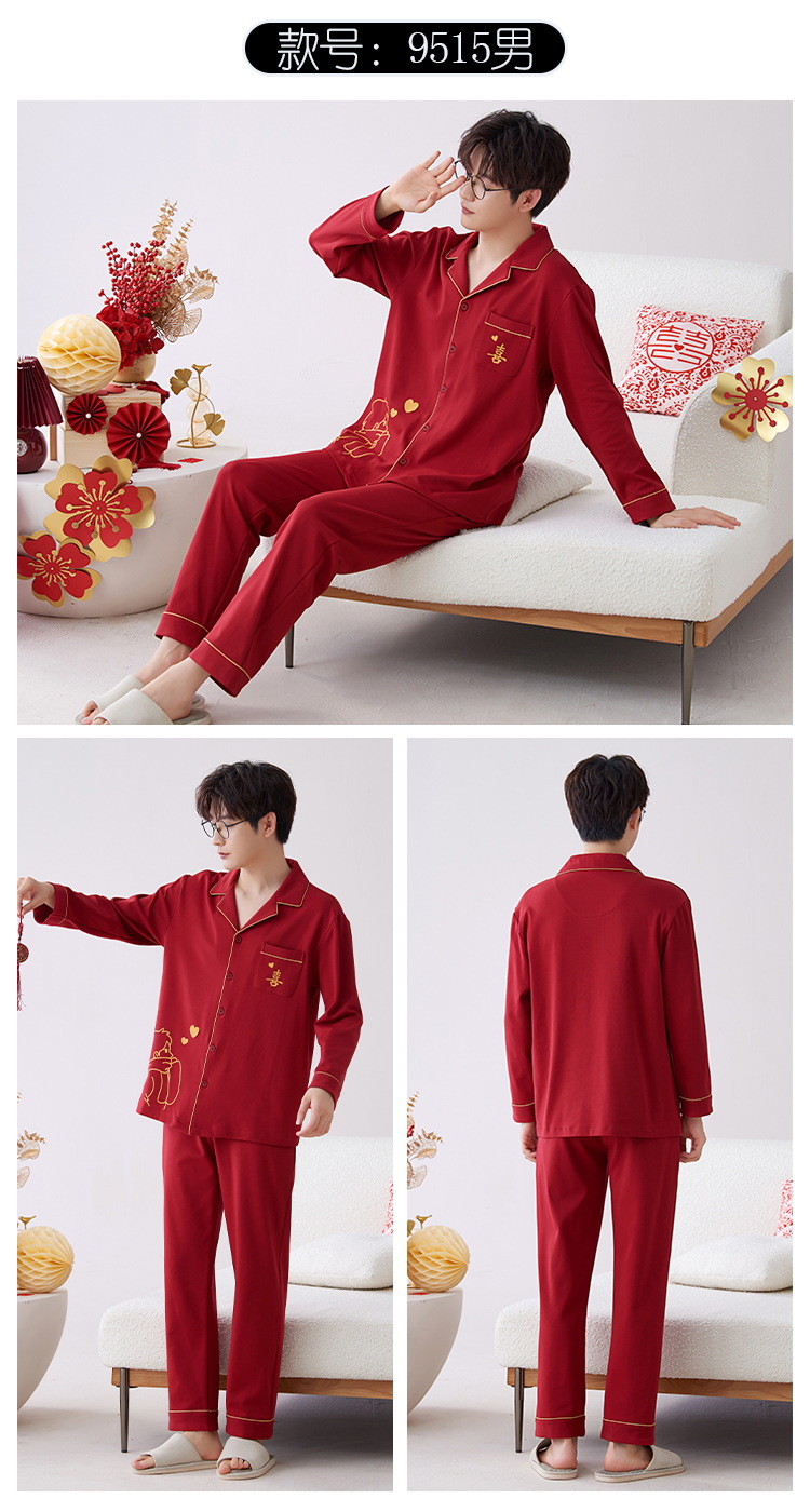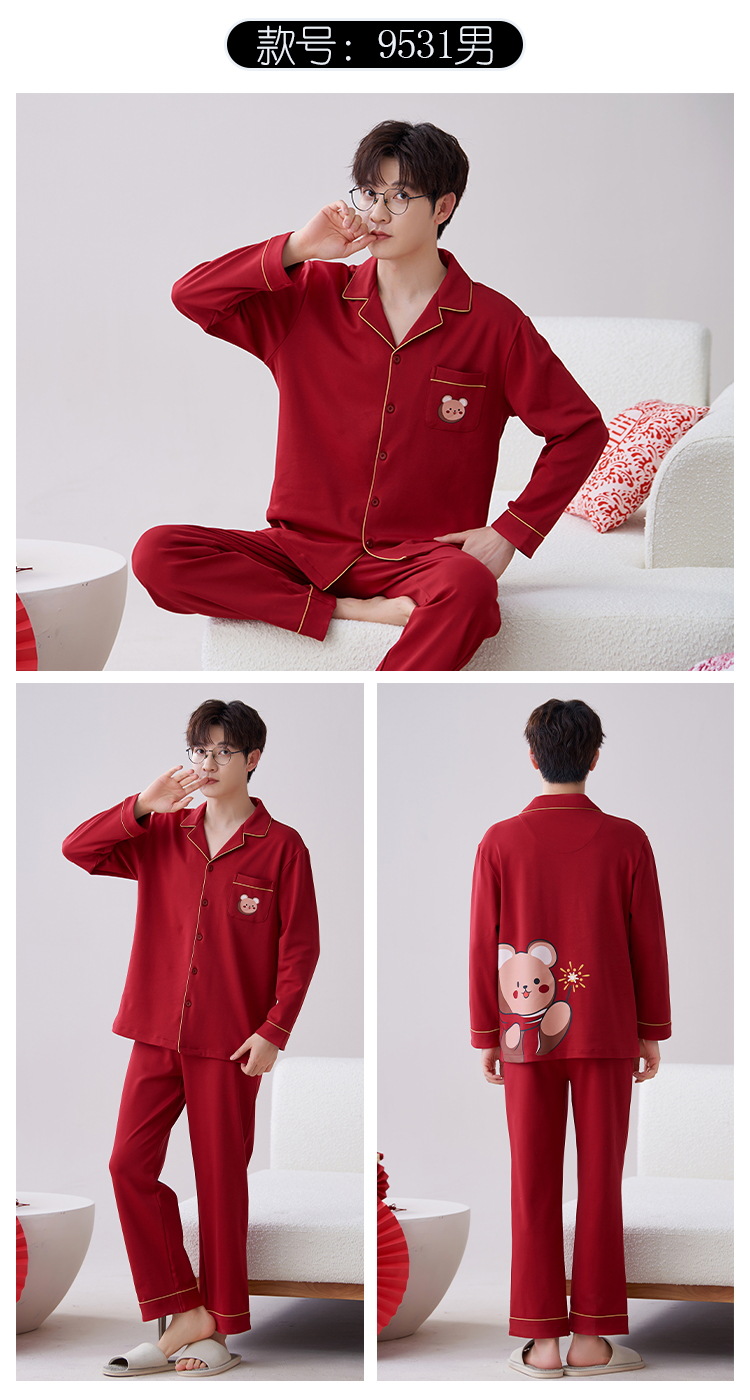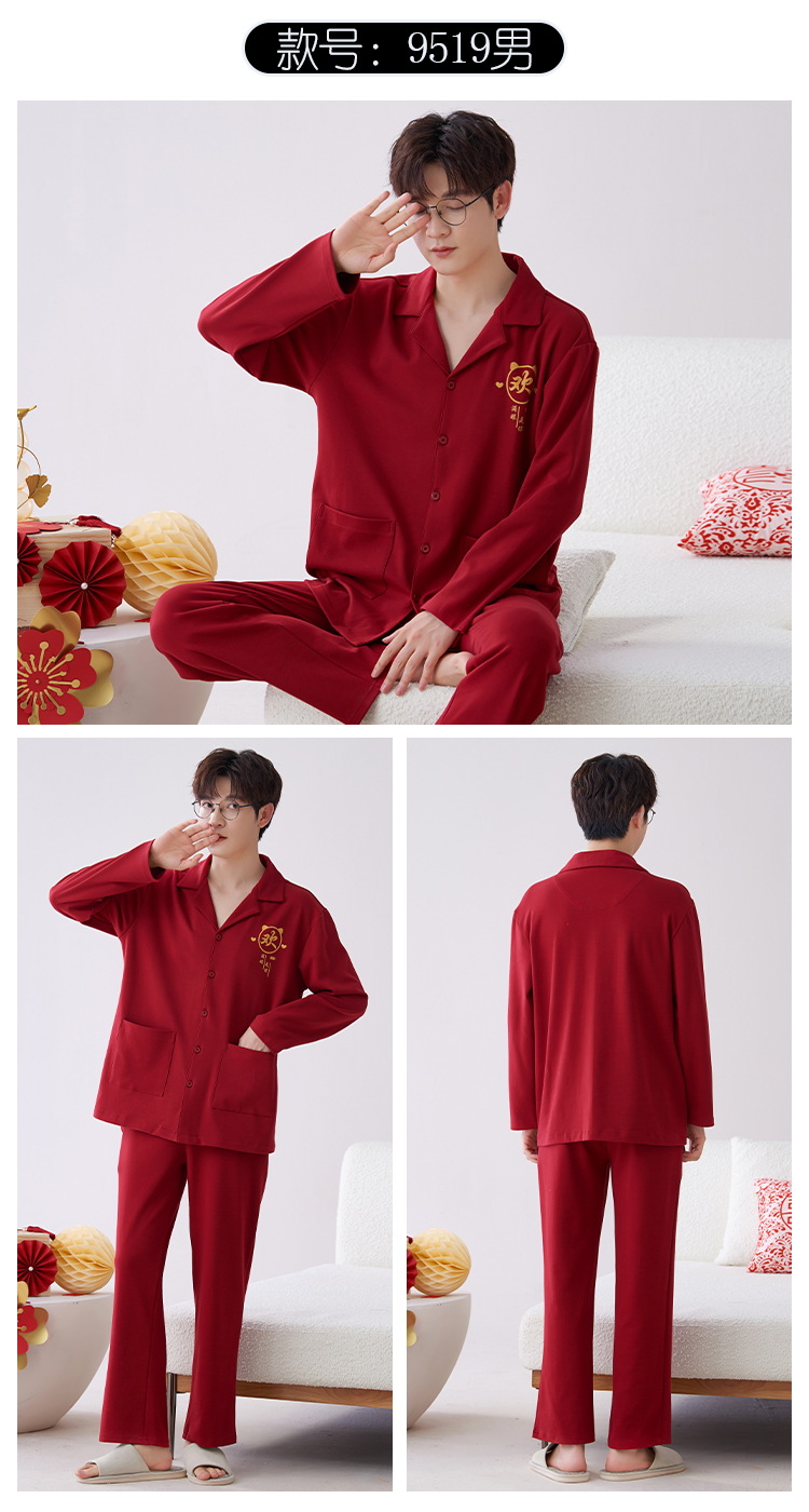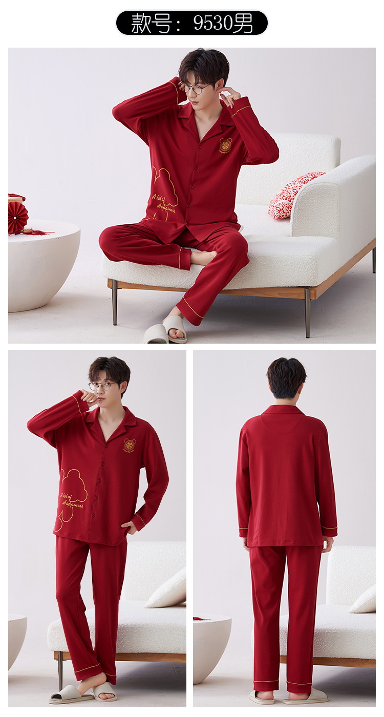 Pijamas hombres primavera y otoño algodón manga larga rojo brillante año animal algodón fino otoño primavera y verano ropa para el hogar