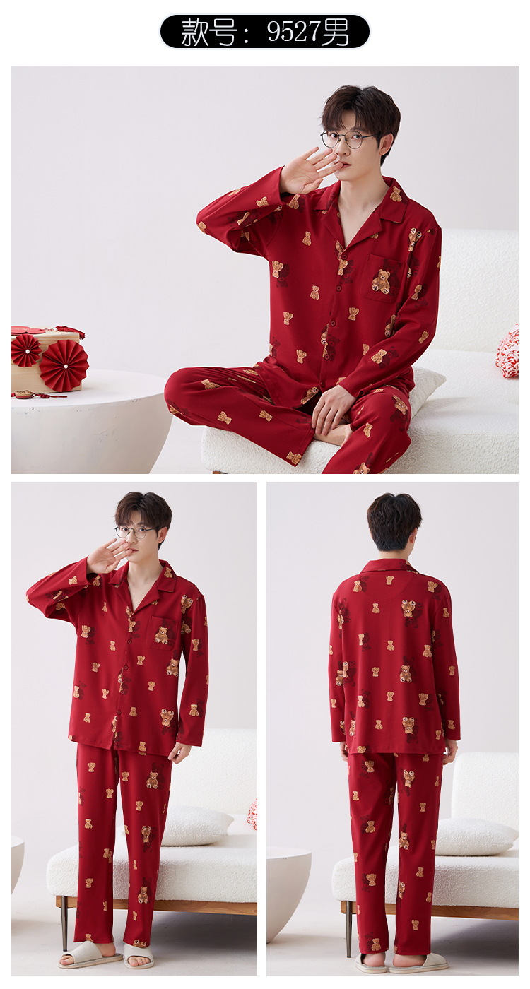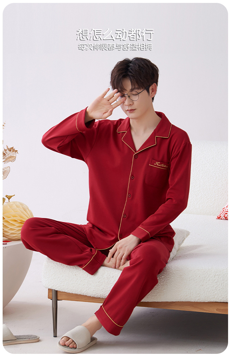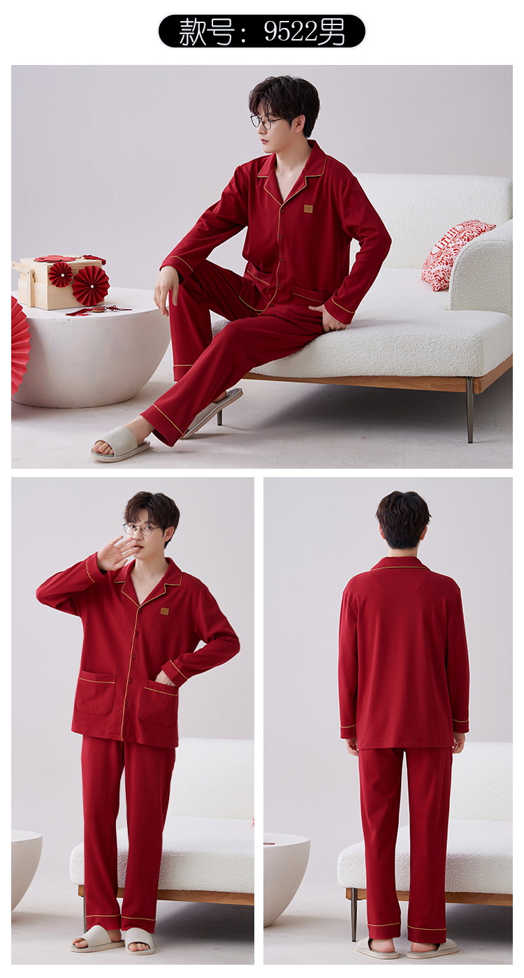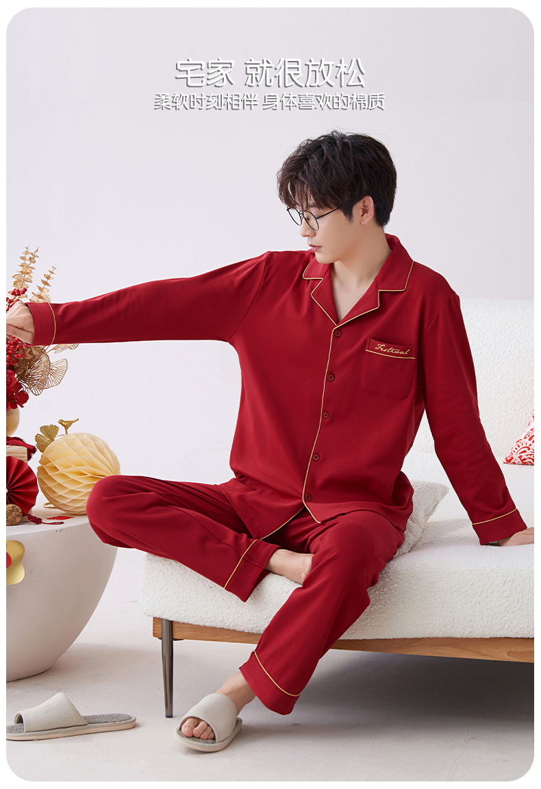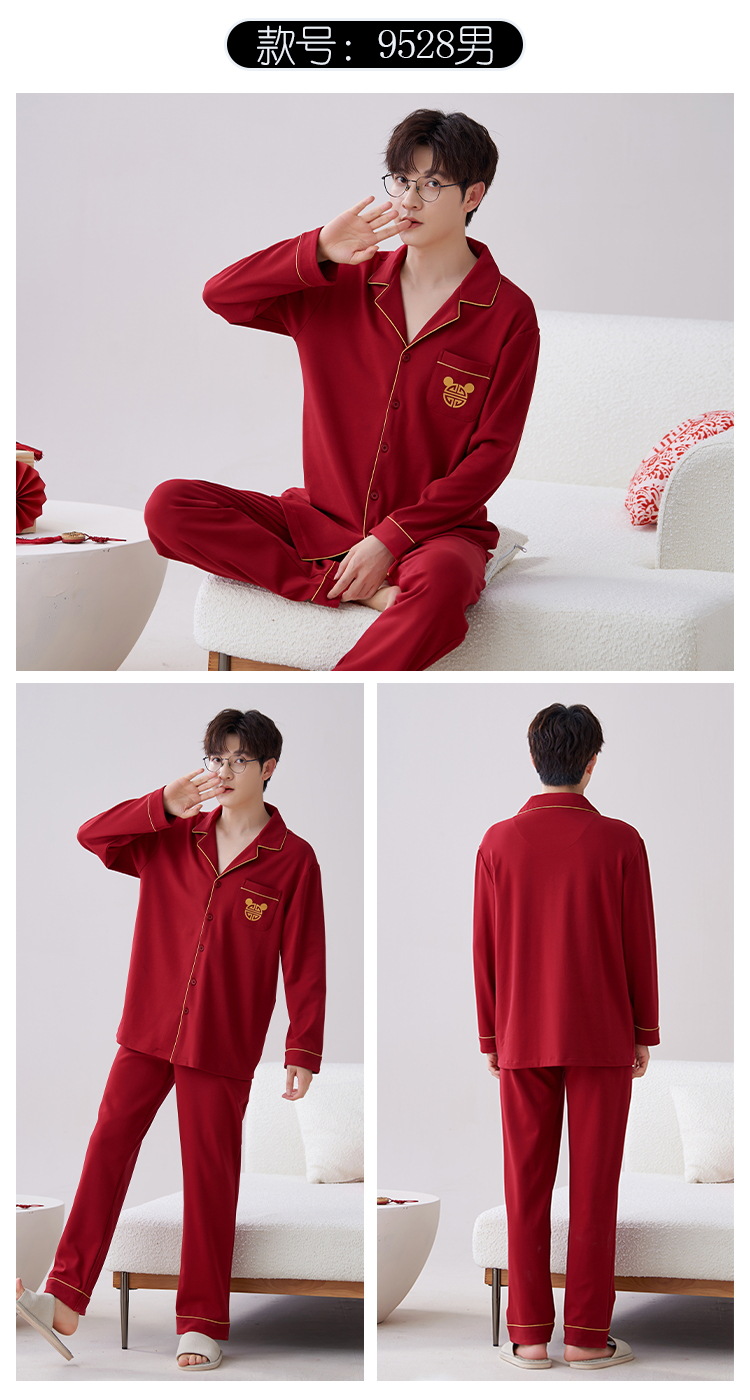 Pijamas hombres primavera y otoño algodón manga larga rojo brillante año animal algodón fino otoño primavera y verano ropa para el hogar
