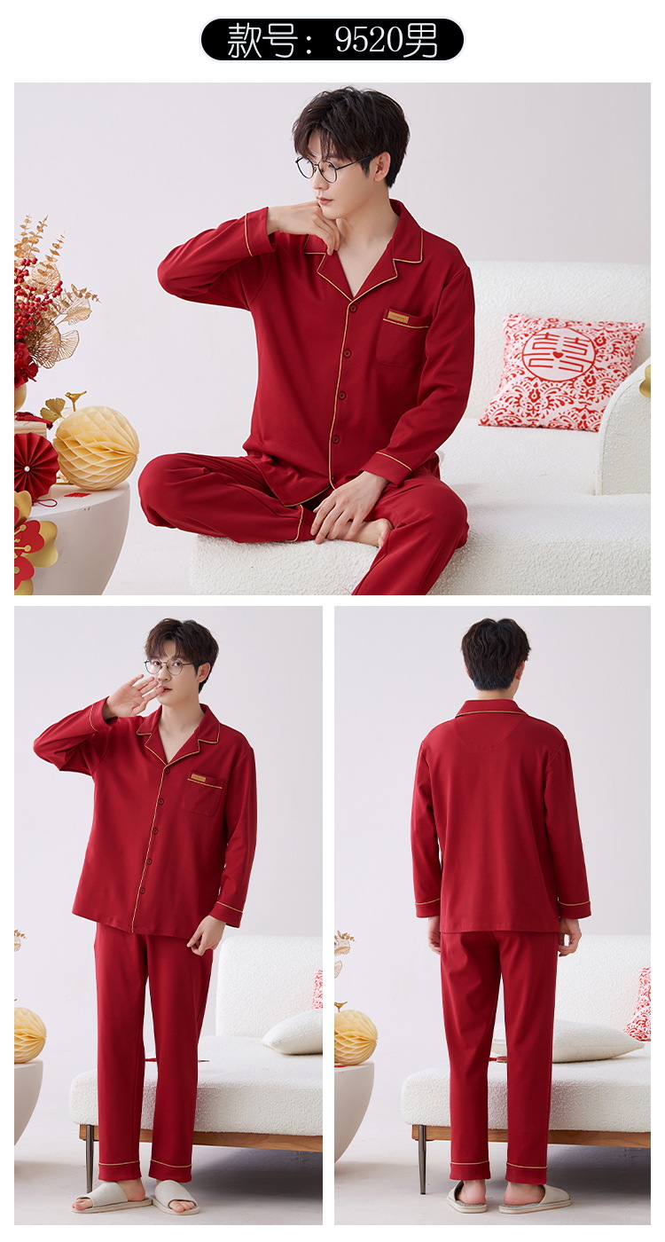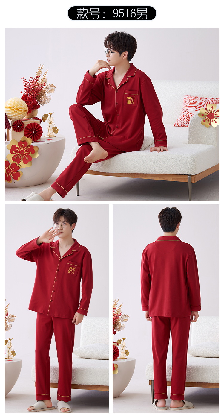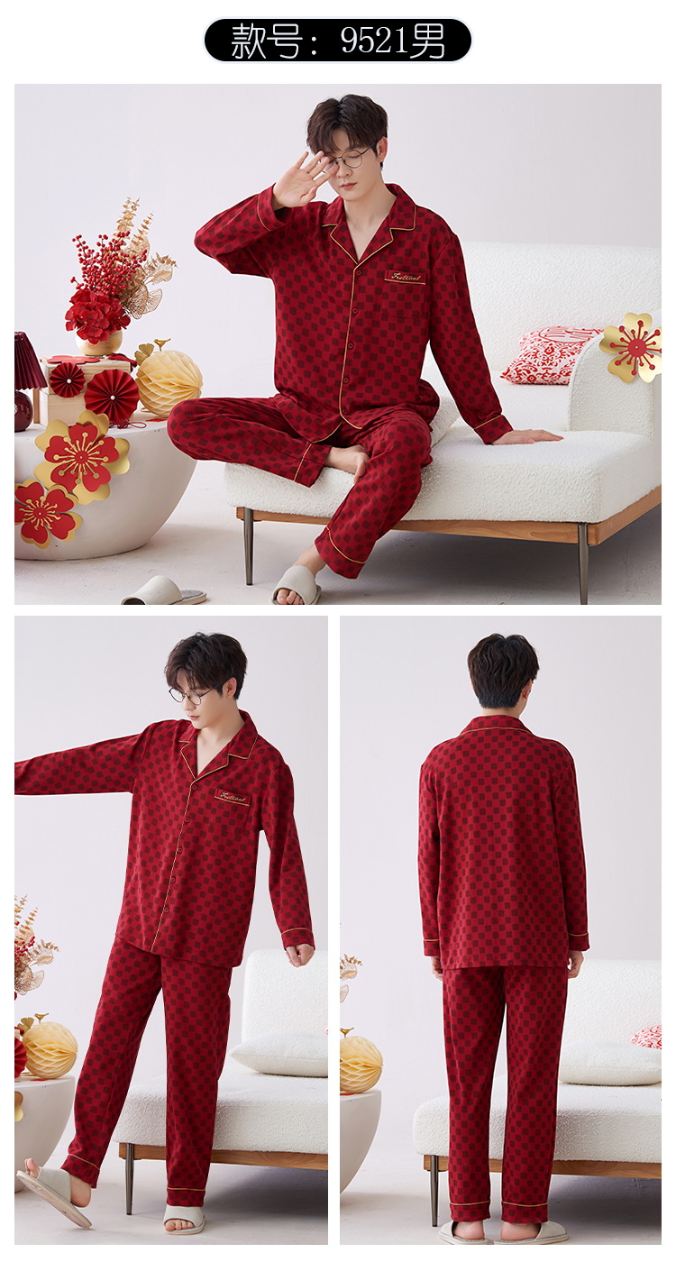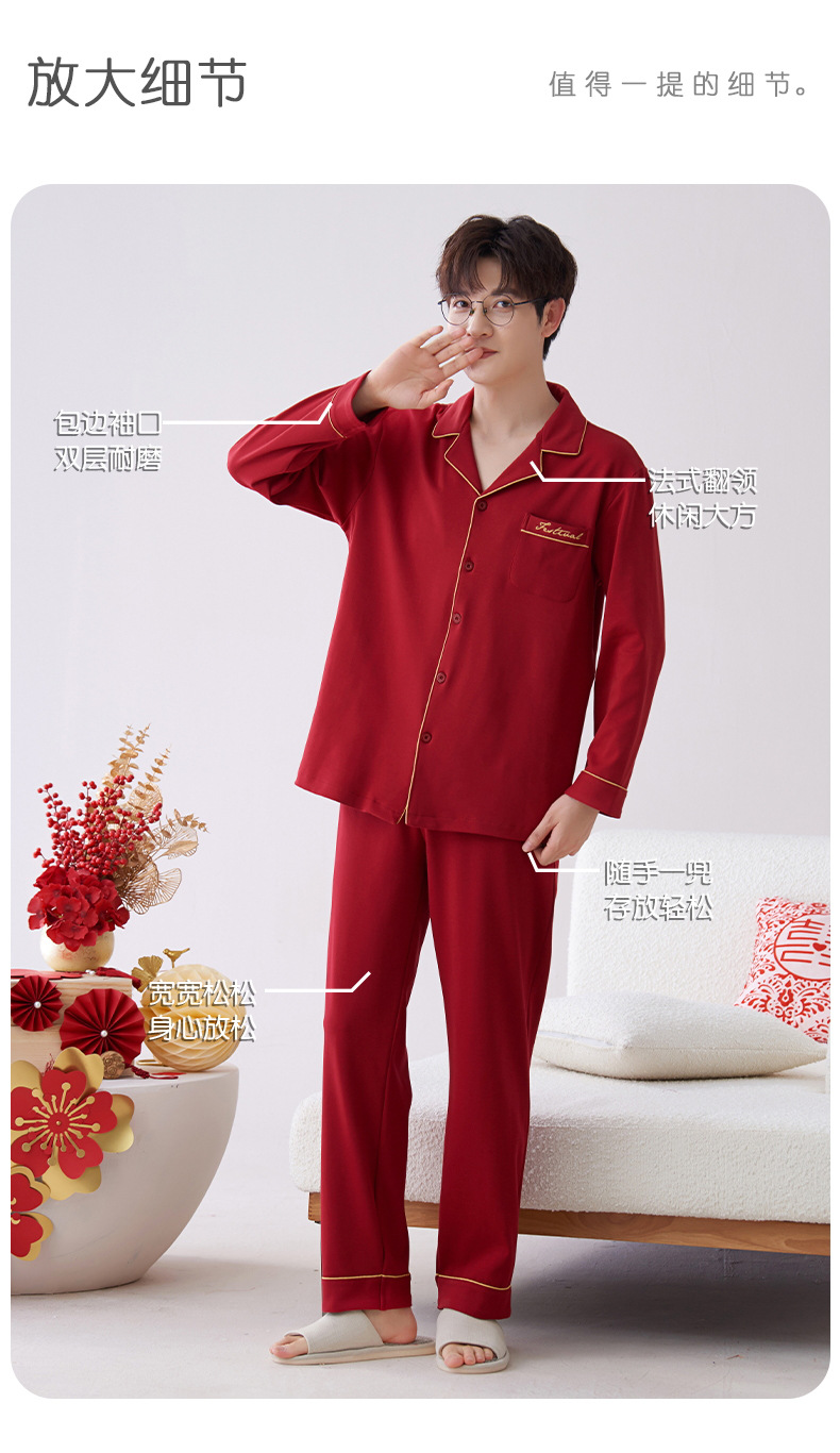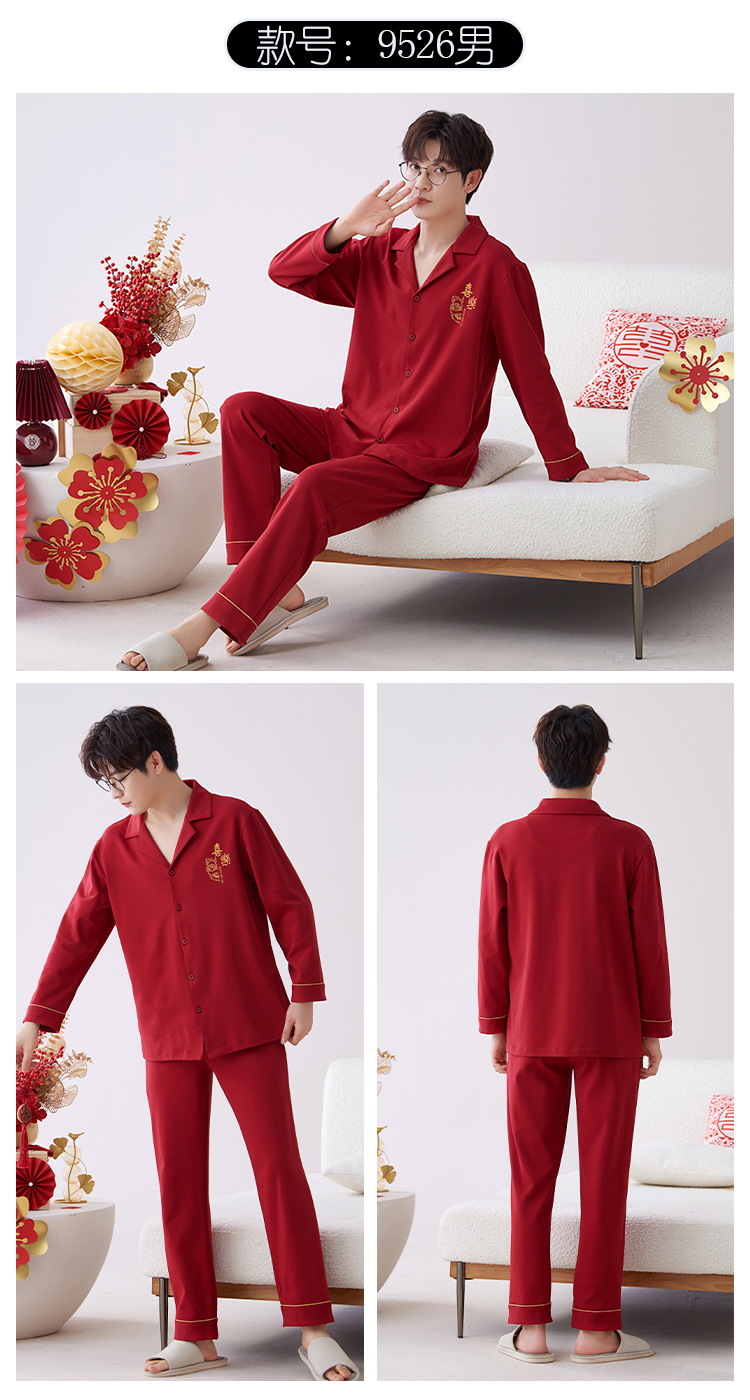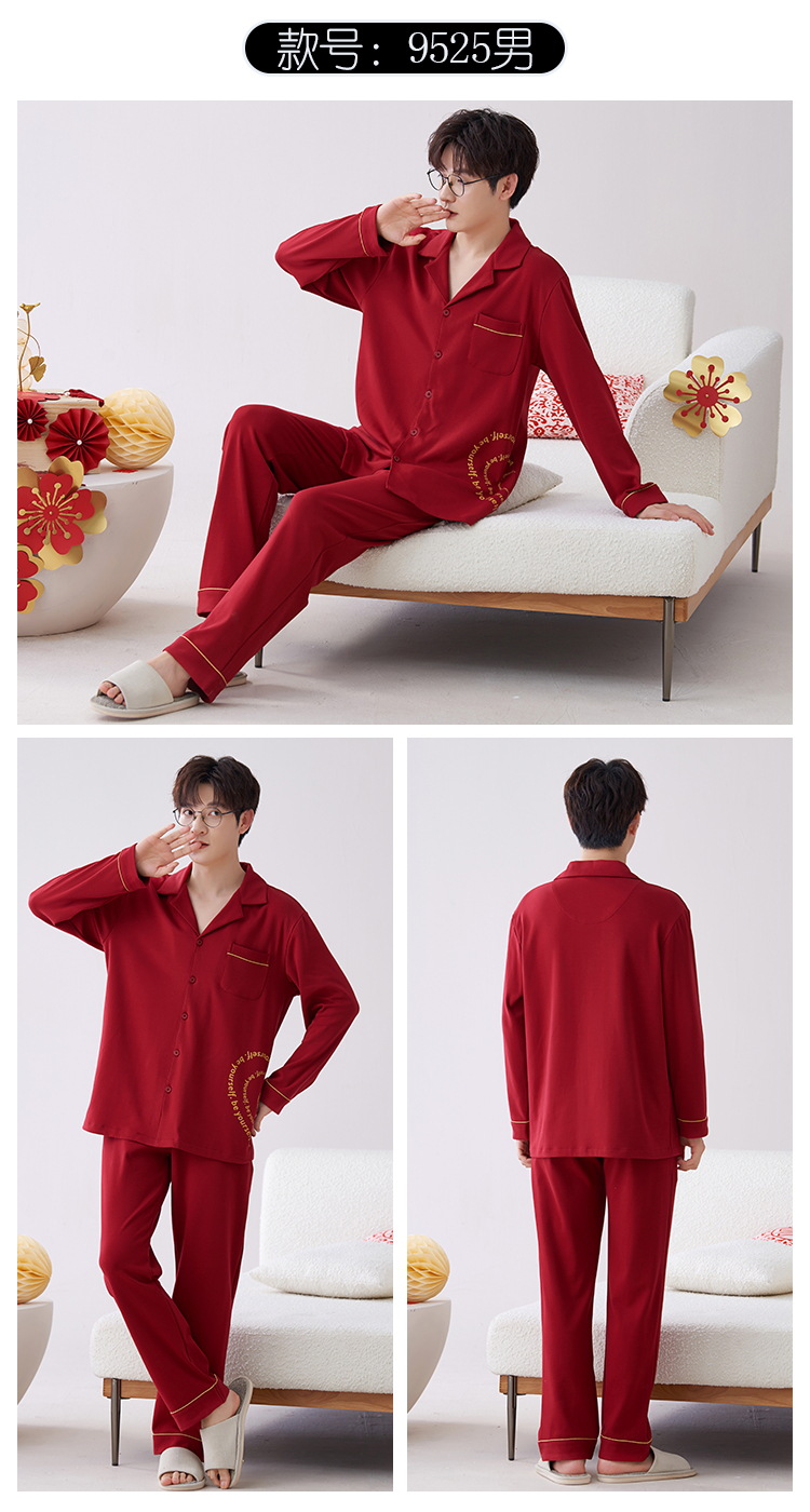 Pijamas hombres primavera y otoño algodón manga larga rojo brillante año animal algodón fino otoño primavera y verano ropa para el hogar