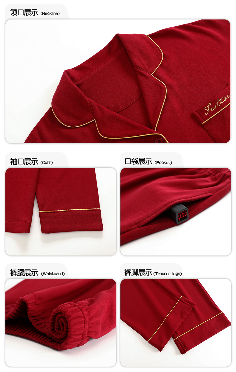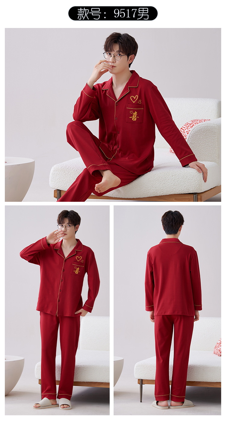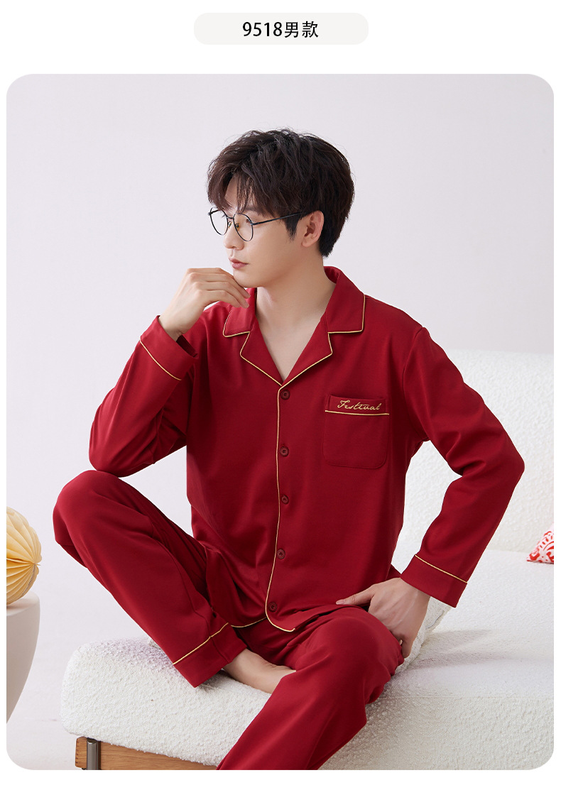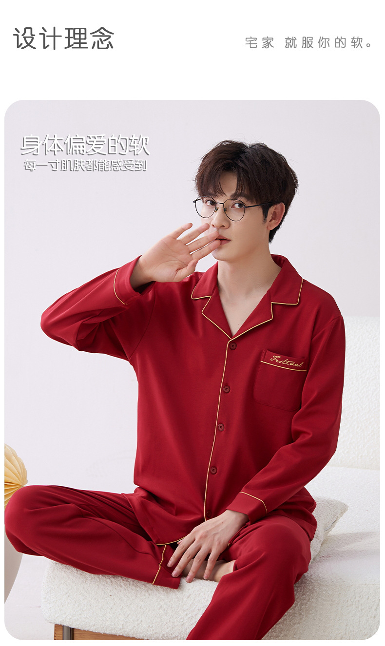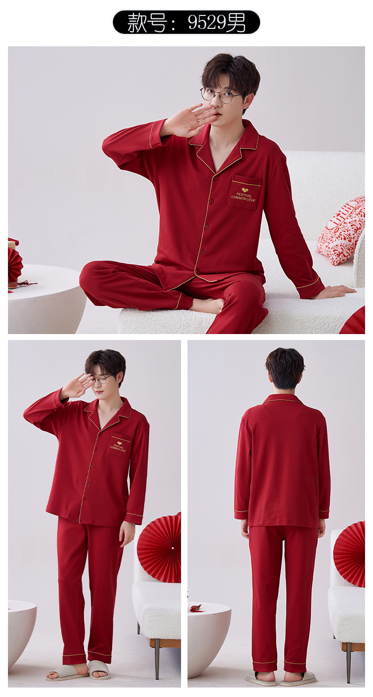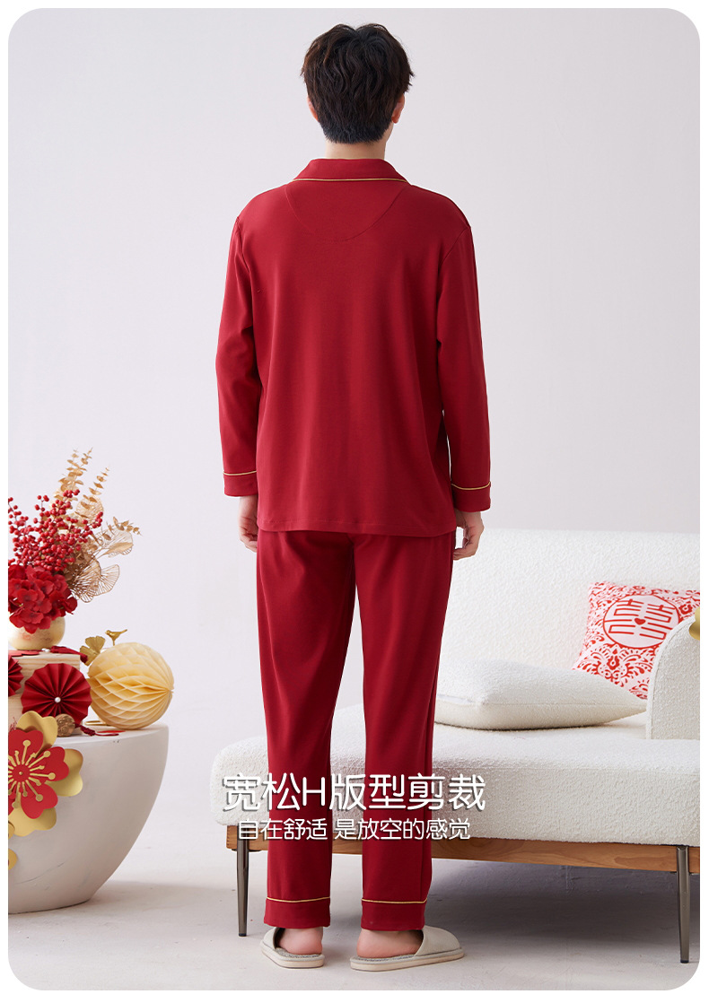 Pijamas hombres primavera y otoño algodón manga larga rojo brillante año animal algodón fino otoño primavera y verano ropa para el hogar