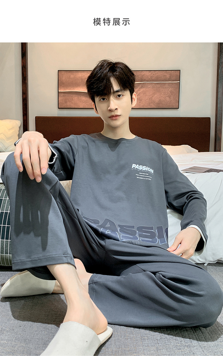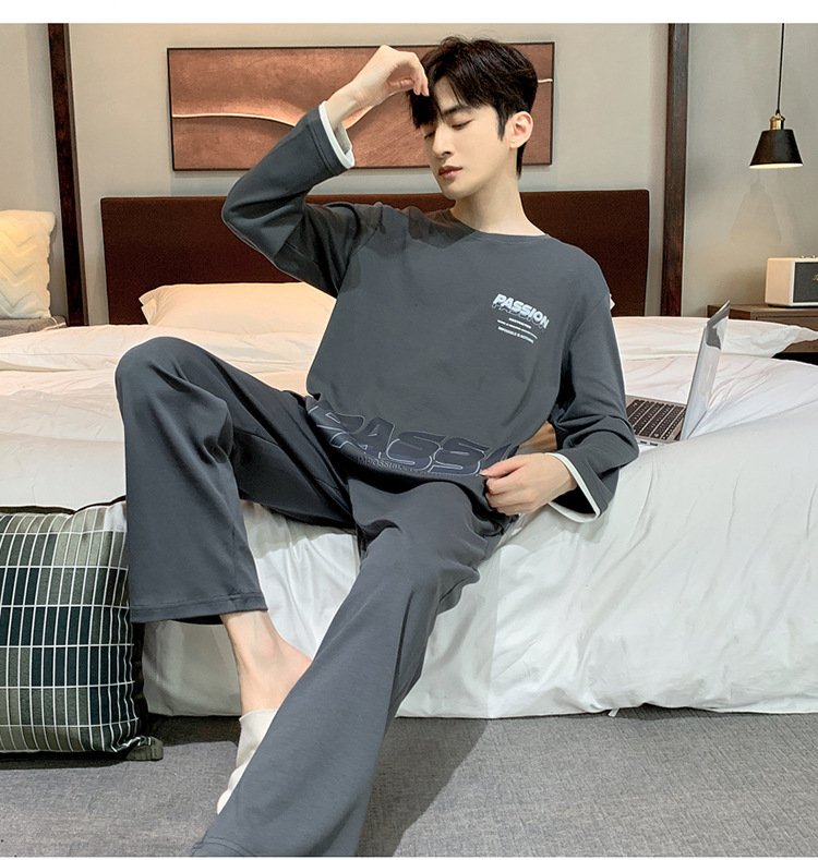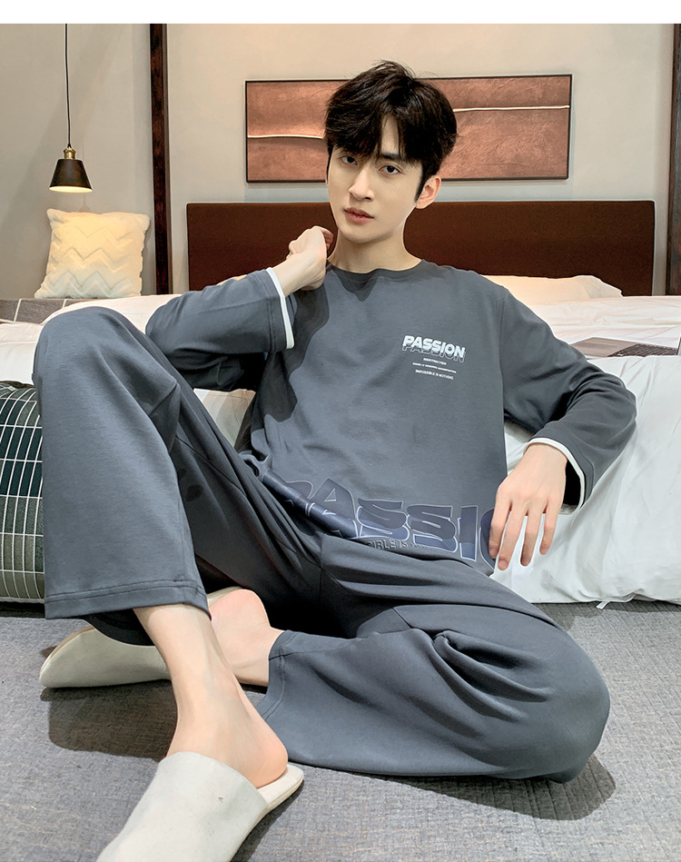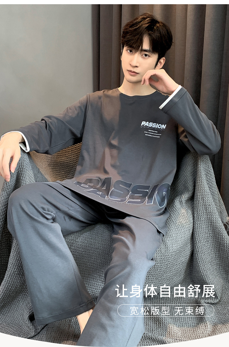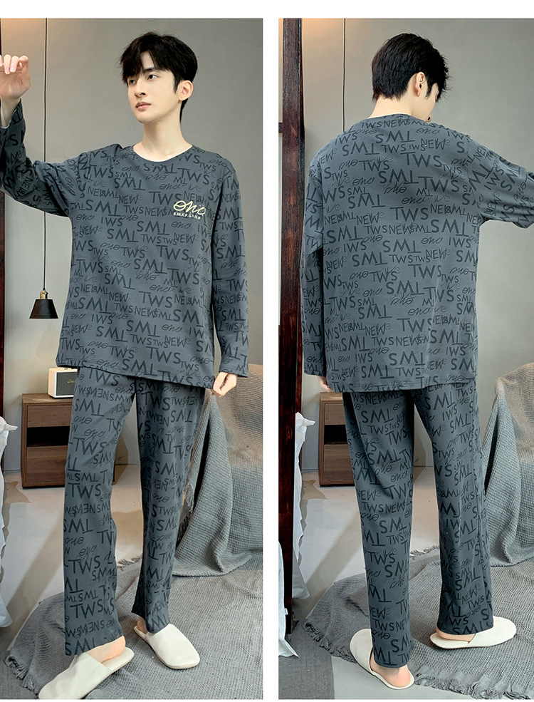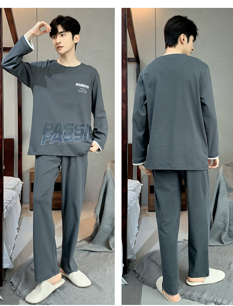 Pijamas de los hombres de manga larga de otoño e invierno Nuevo traje de estudiante simple casual suelta más tamaño ropa de abrigo homewear