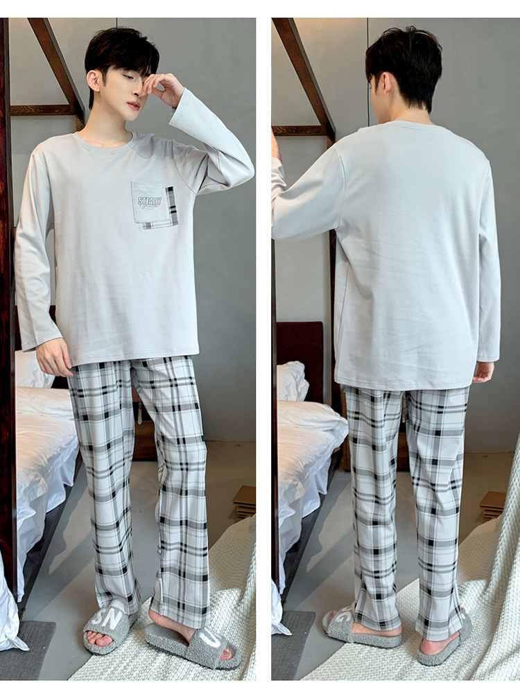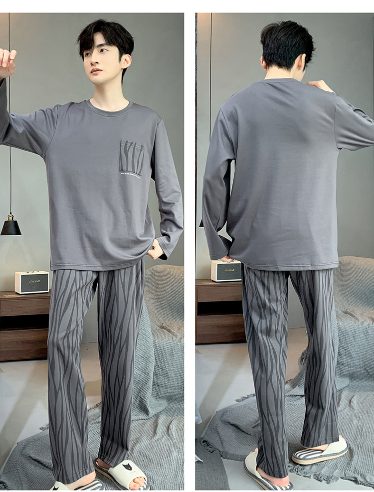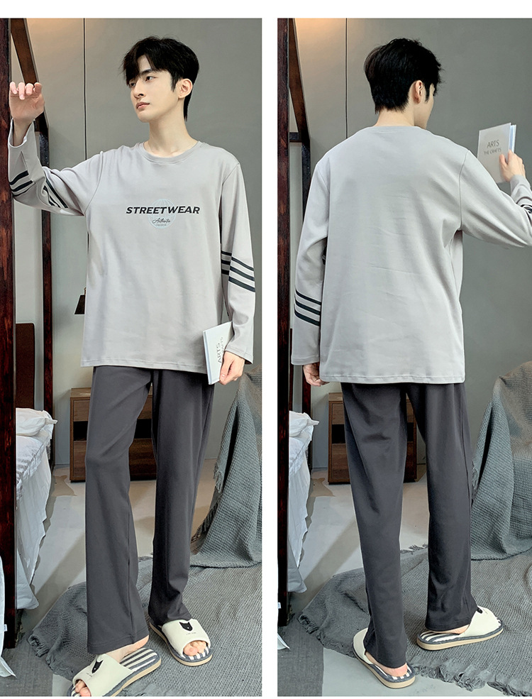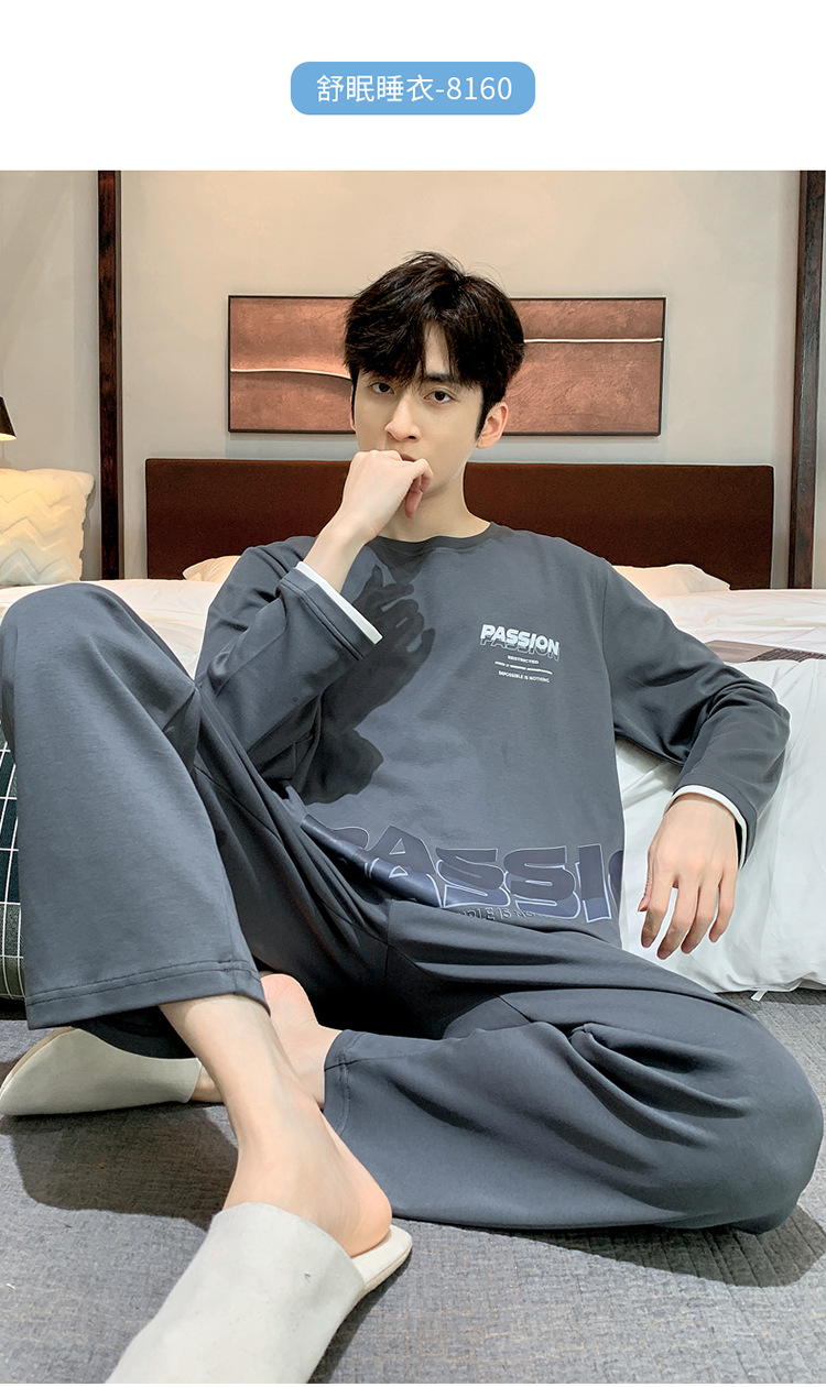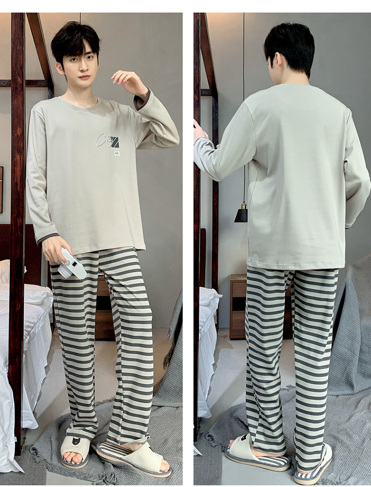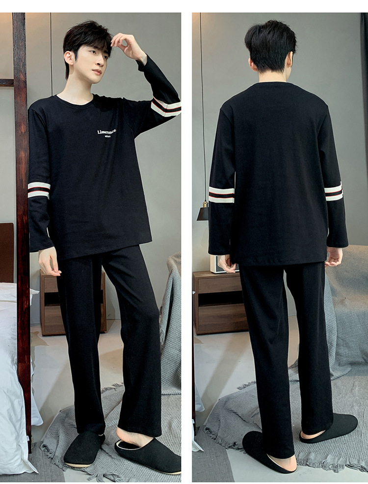 Pijamas de los hombres de manga larga de otoño e invierno Nuevo traje de estudiante simple casual suelta más tamaño ropa de abrigo homewear