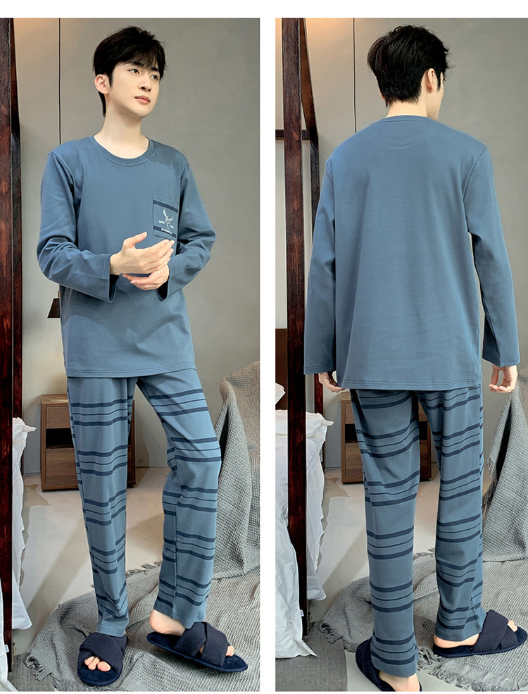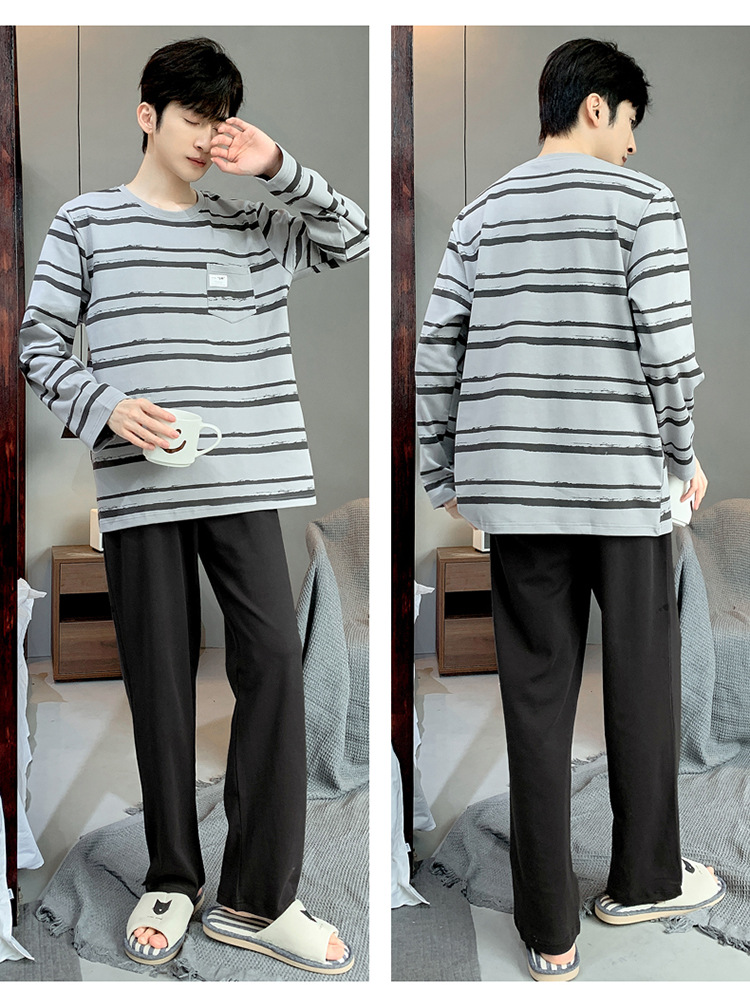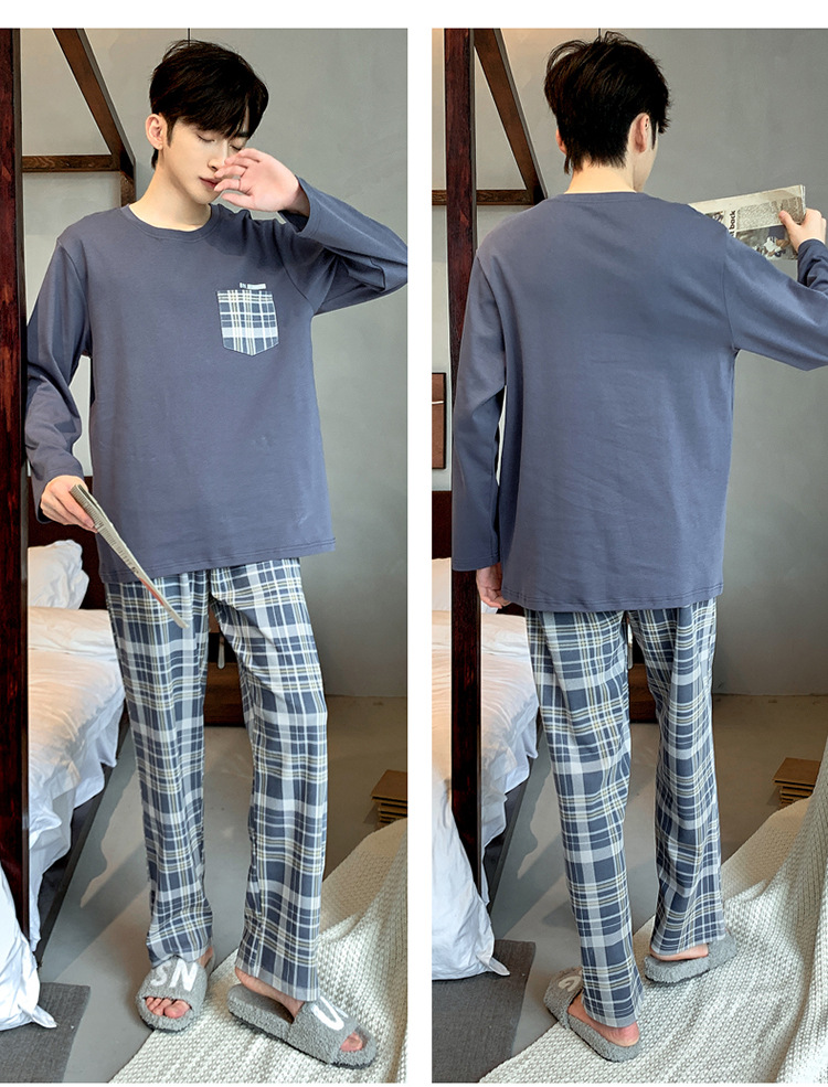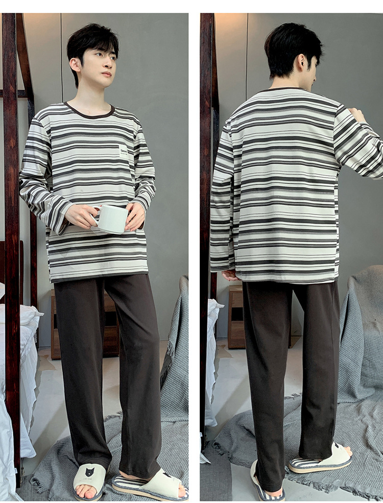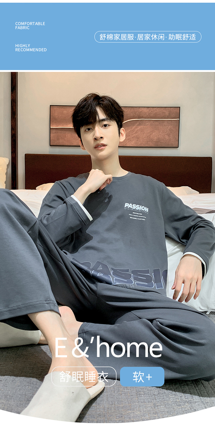 Pijamas de los hombres de manga larga de otoño e invierno Nuevo traje de estudiante simple casual suelta más tamaño ropa de abrigo homewear