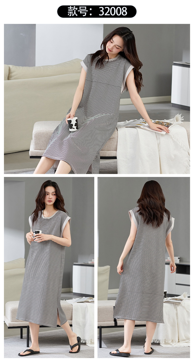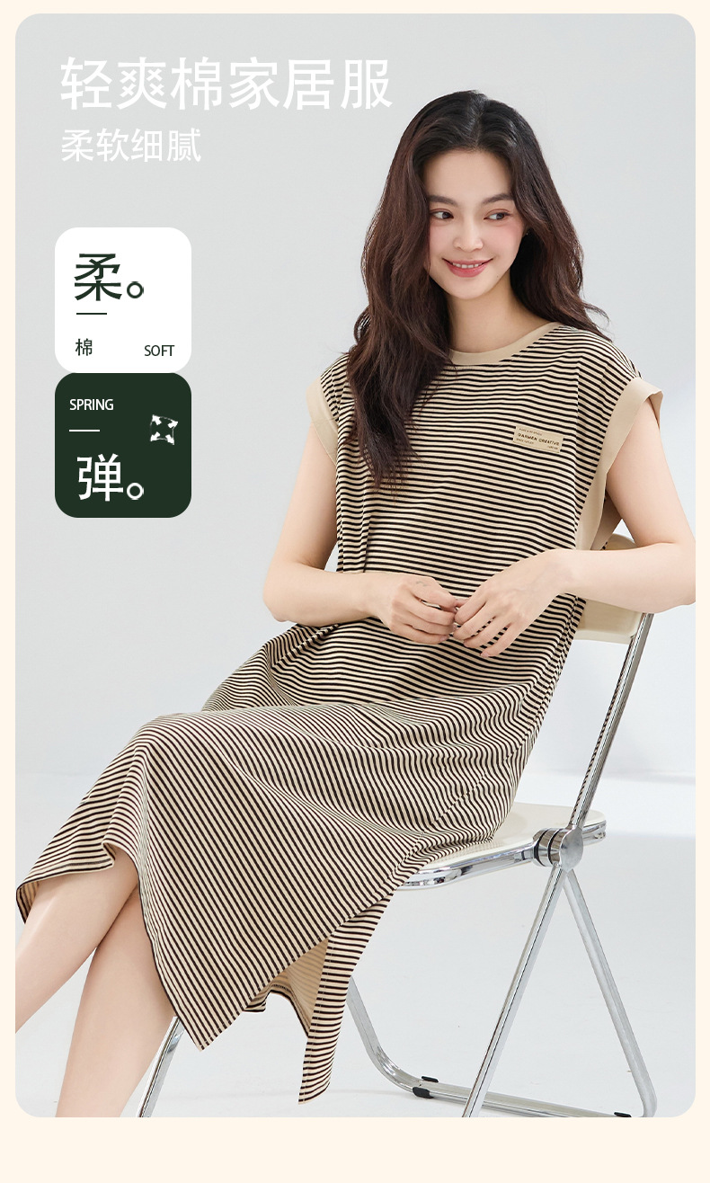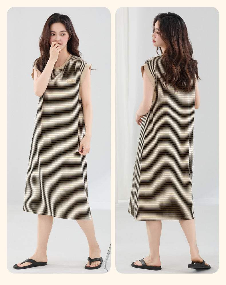 Camisón mujer verano algodón puro 2025 nuevo estilo coreano a rayas sin mangas chaleco camisola falda suelta de gran tamaño largo dividido