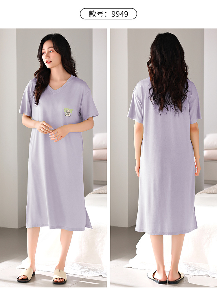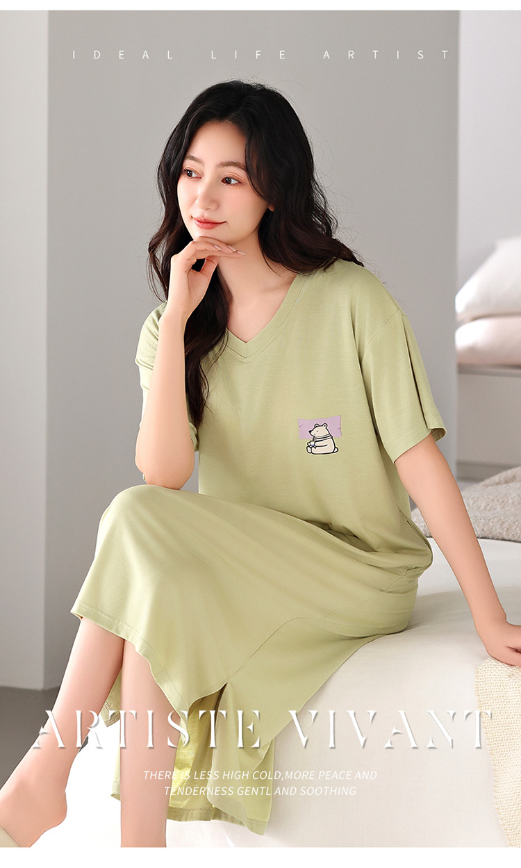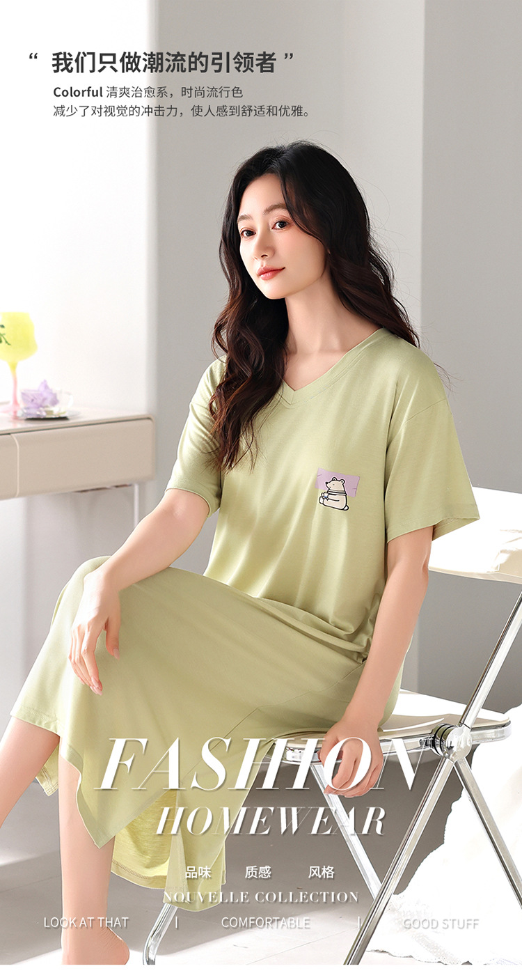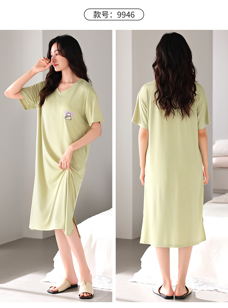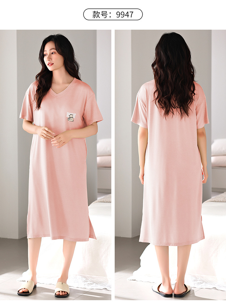 Camisón con cojín en el pecho para mujer 2025 nuevo estilo verano modal vestido de longitud media madre verano fresco vestido de casa