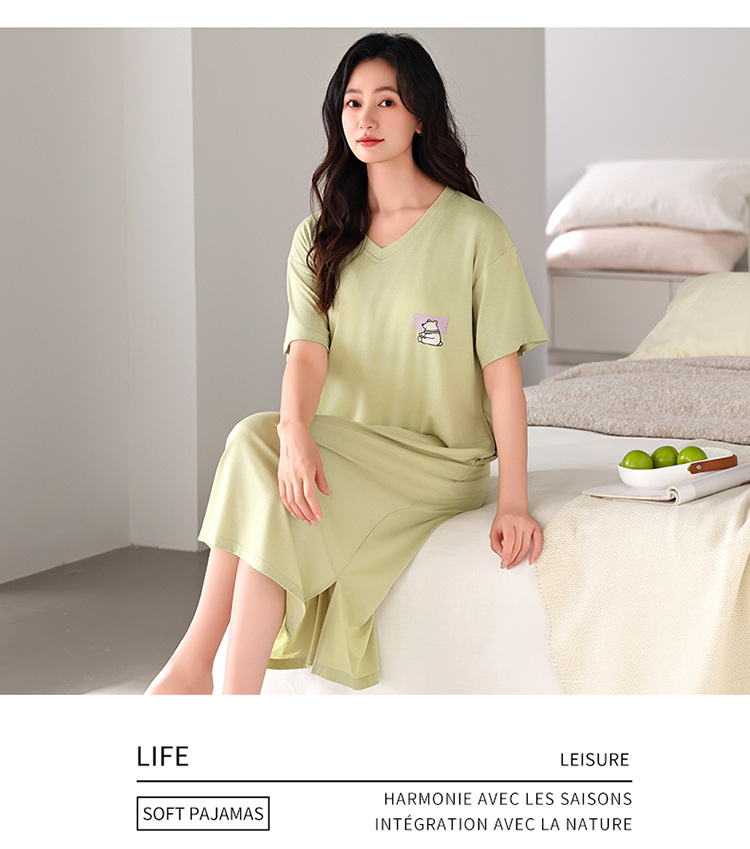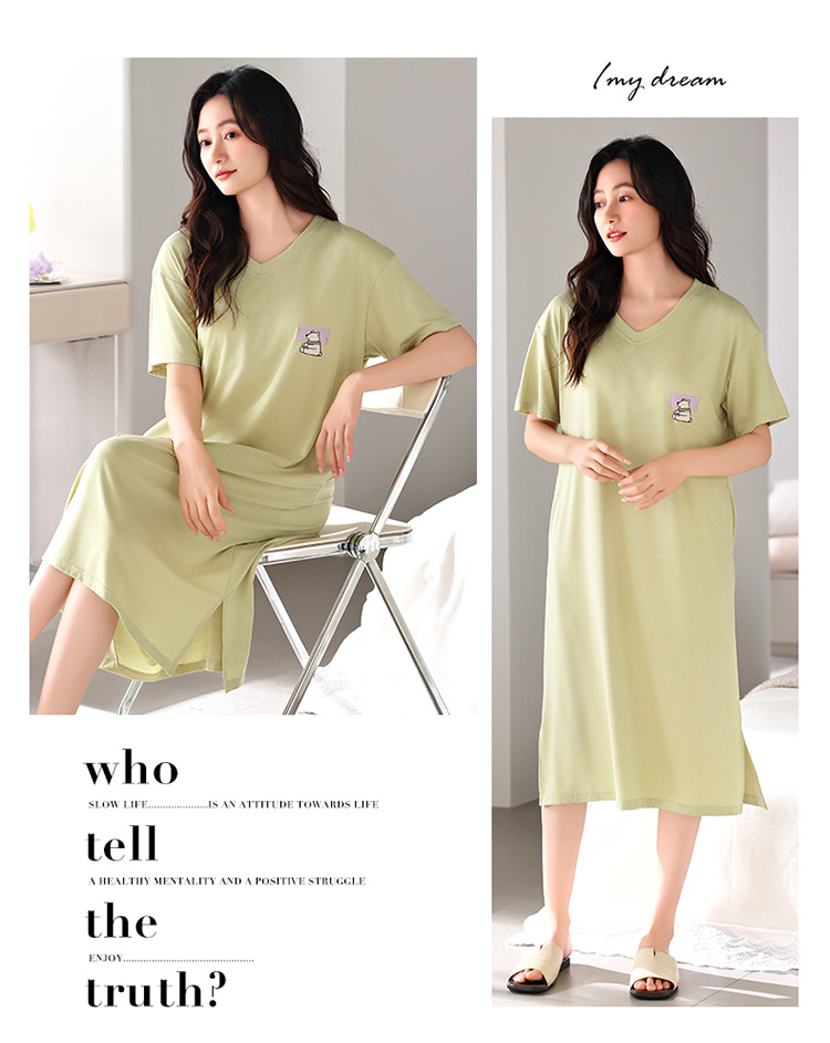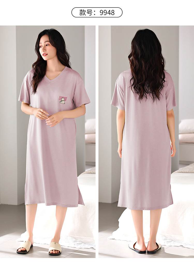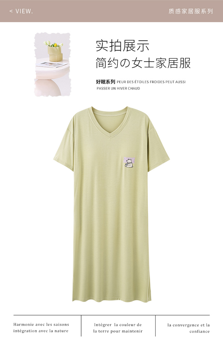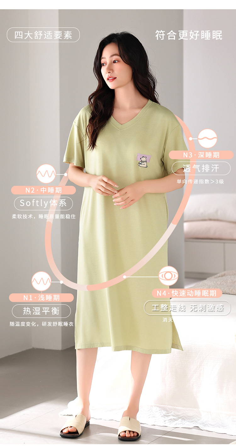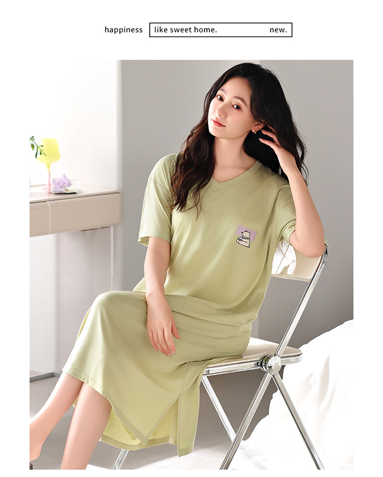 Camisón con cojín en el pecho para mujer 2025 nuevo estilo verano modal vestido de longitud media madre verano fresco vestido de casa
