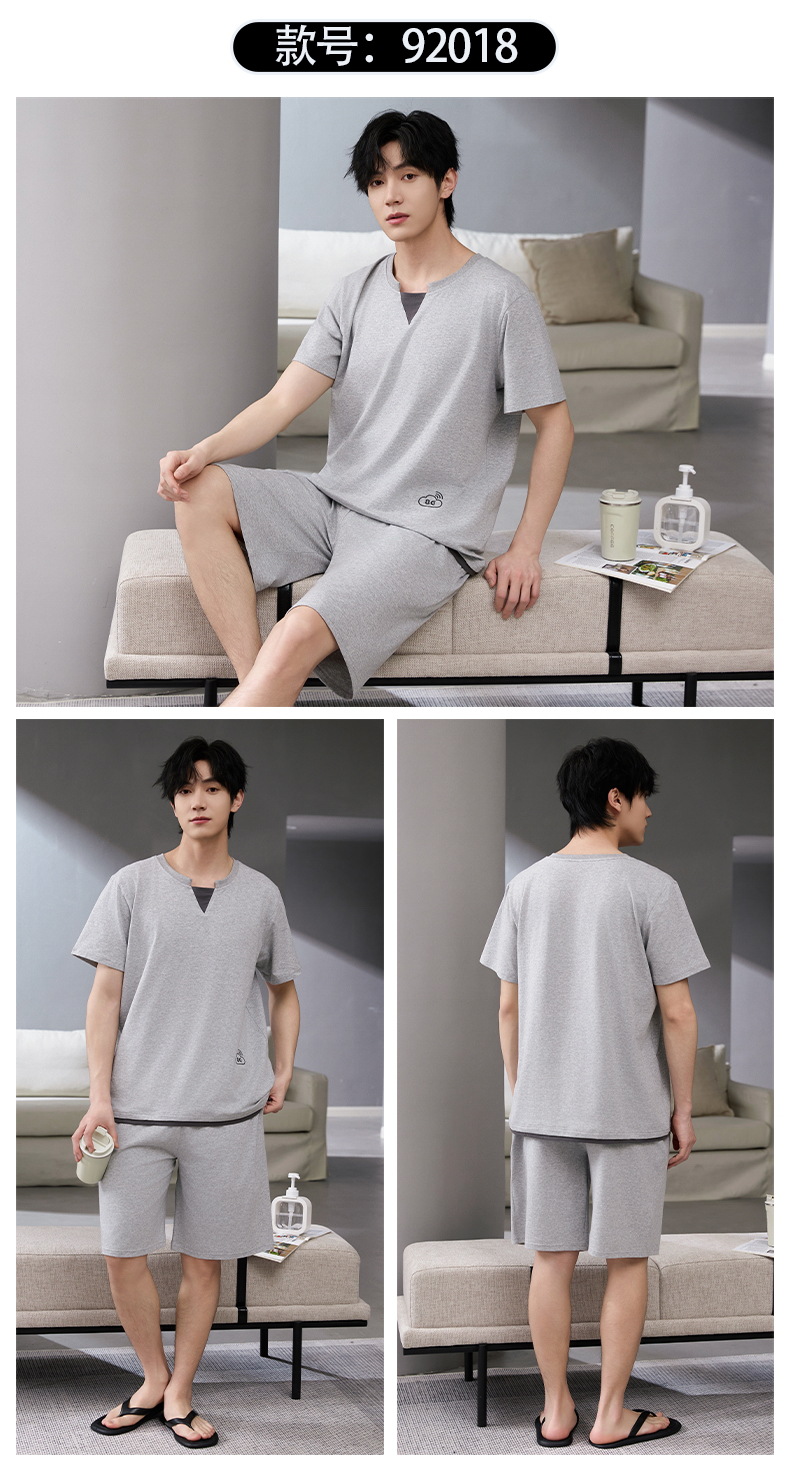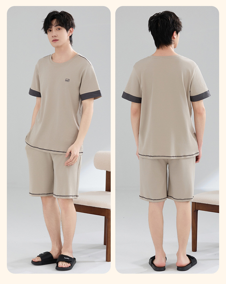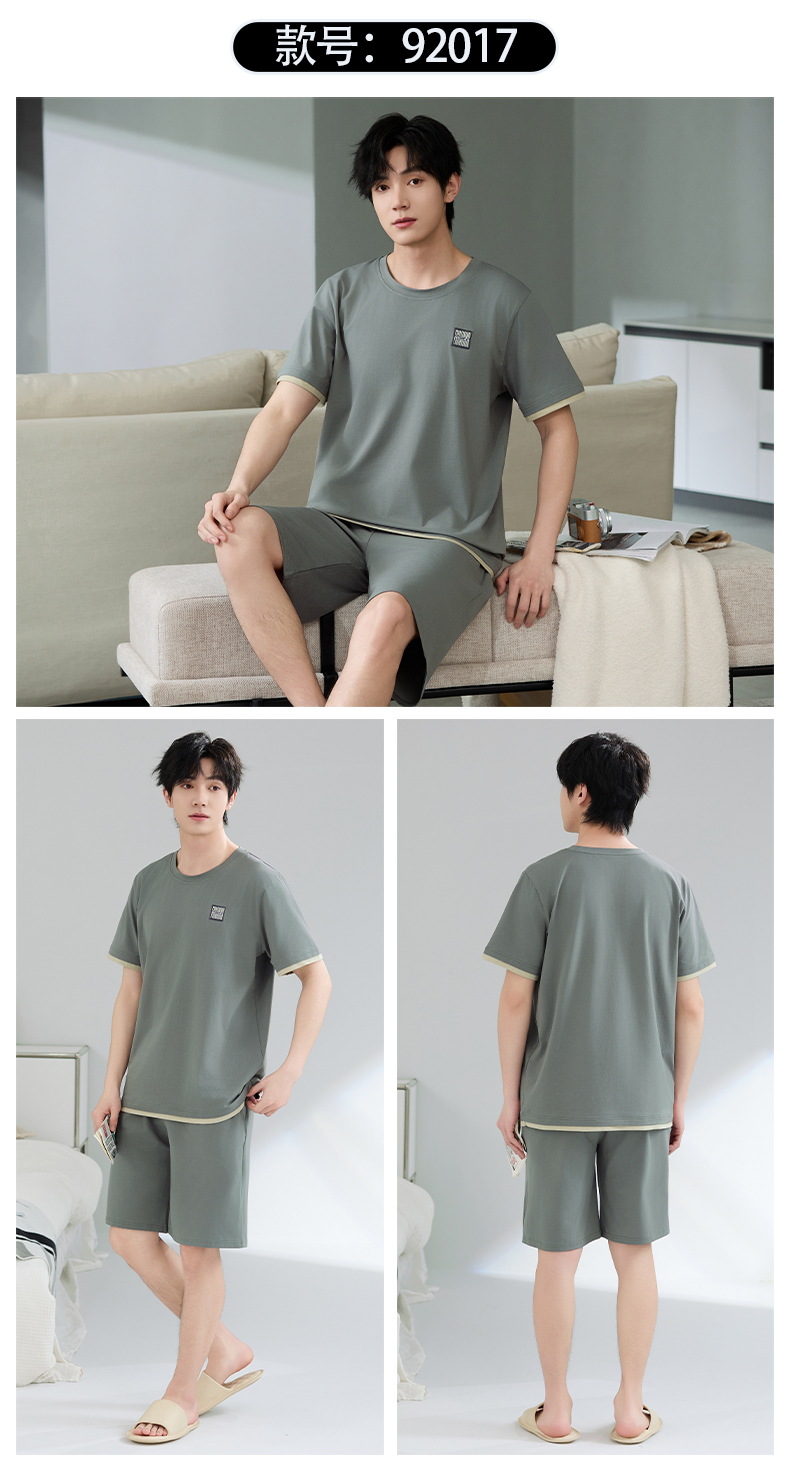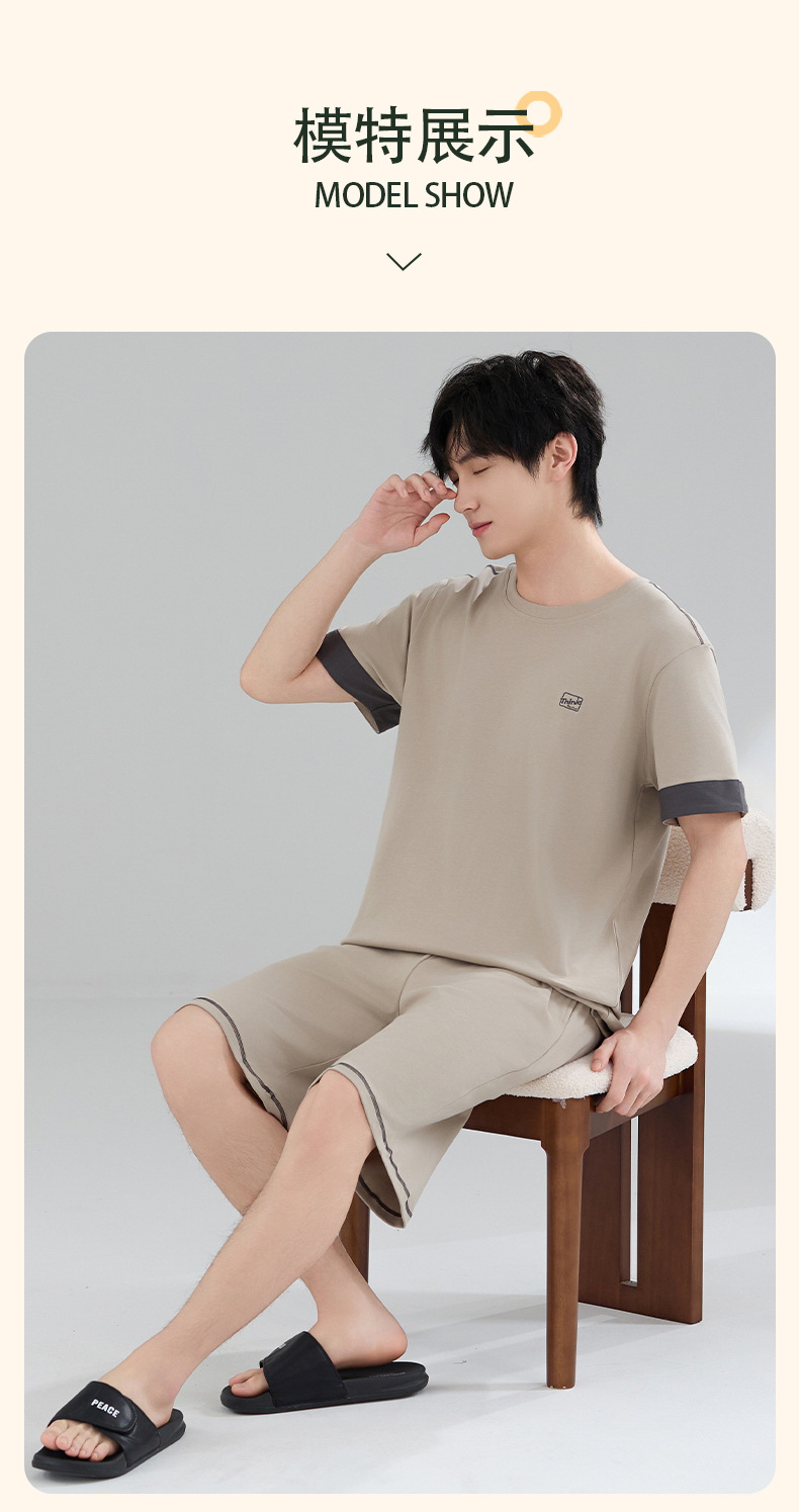 Pijamas de hombre verano algodón de manga corta cuello redondo suelto talla grande marco de tracción de verano algodón fresco traje de servicio a domicilio para niños