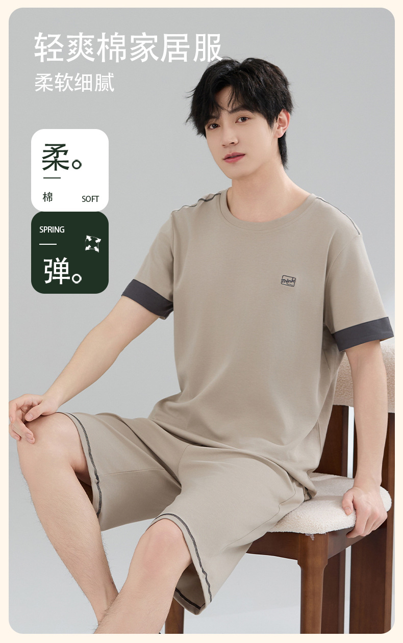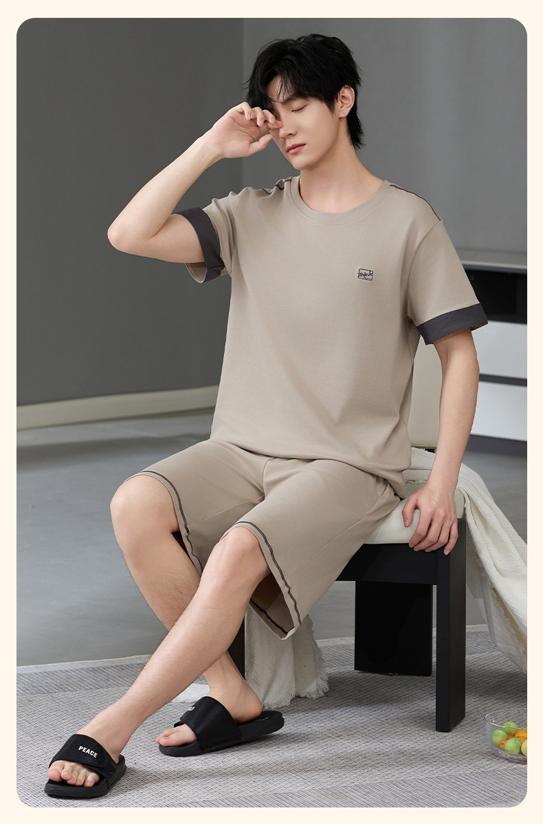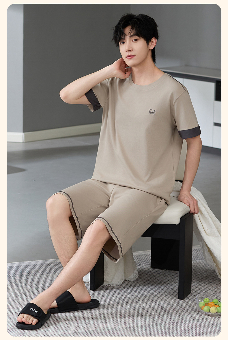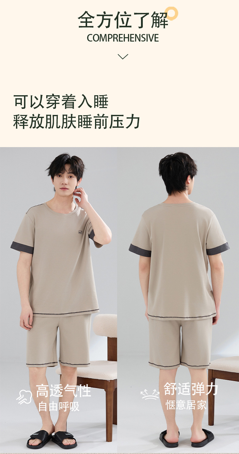 Pijamas de hombre verano algodón de manga corta cuello redondo suelto talla grande marco de tracción de verano algodón fresco traje de servicio a domicilio para niños