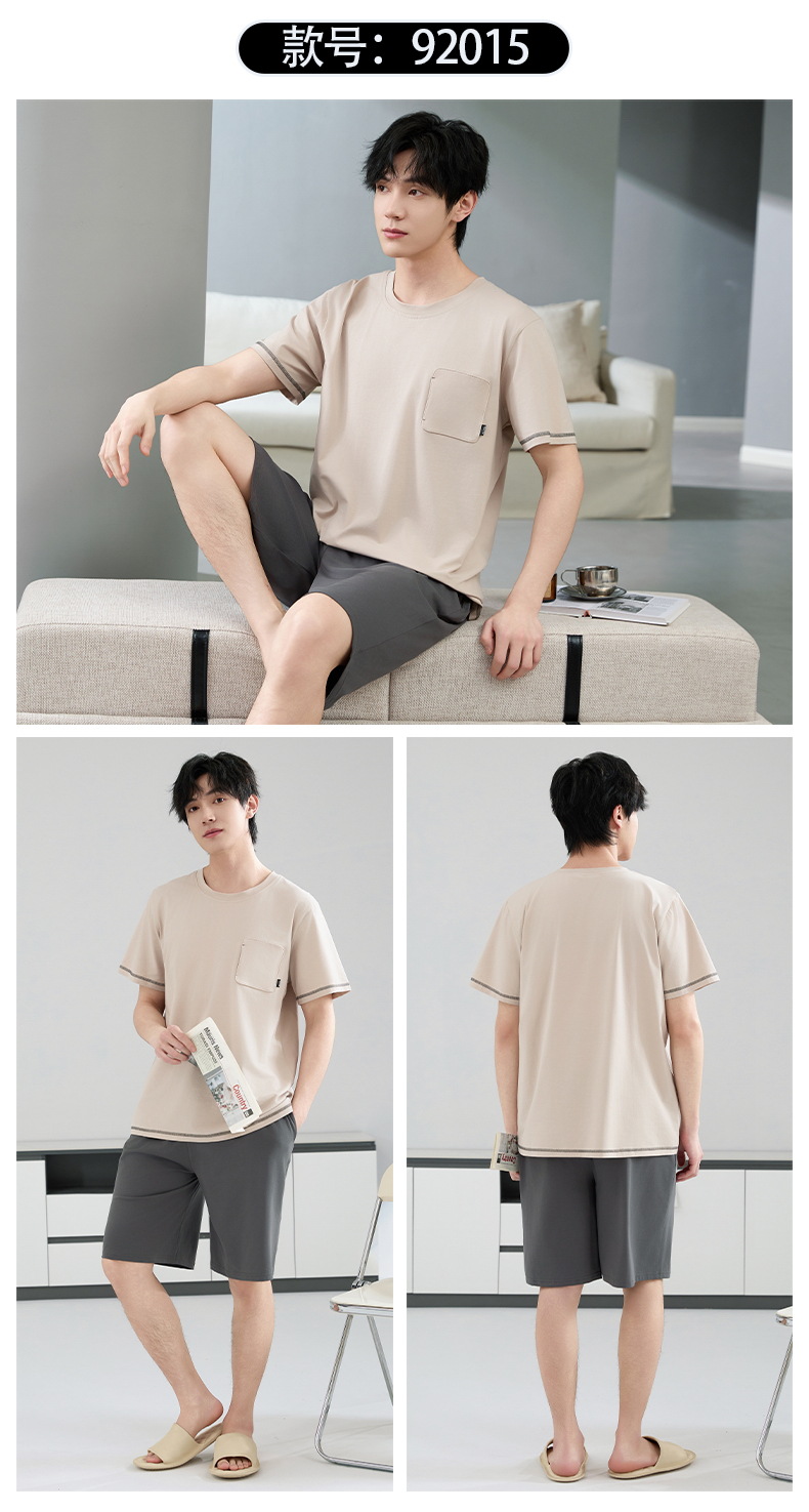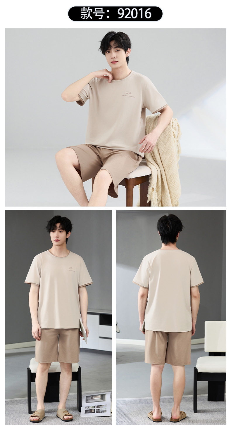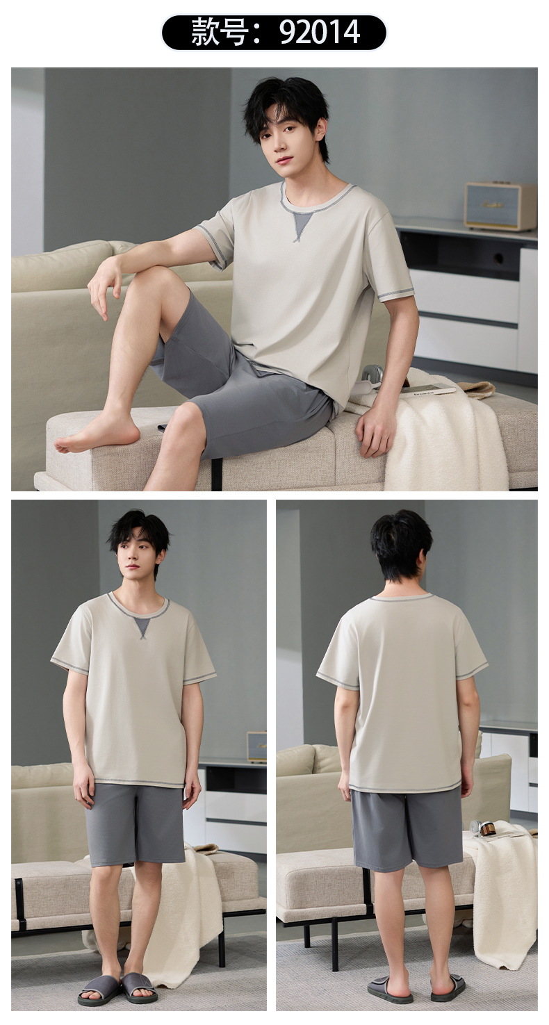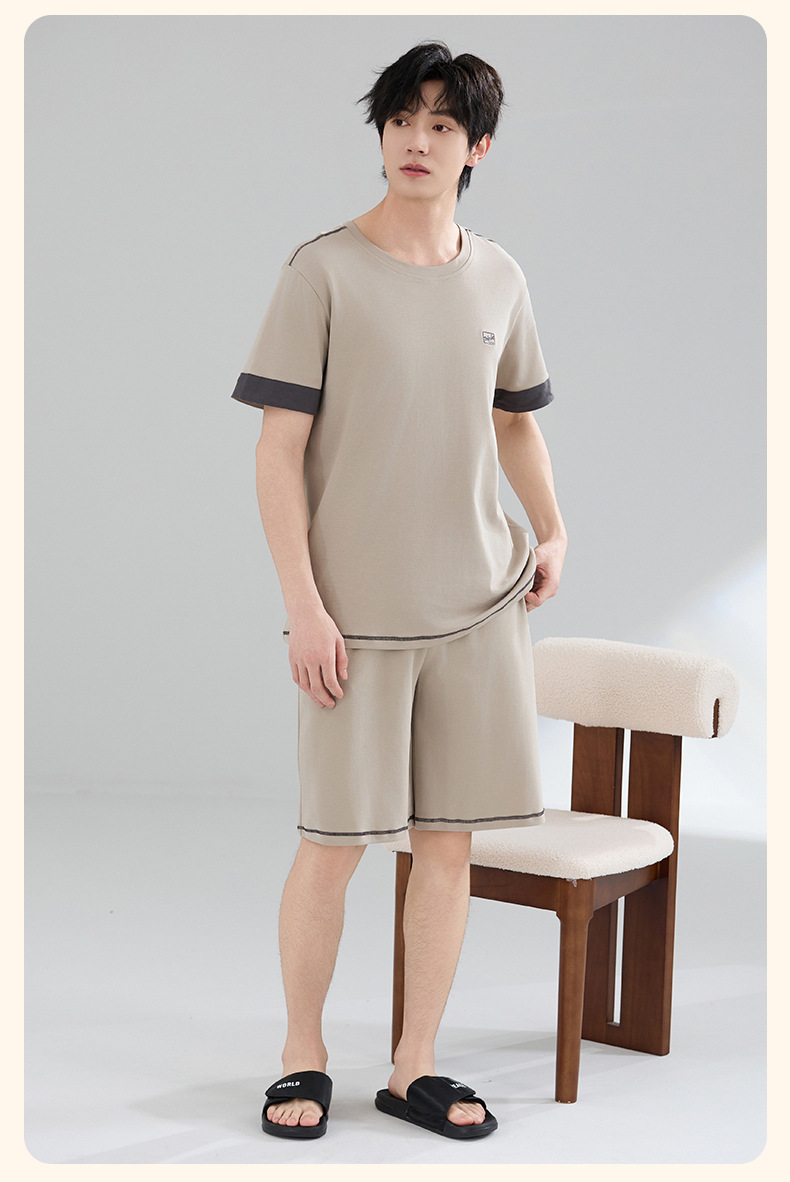 Pijamas de hombre verano algodón de manga corta cuello redondo suelto talla grande marco de tracción de verano algodón fresco traje de servicio a domicilio para niños