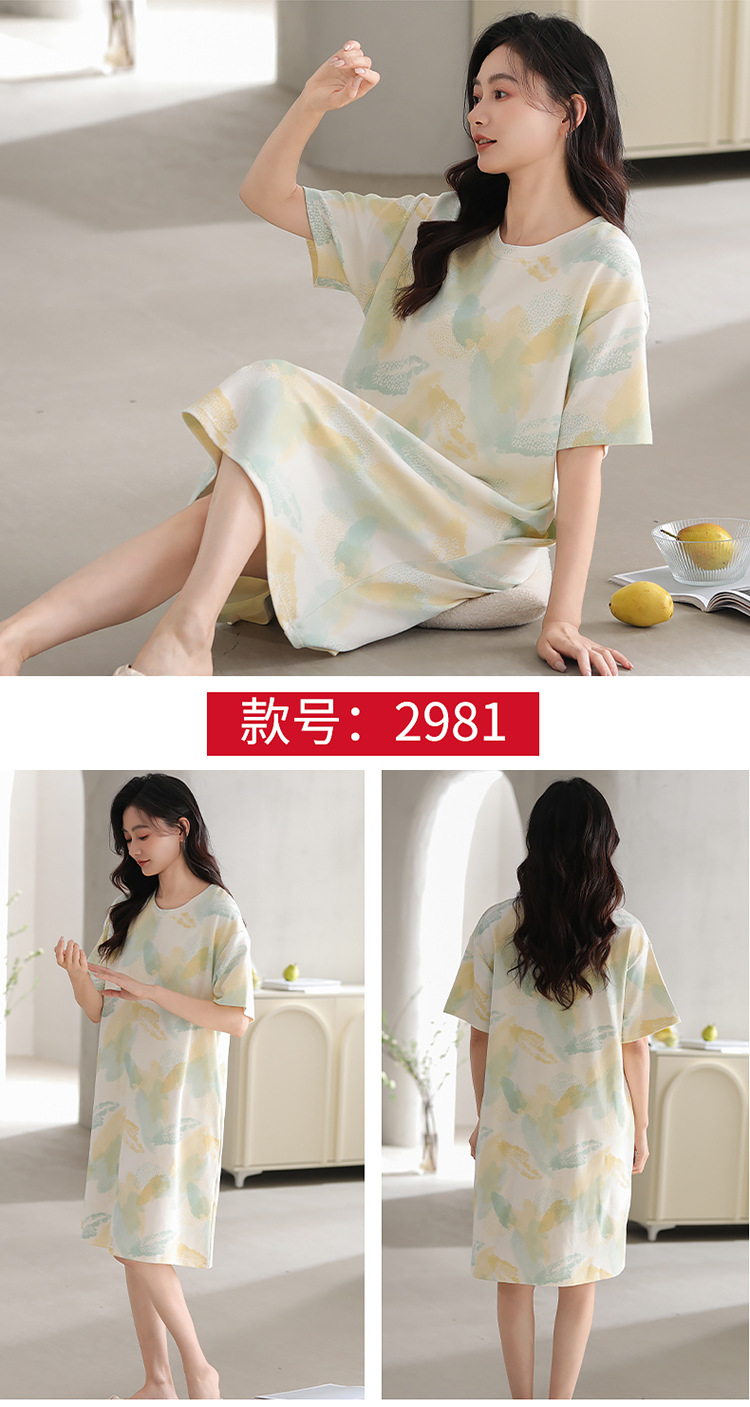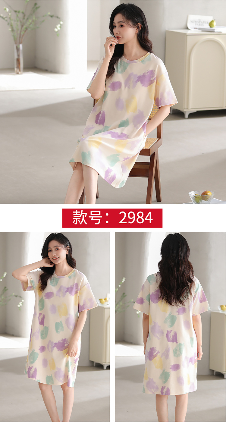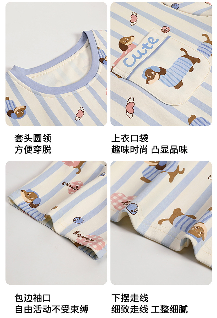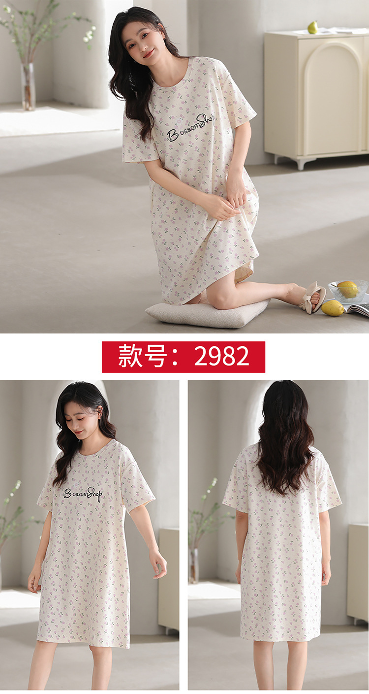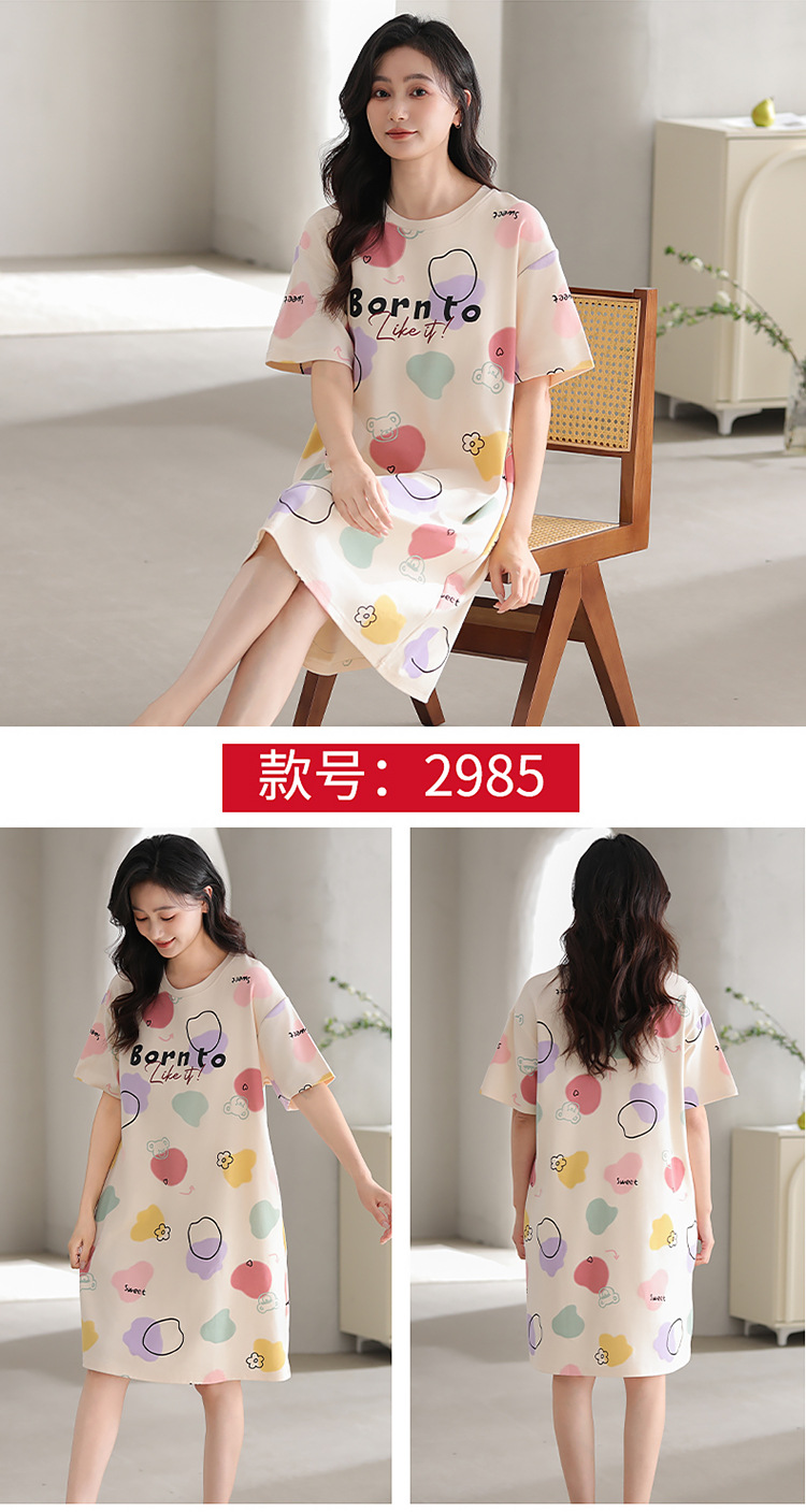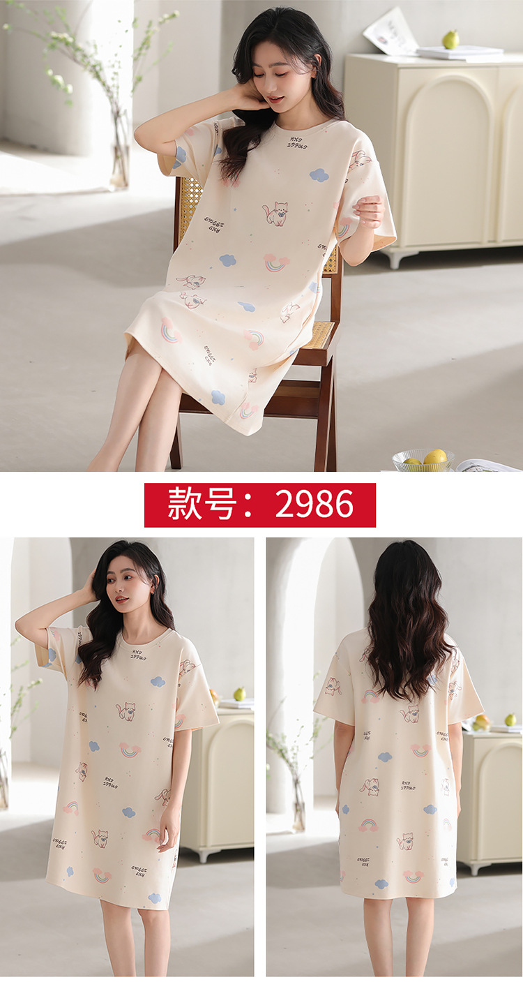 Pijama de mujer con almohadilla de pecho de dibujos animados red viento rojo estudiantes de manga corta, vestido largo medio, pijama integral de verano se puede usar fuera