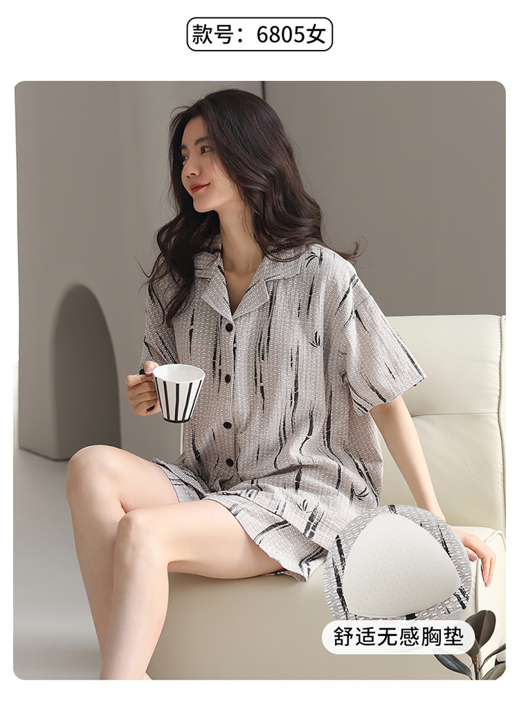 Pajamas de algodón para mujeres 2025 nuevo hombre de verano gran pareja de mangas cortas para mujeres con cojín de pecho conjunto de ropa para el hogar
