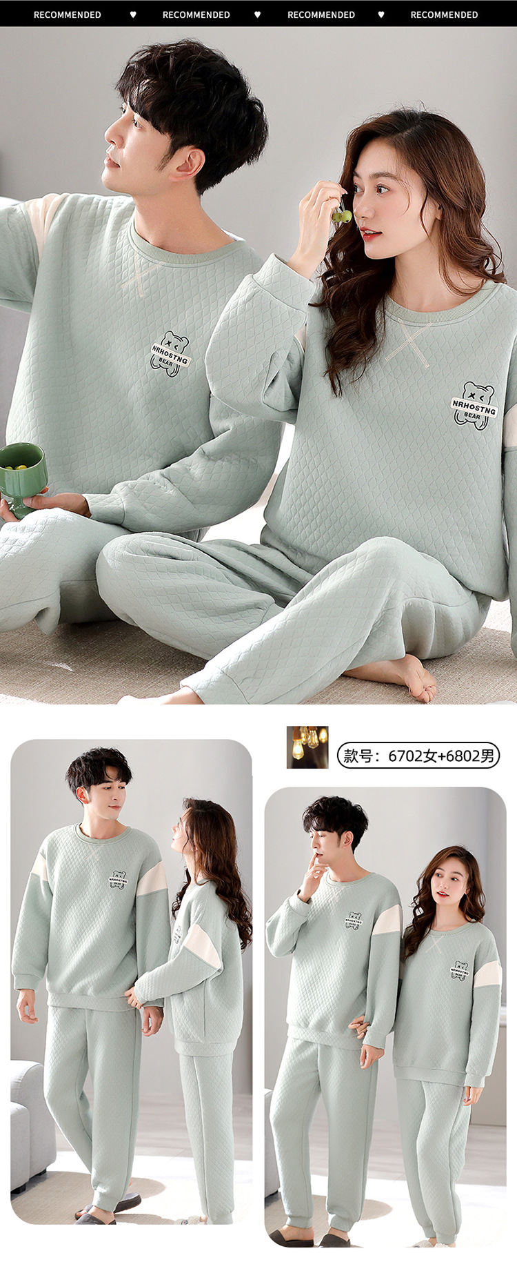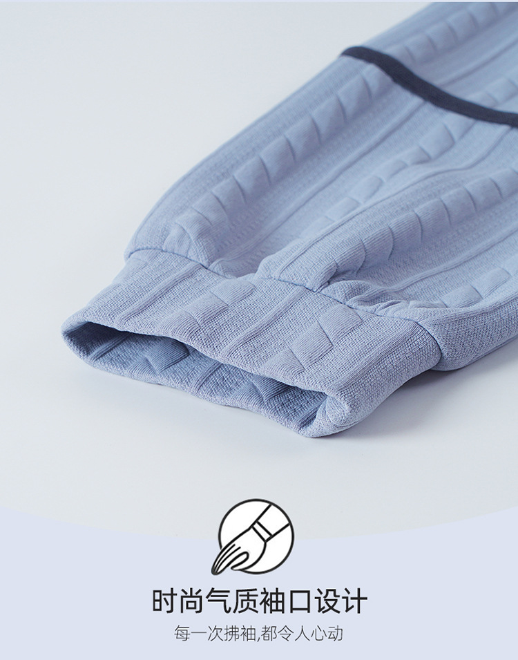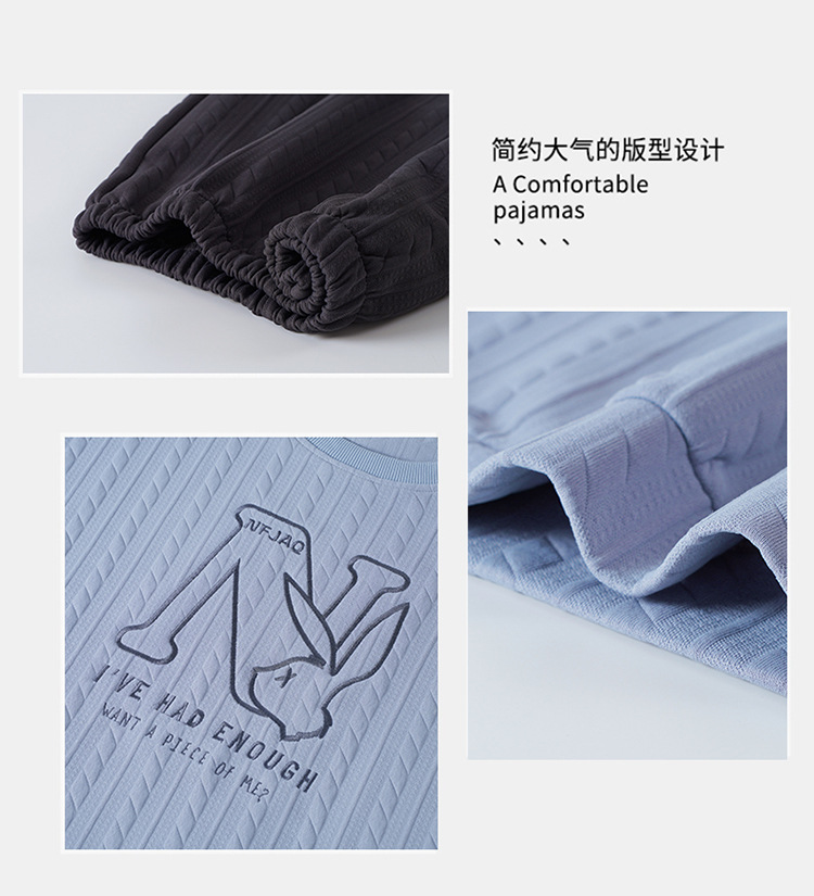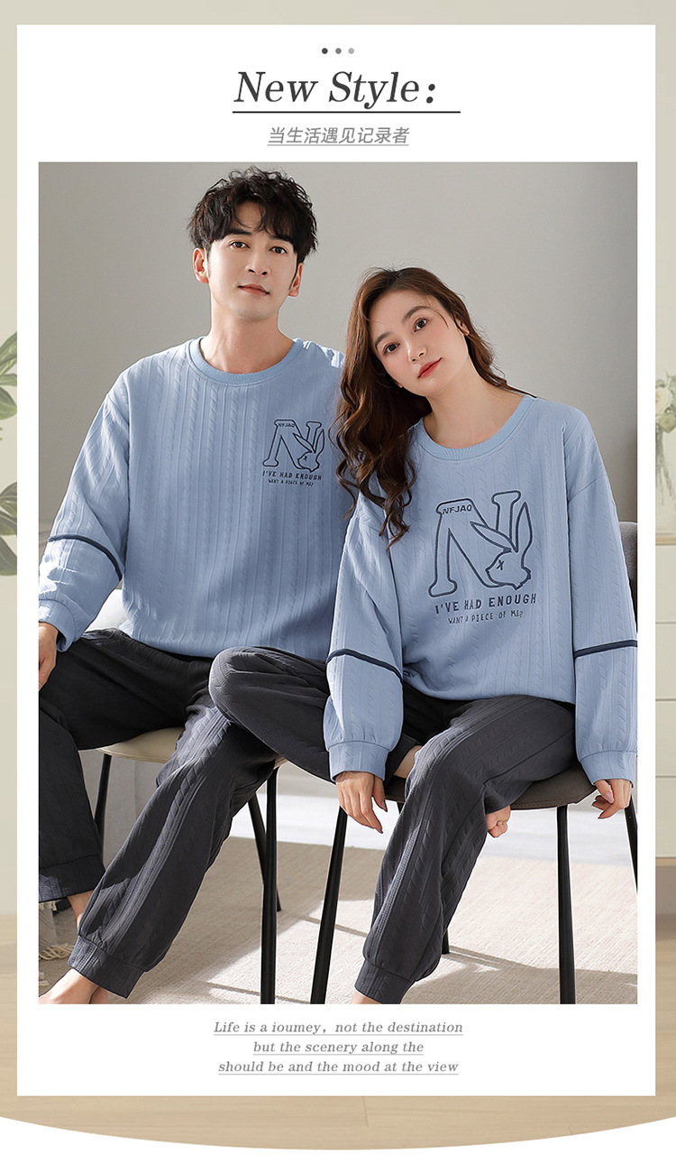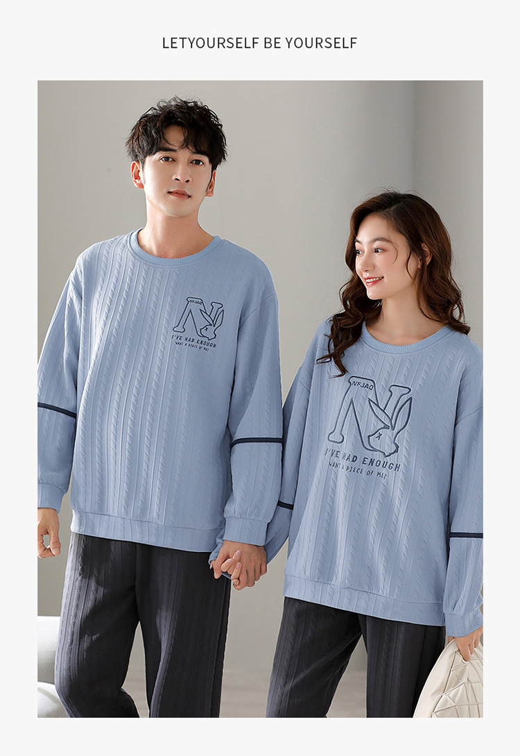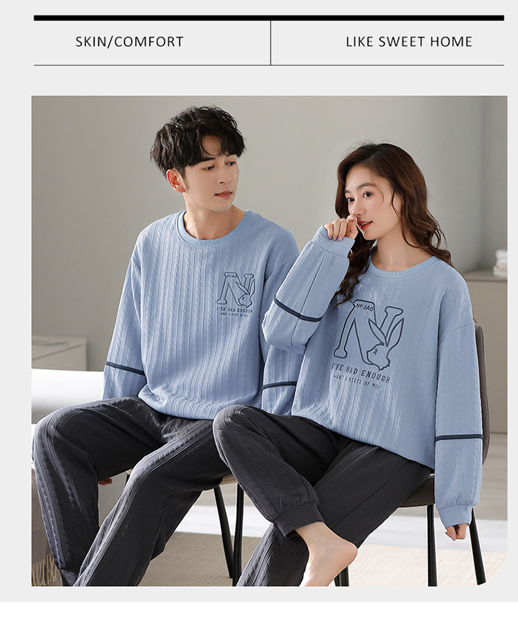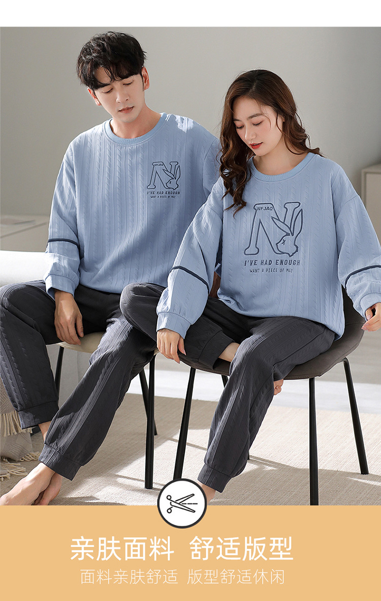 Otoño y invierno aire de algodón intercalado pareja pijama grueso hombre calentamiento conjunto se puede usar ropa de cuello redondo para el hogar