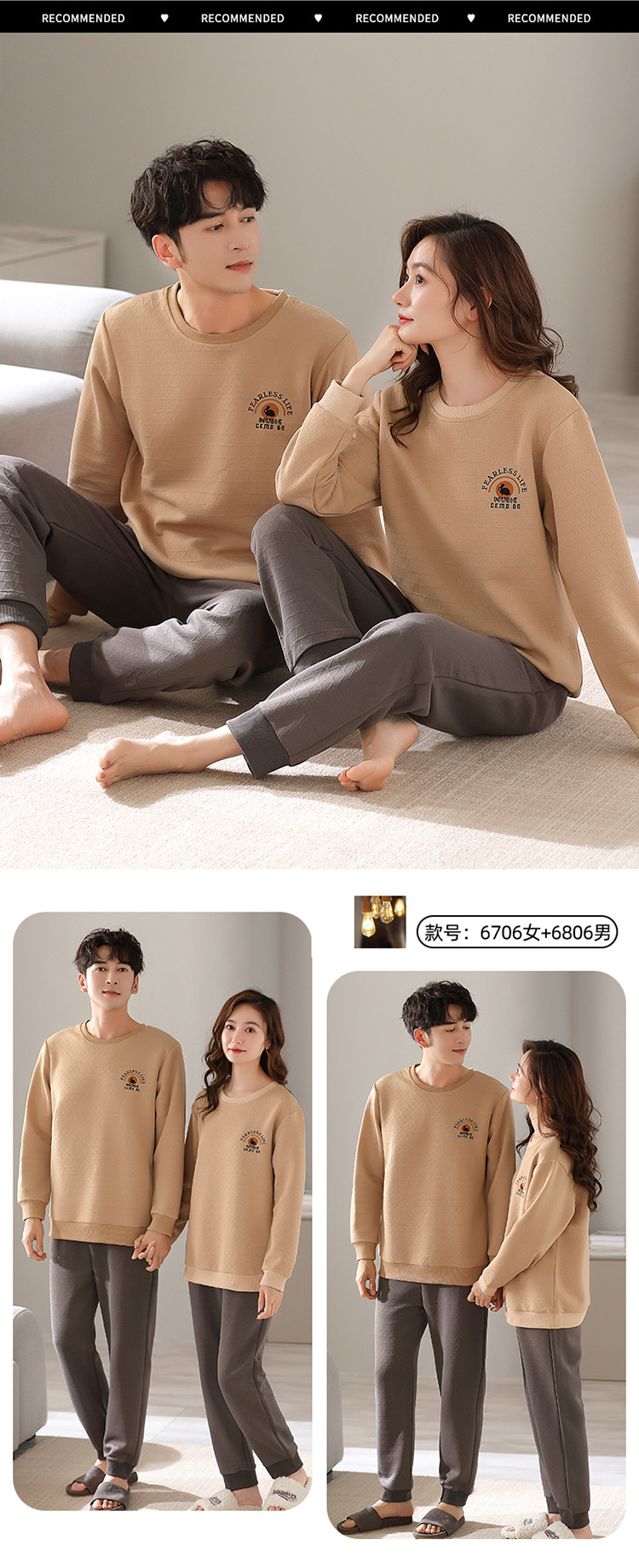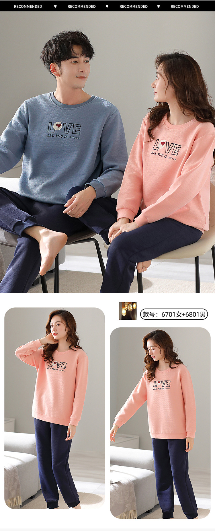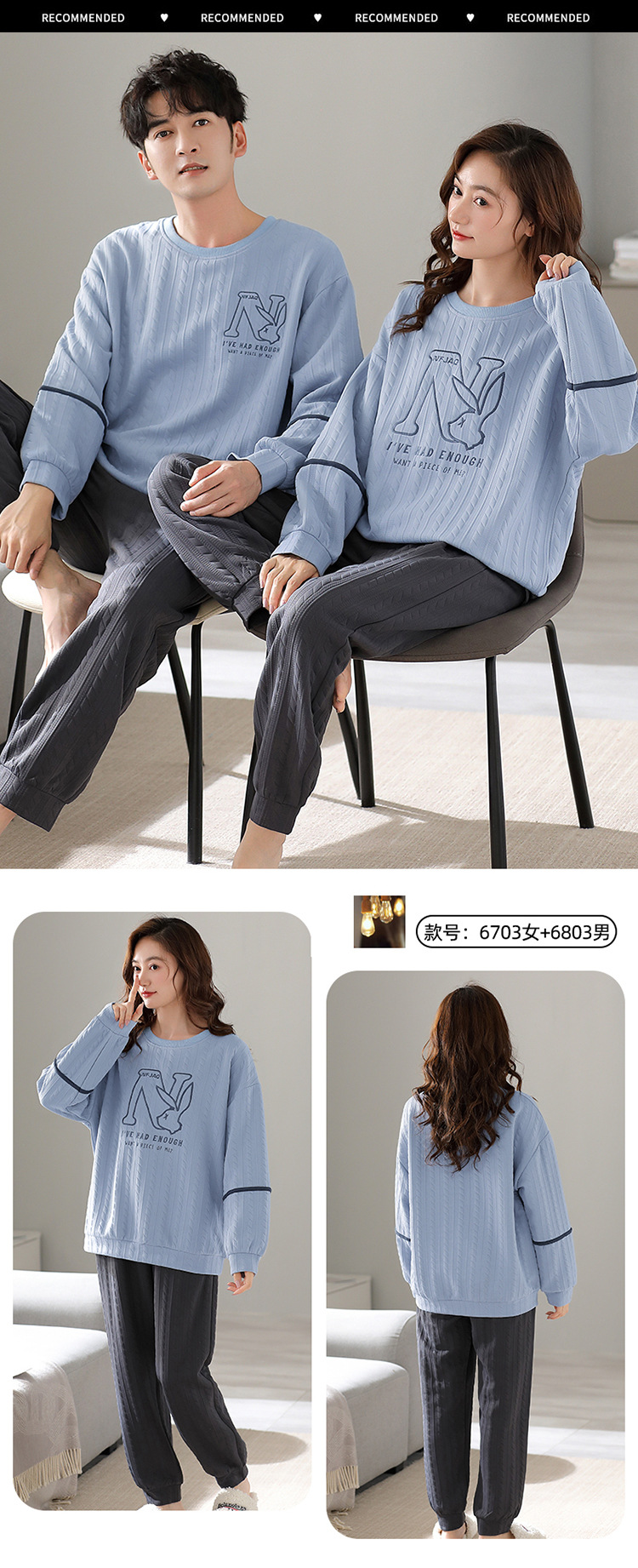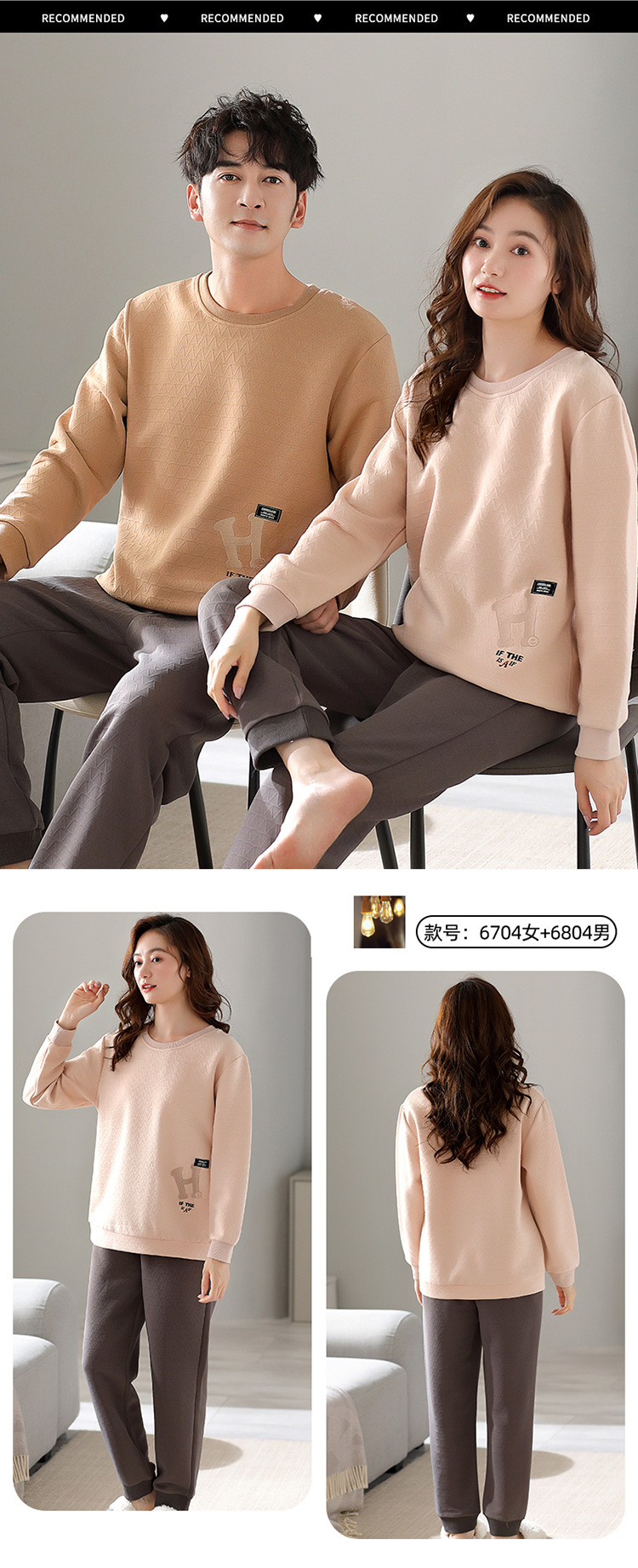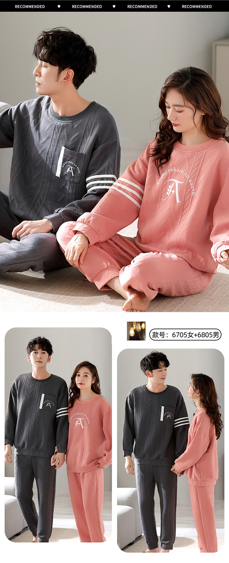 Otoño y invierno aire de algodón intercalado pareja pijama grueso hombre calentamiento conjunto se puede usar ropa de cuello redondo para el hogar
