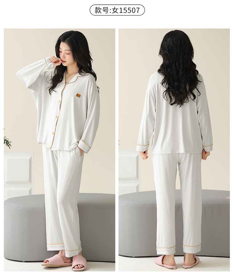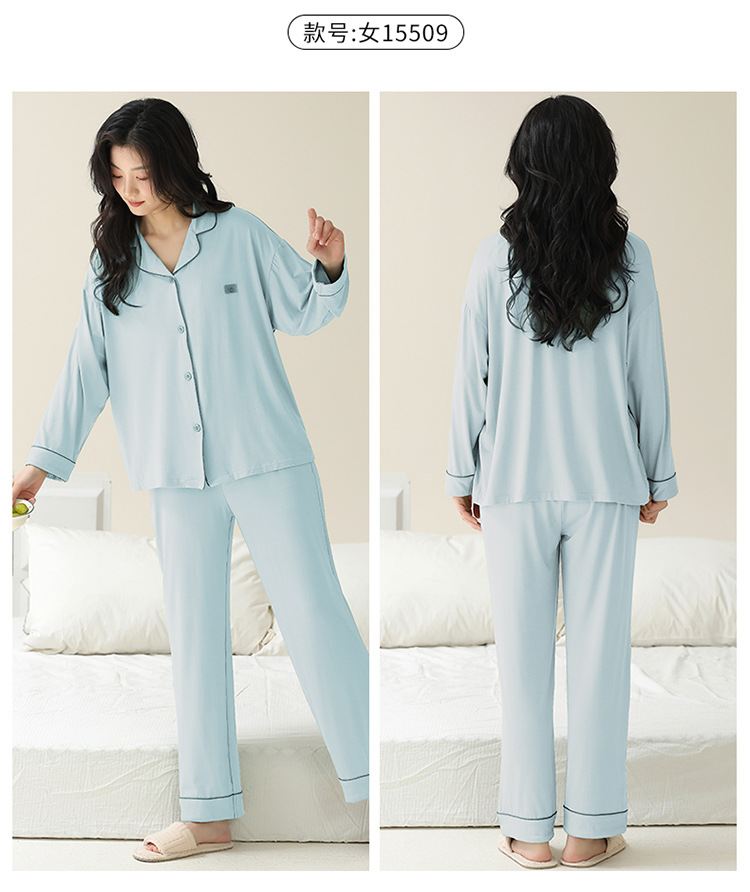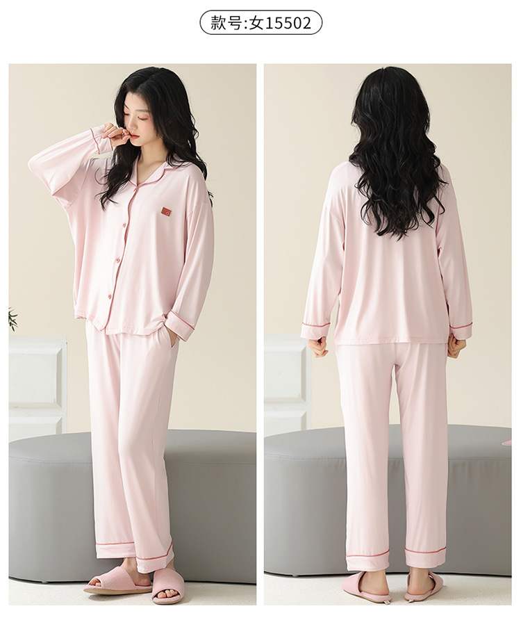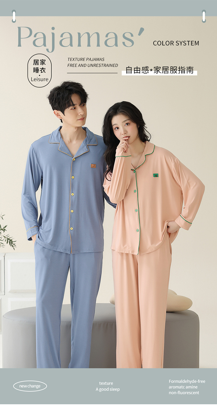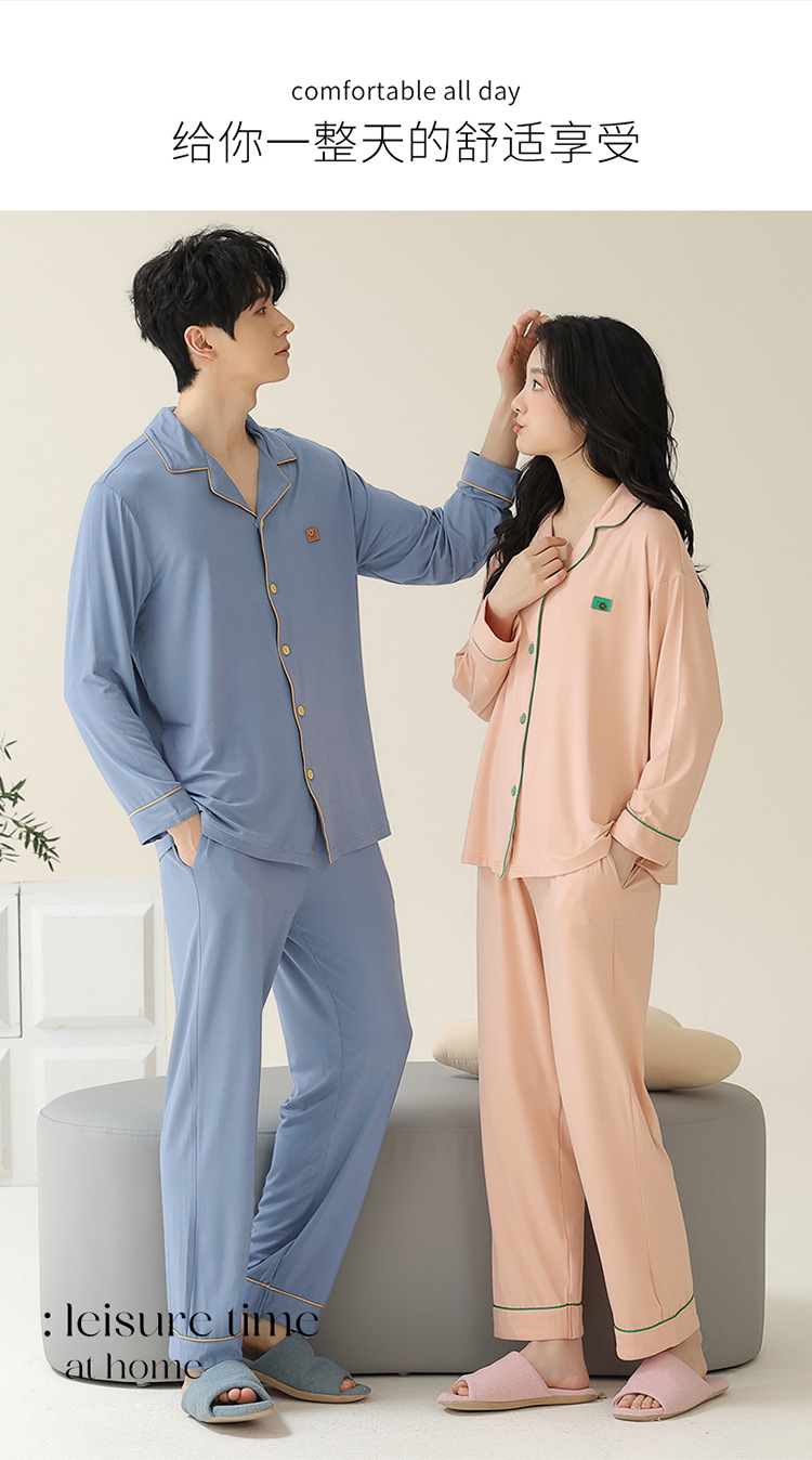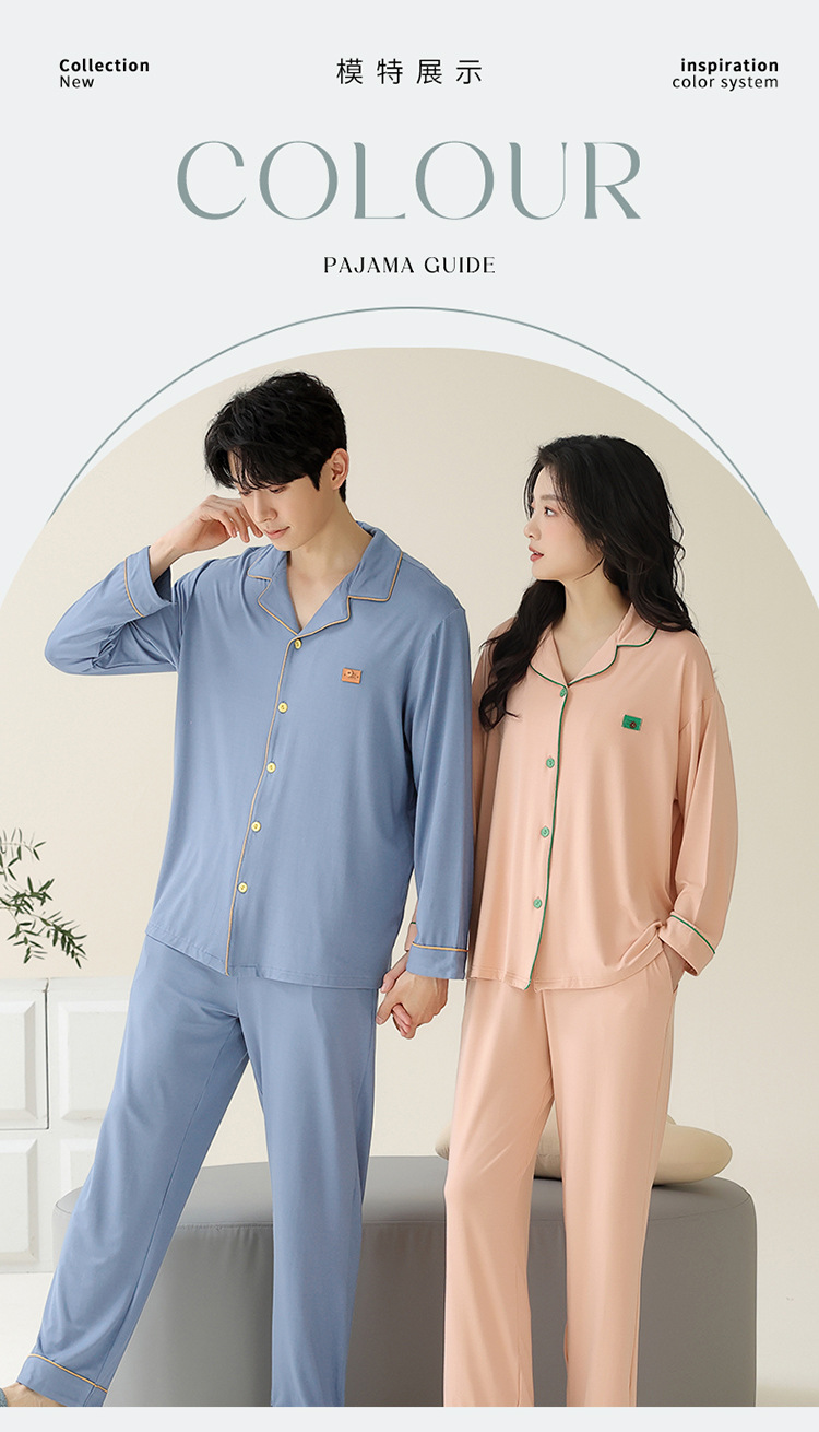 Pajama de pareja de primavera y otoño delgado moda pantalones de manga larga cardigan juvenil simple conjunto de ropa casera casual