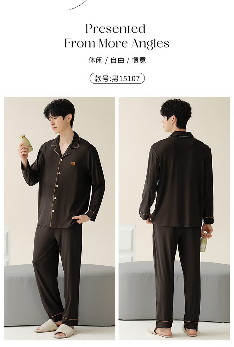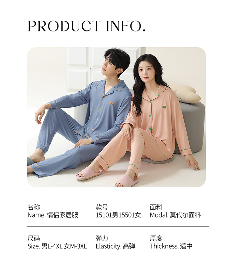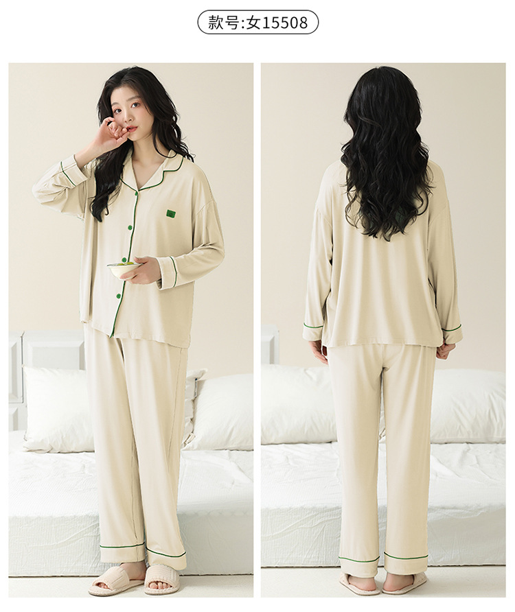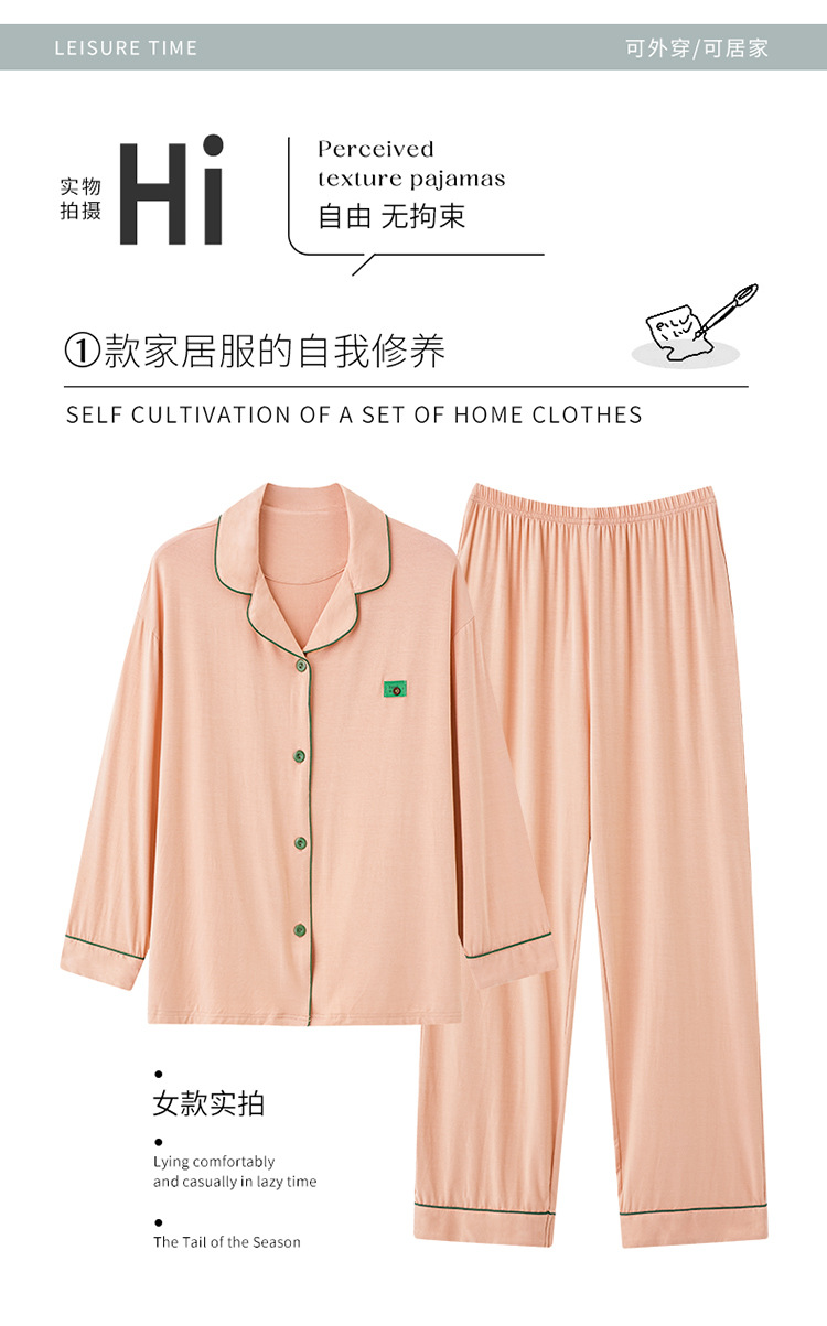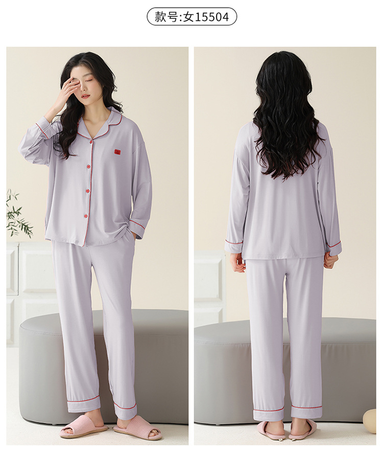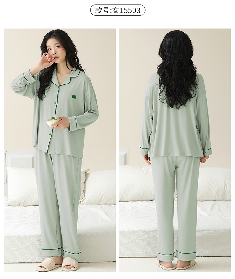 Pajama de pareja de primavera y otoño delgado moda pantalones de manga larga cardigan juvenil simple conjunto de ropa casera casual