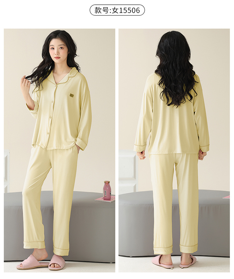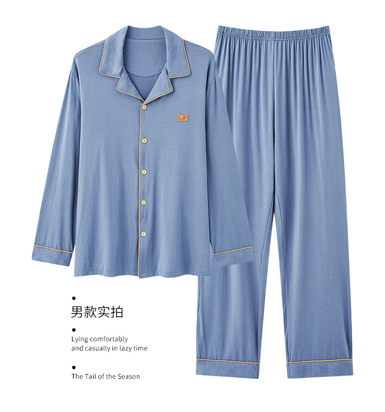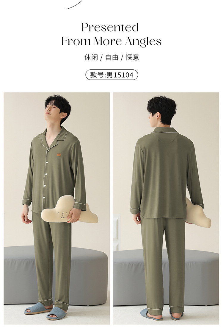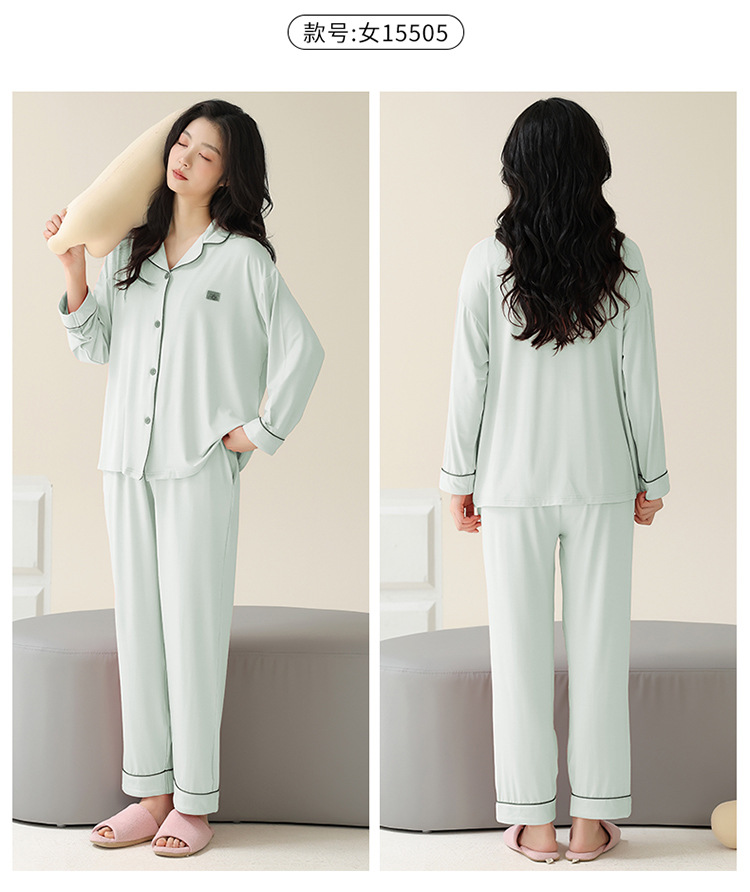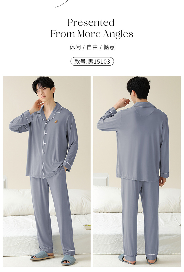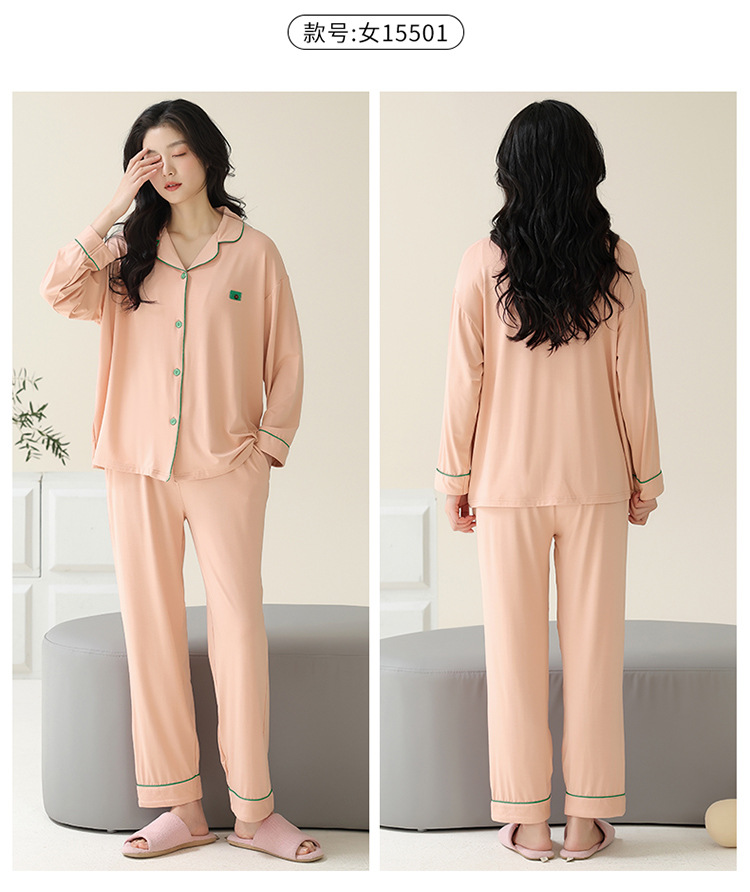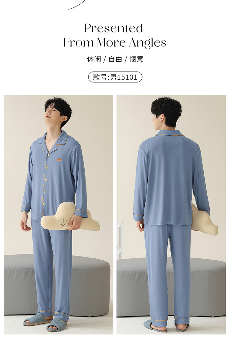 Pajama de pareja de primavera y otoño delgado moda pantalones de manga larga cardigan juvenil simple conjunto de ropa casera casual