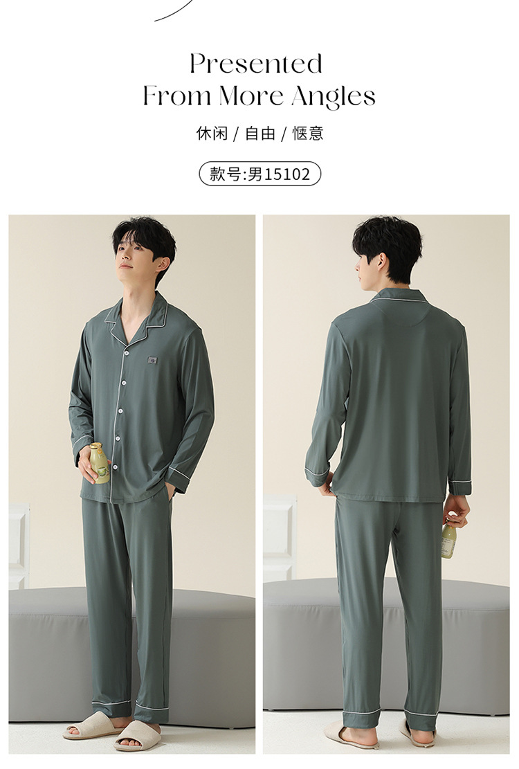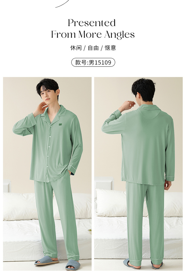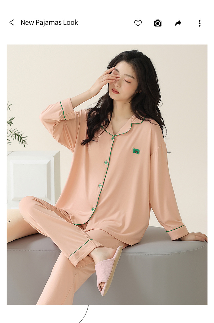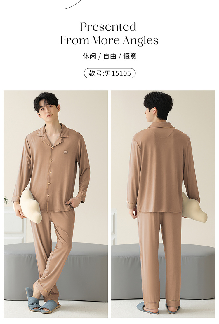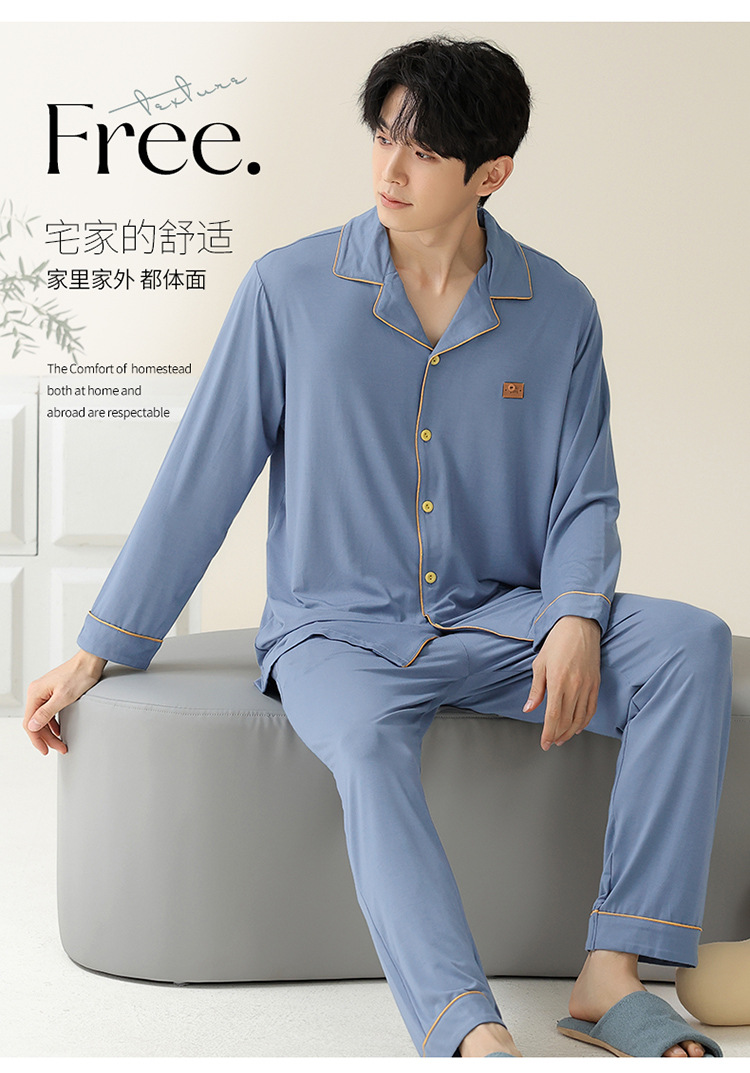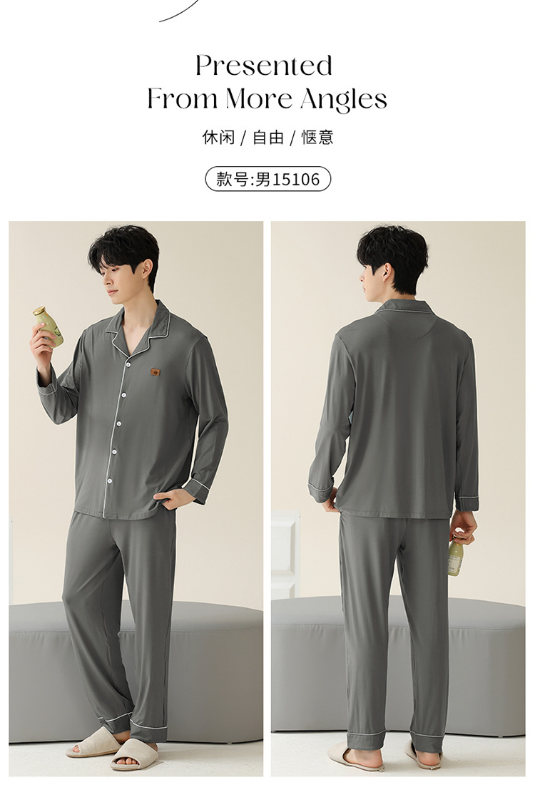 Pajama de pareja de primavera y otoño delgado moda pantalones de manga larga cardigan juvenil simple conjunto de ropa casera casual