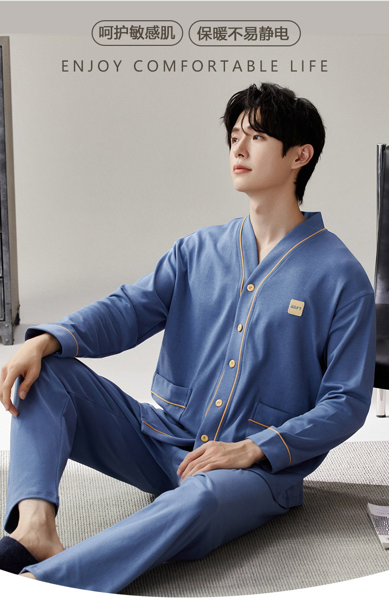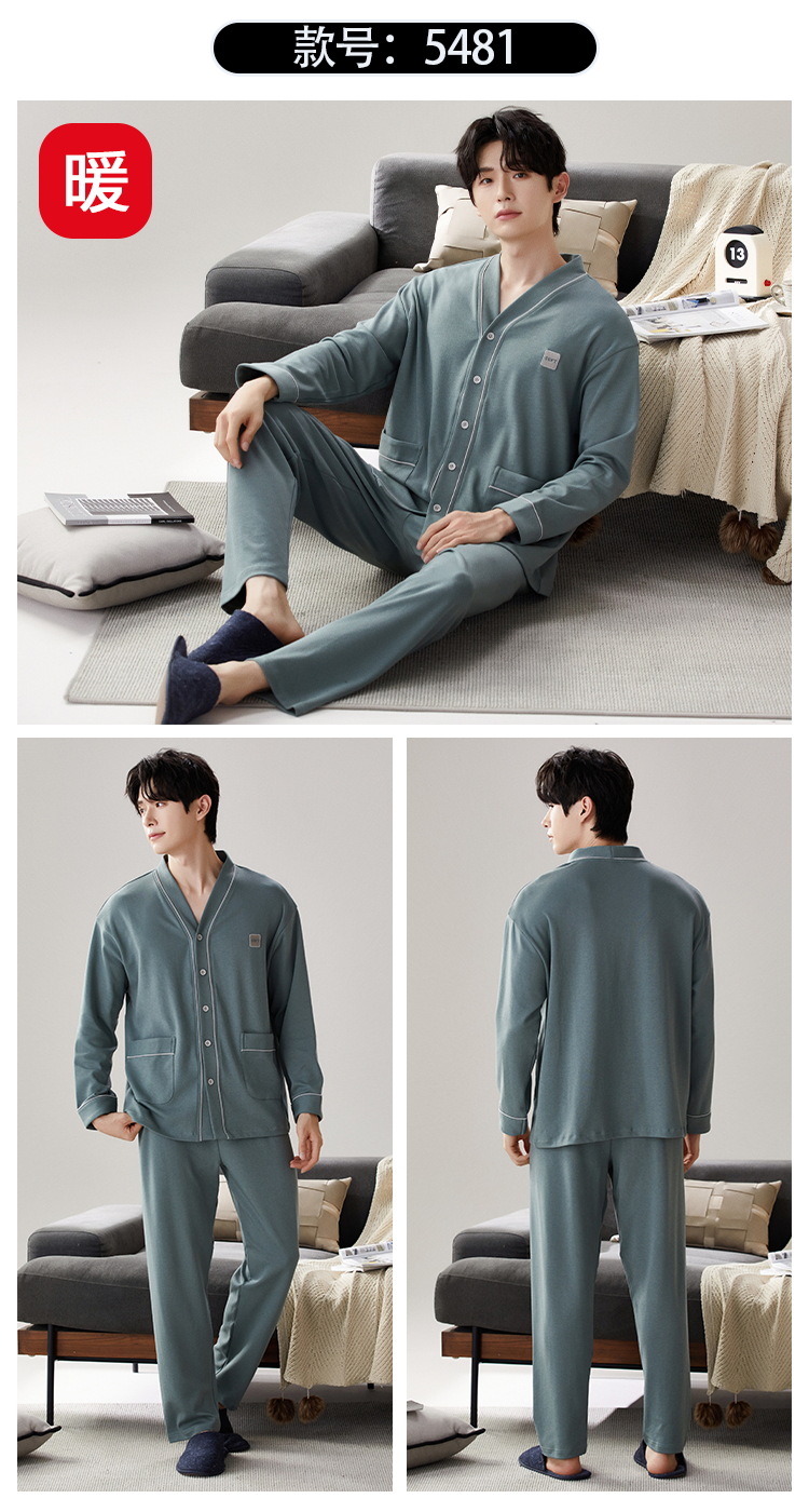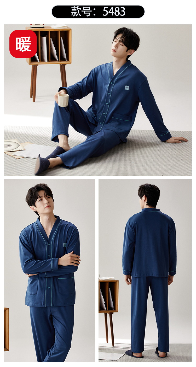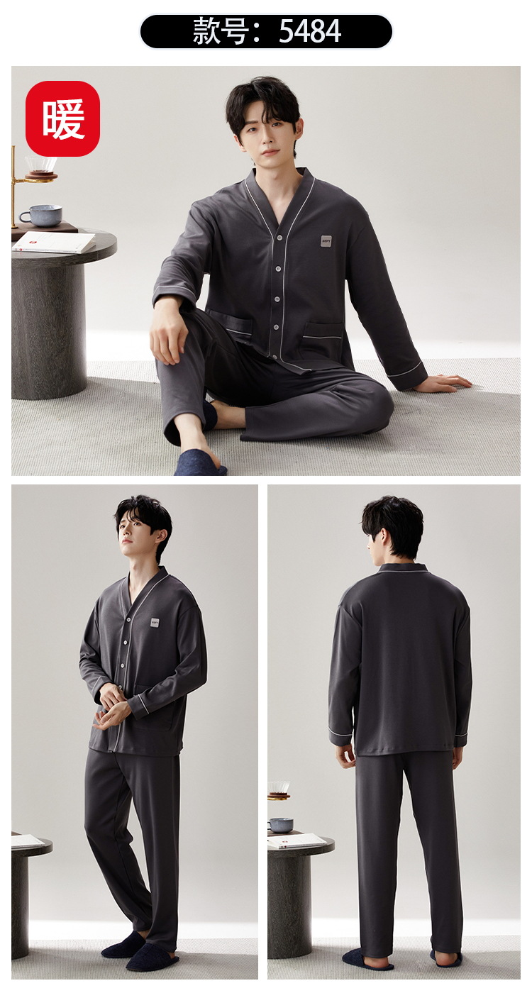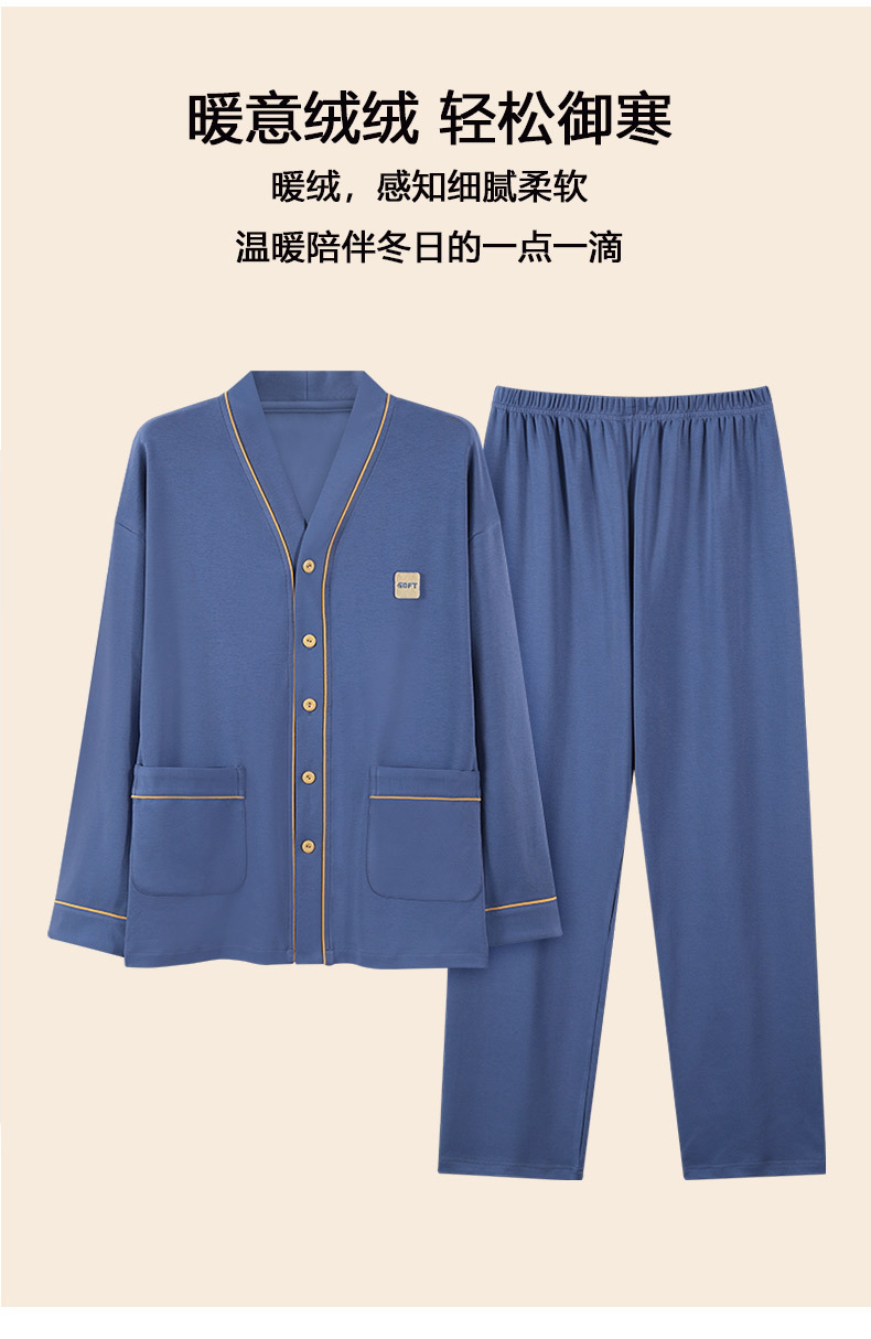 Pijama de hombre nuevo otoño y invierno de terciopelo calor engrosado manga larga simple invierno ropa casera casual set