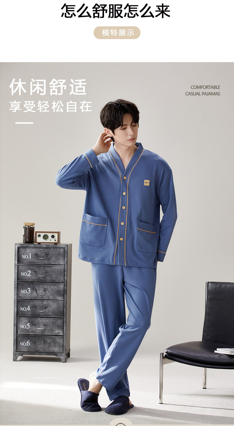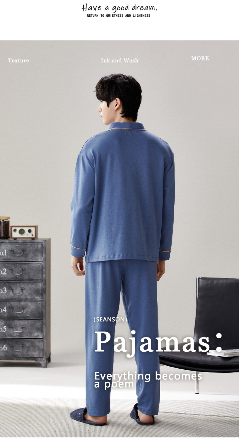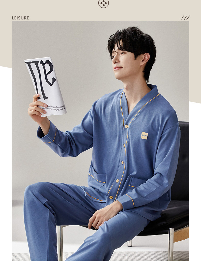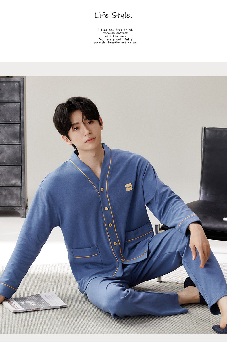 Pijama de hombre nuevo otoño y invierno de terciopelo calor engrosado manga larga simple invierno ropa casera casual set