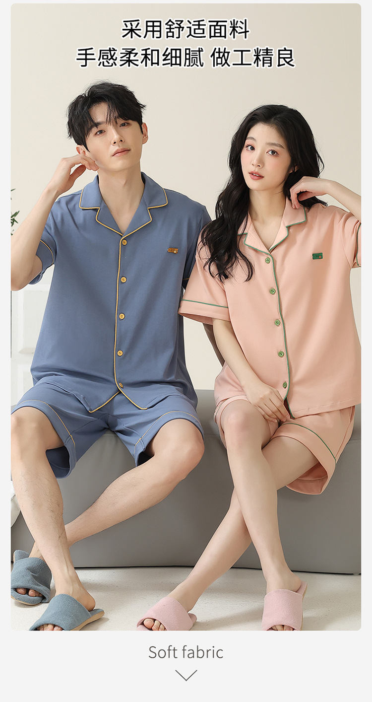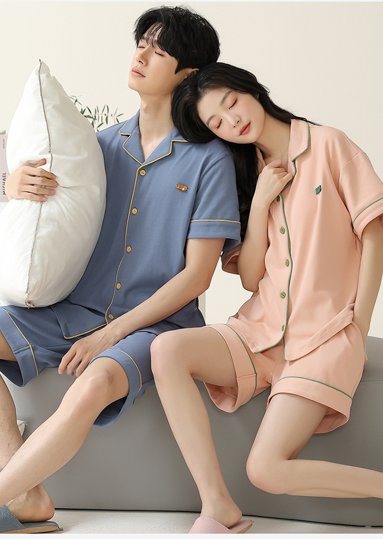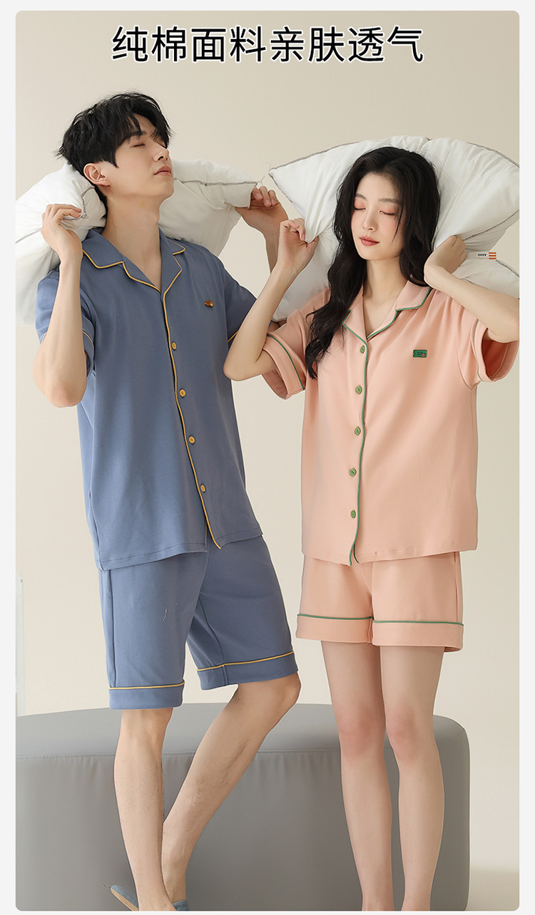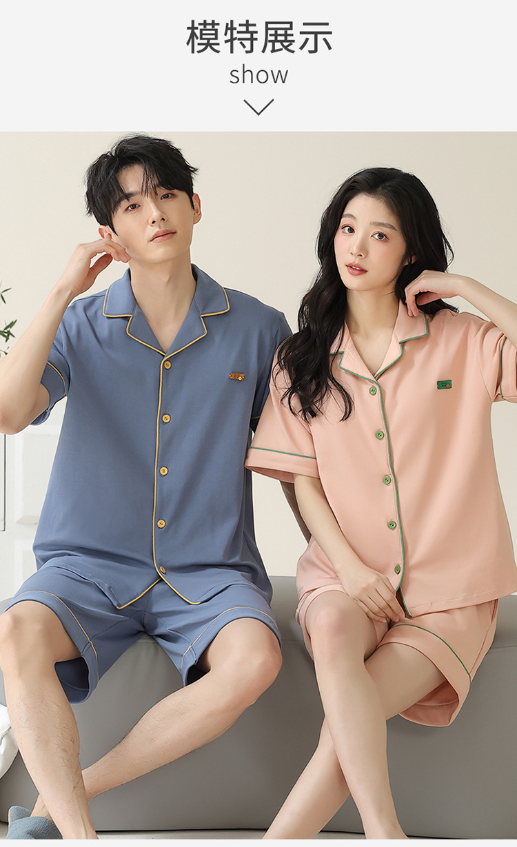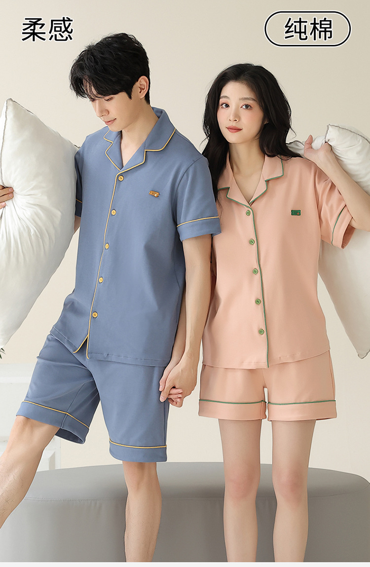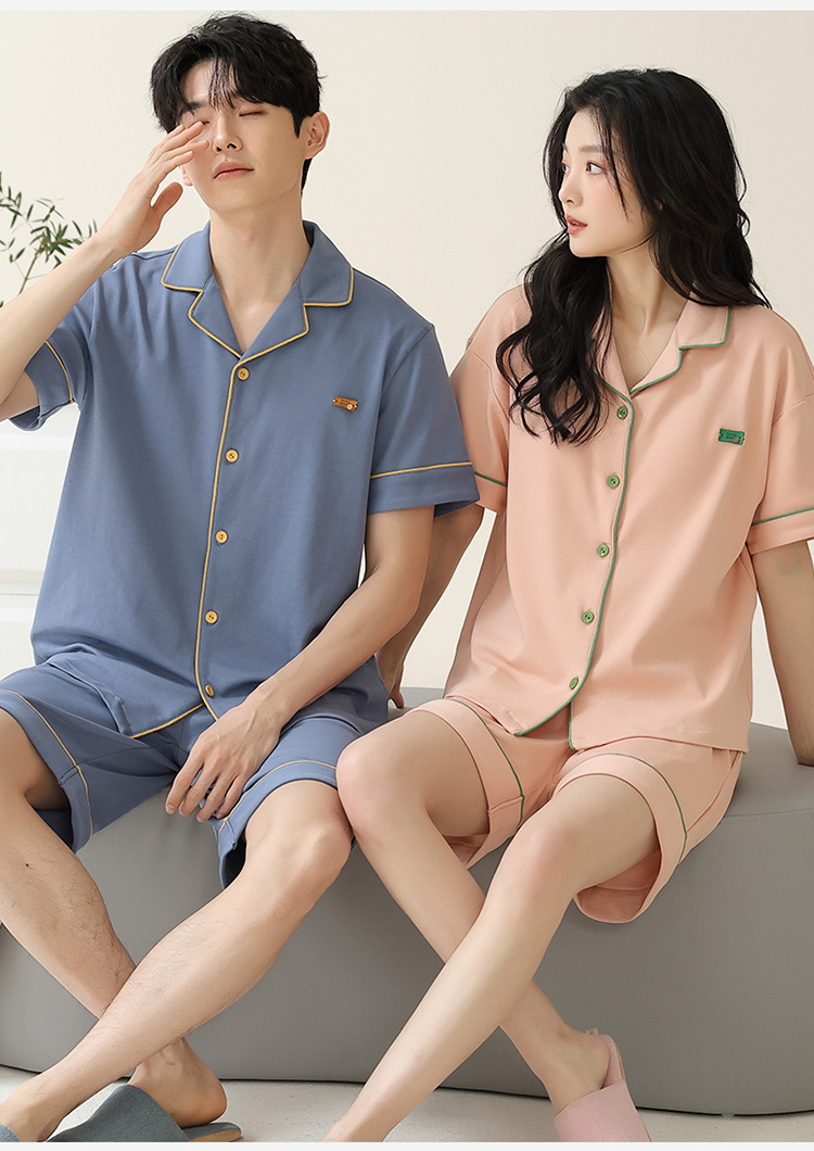 Pajamas de pareja simple mujeres verano 2024 nuevo delgado pantalones cortos de mangas cortas con solapa de algodón para hombres set de ropa de hogar