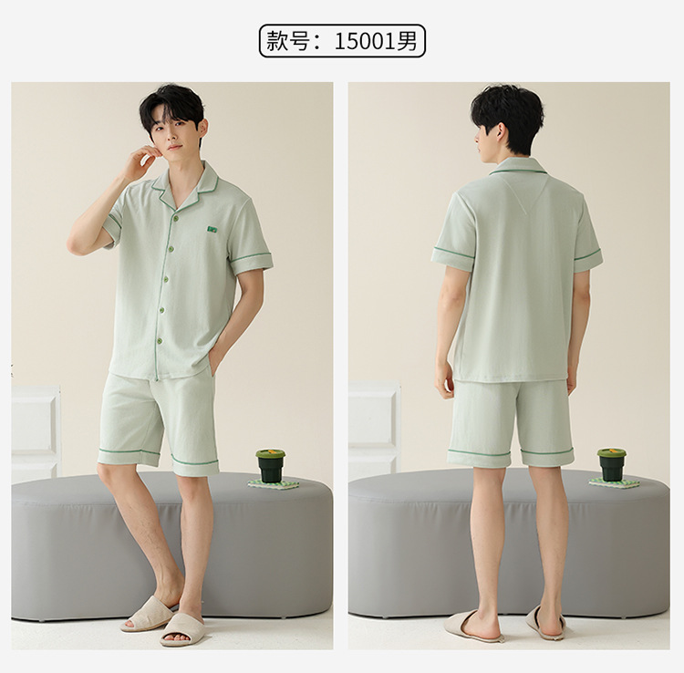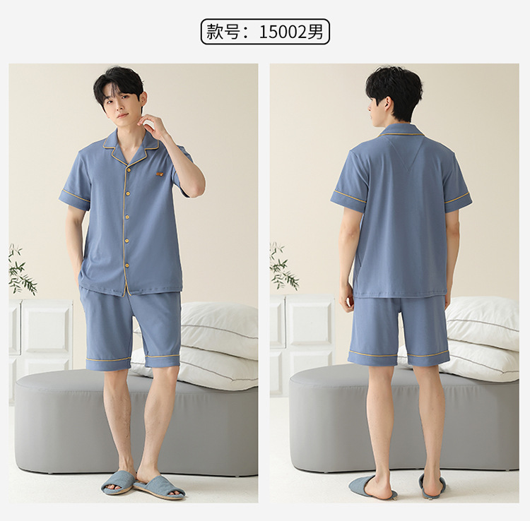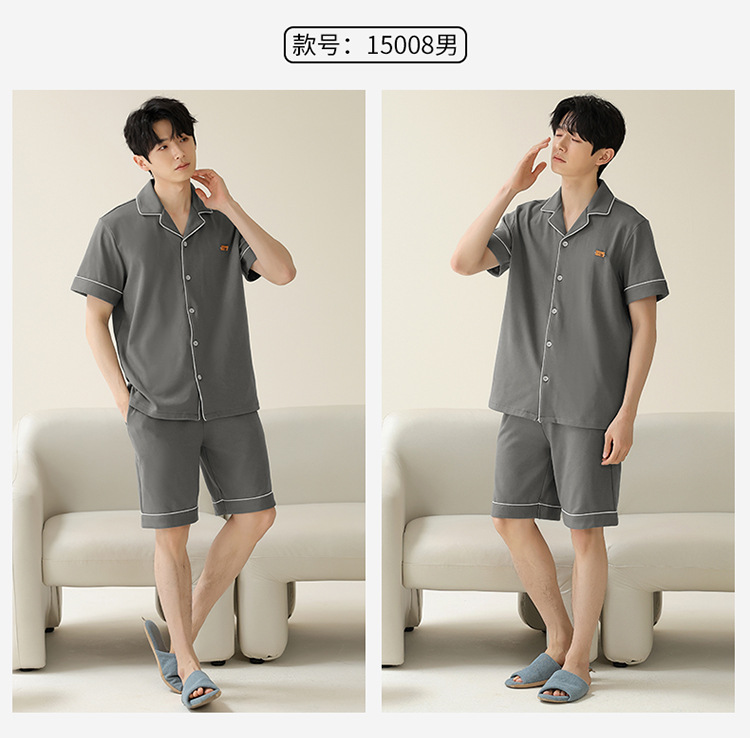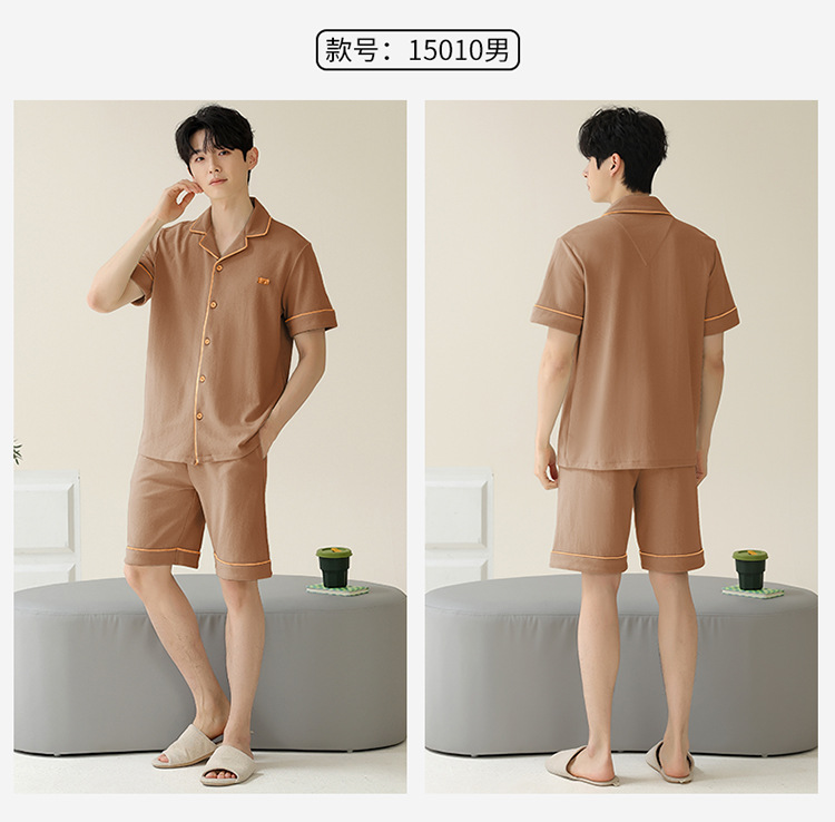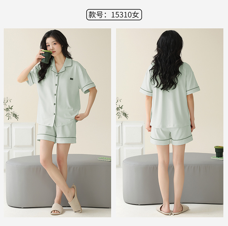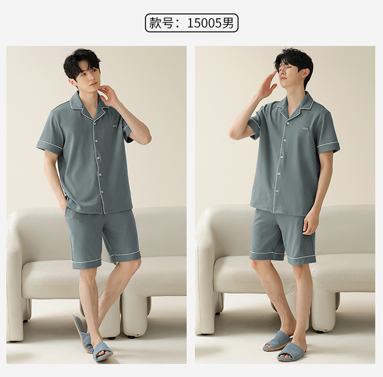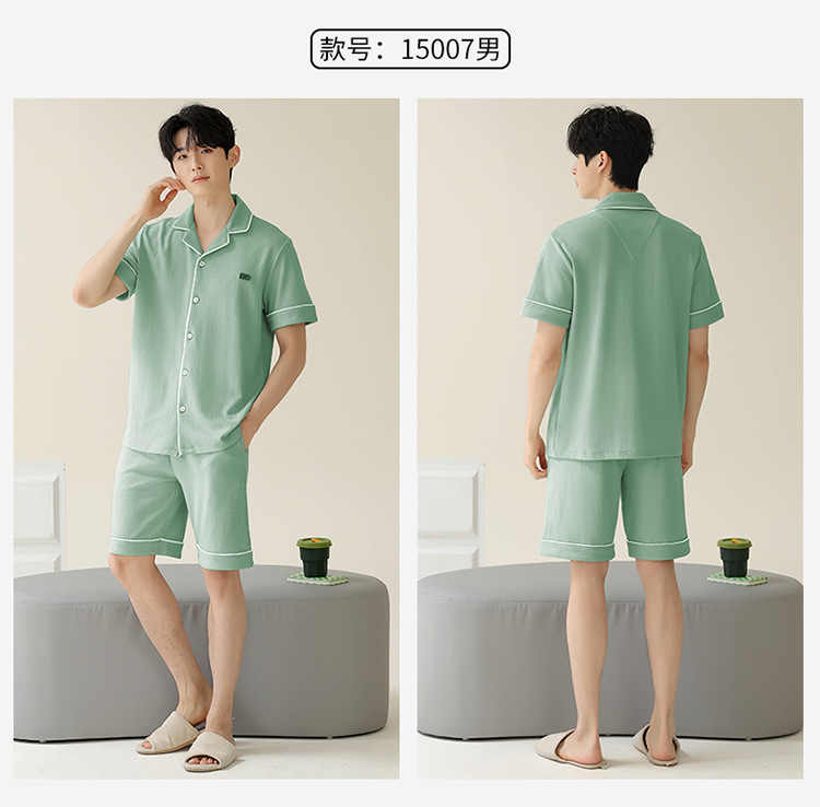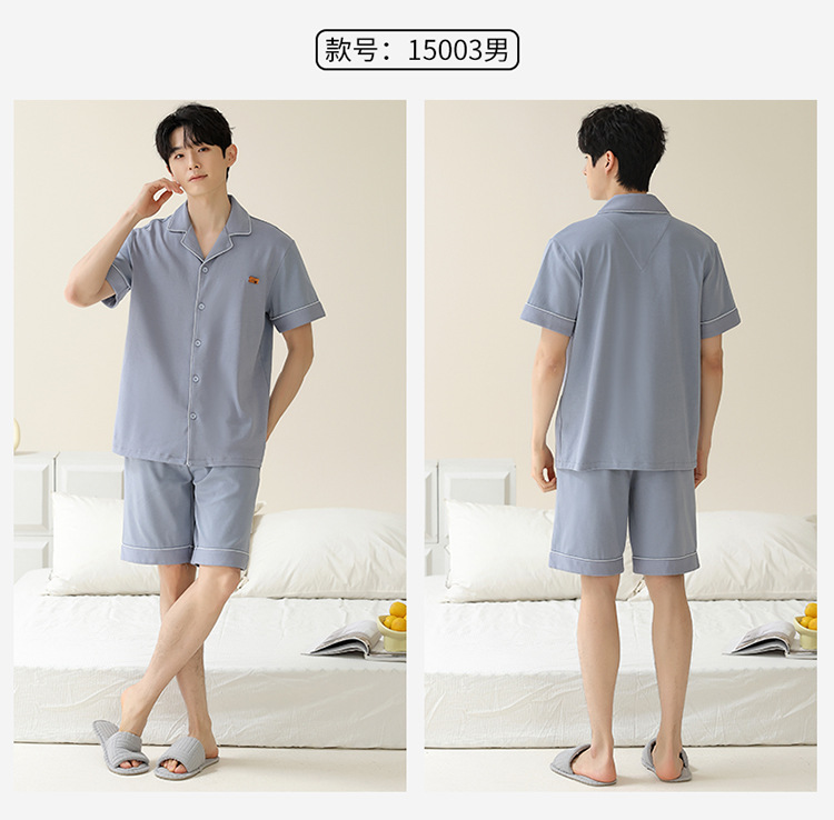 Pajamas de pareja simple mujeres verano 2024 nuevo delgado pantalones cortos de mangas cortas con solapa de algodón para hombres set de ropa de hogar