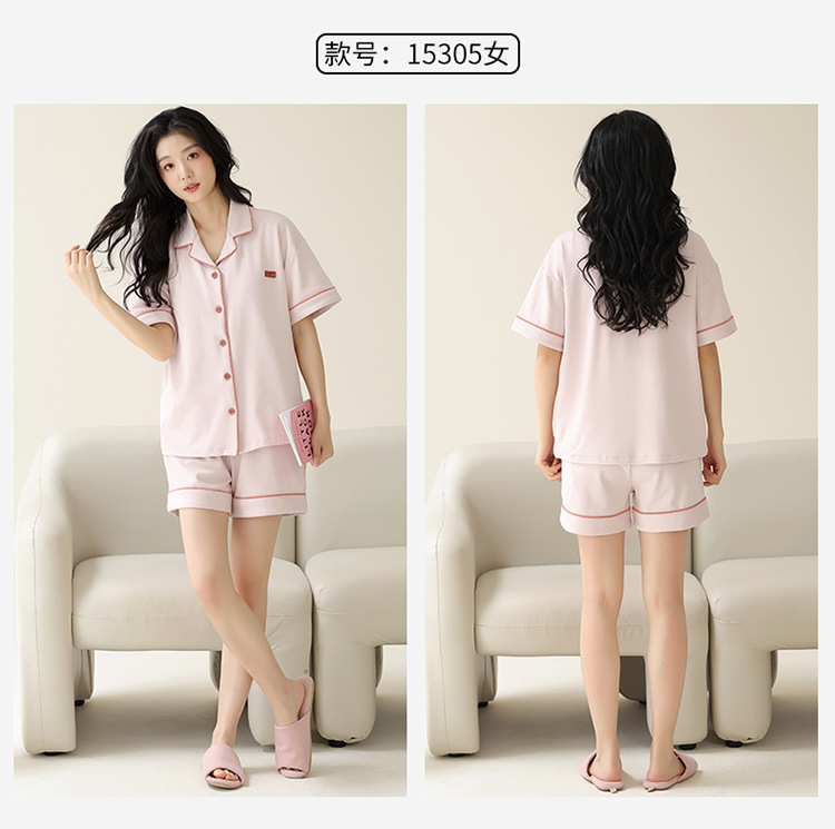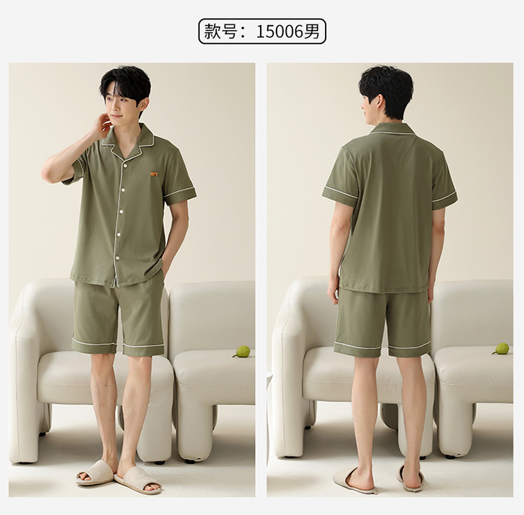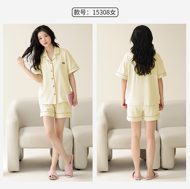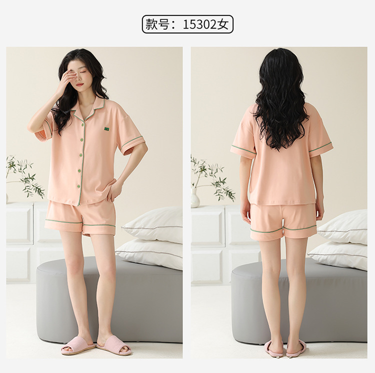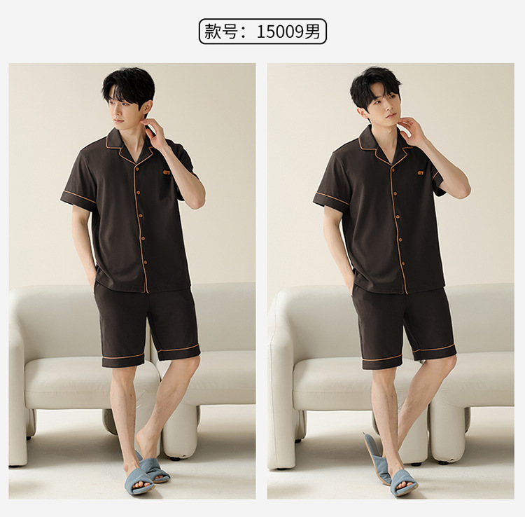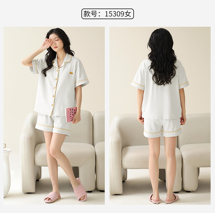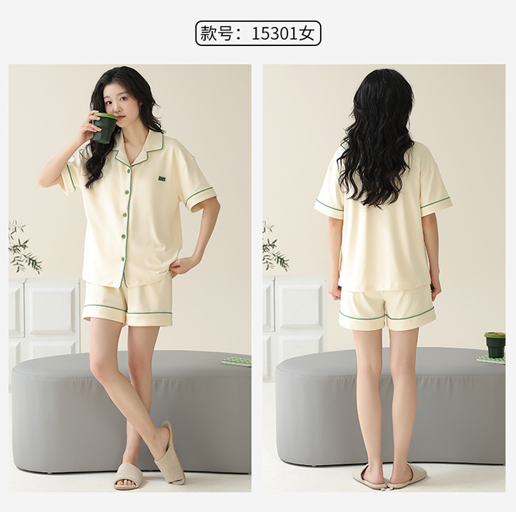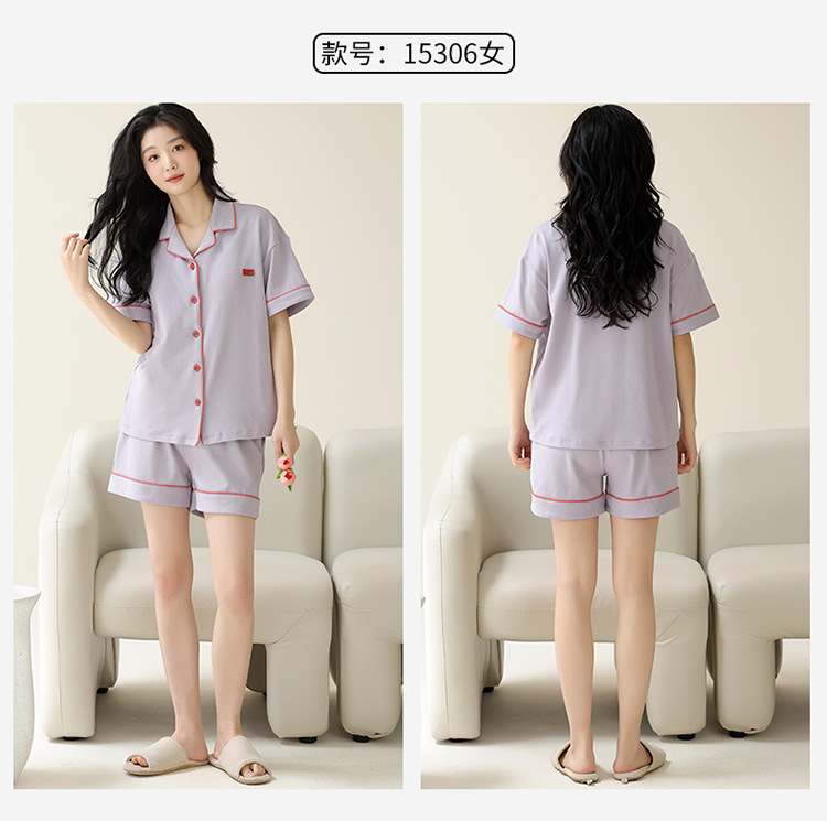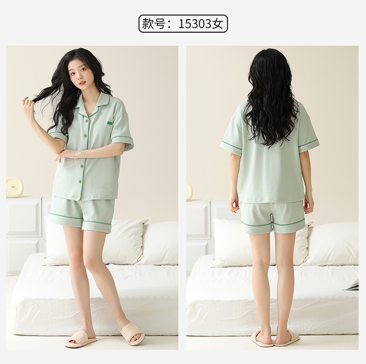 Pajamas de pareja simple mujeres verano 2024 nuevo delgado pantalones cortos de mangas cortas con solapa de algodón para hombres set de ropa de hogar