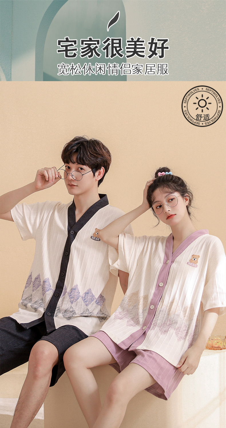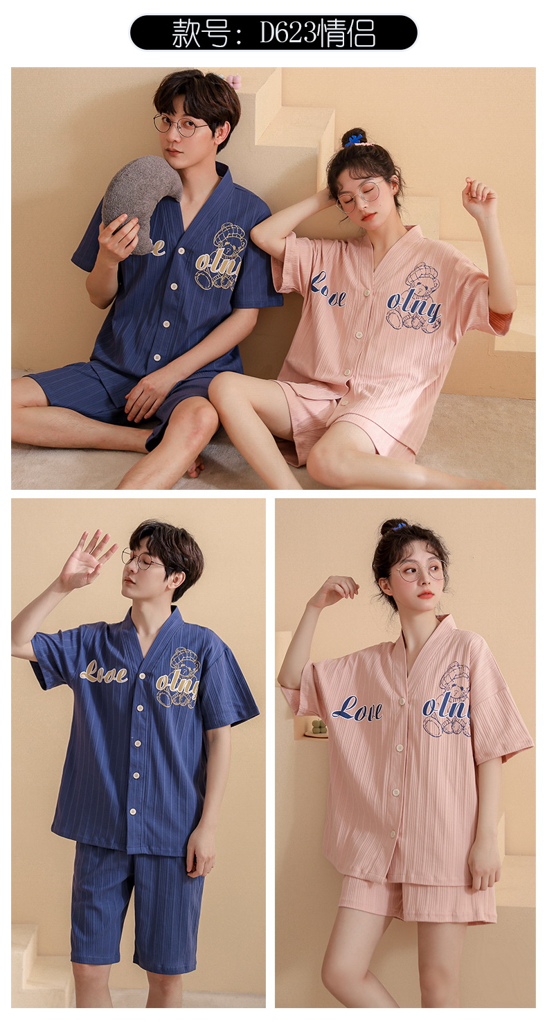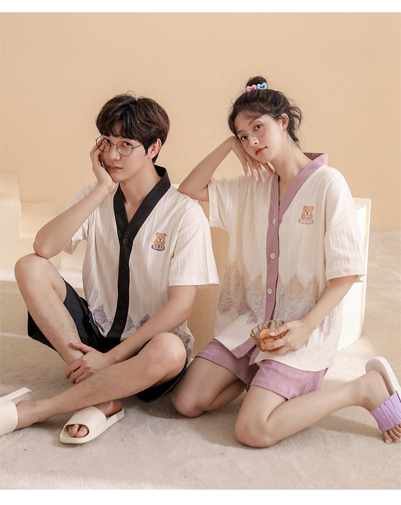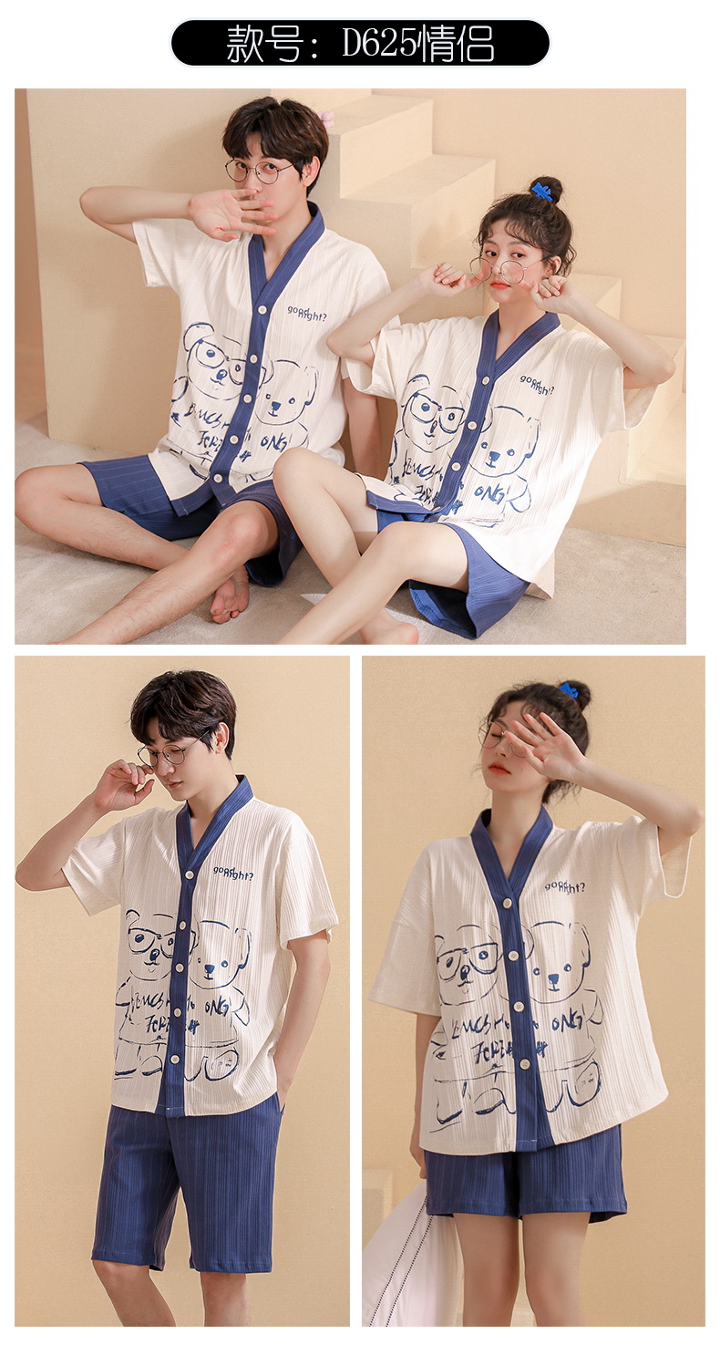 2024 verano pareja pijama de algodón cardigan de manga corta suelta ropa de casa de tamaño grande para hombres y mujeres juegos de camiso