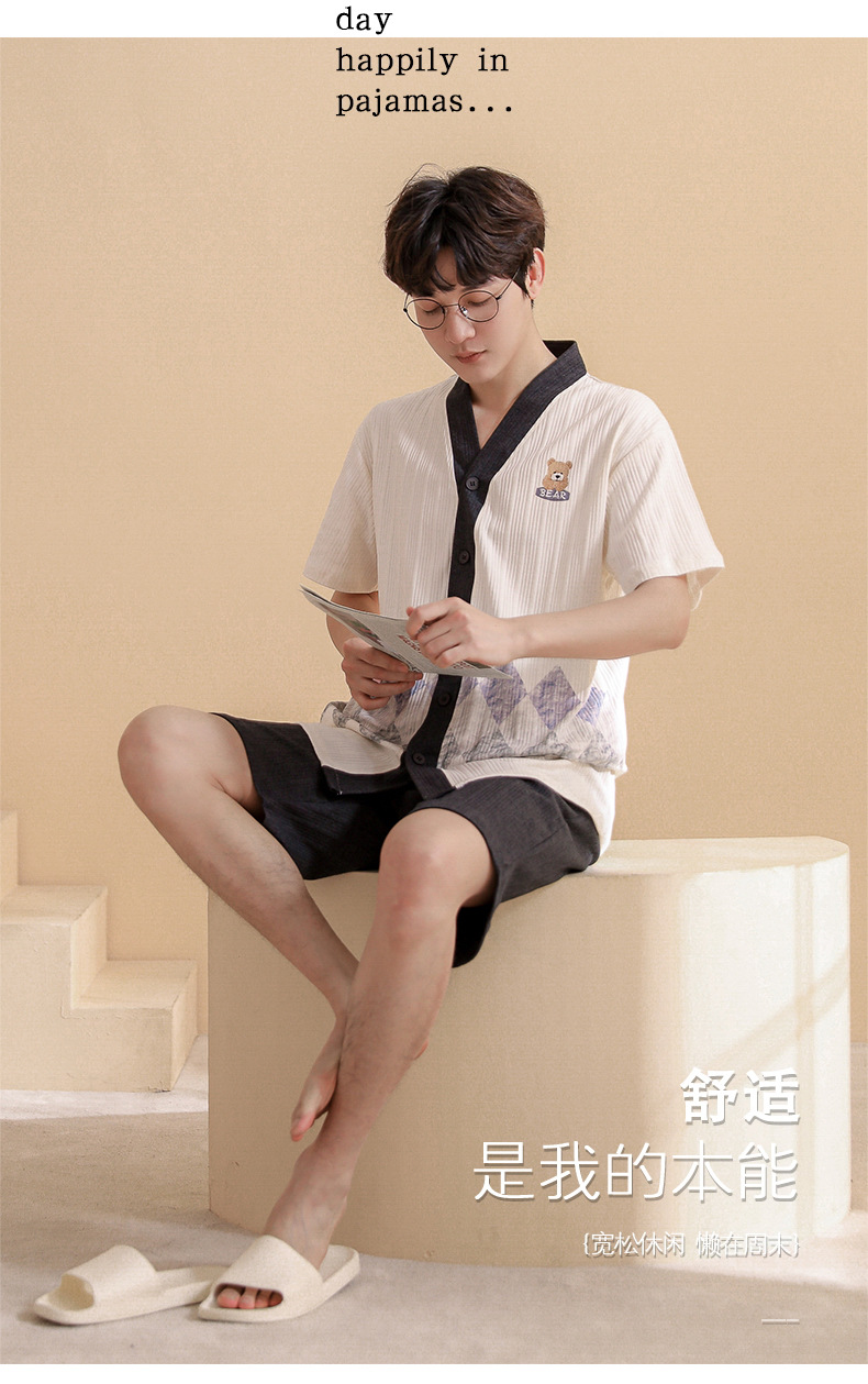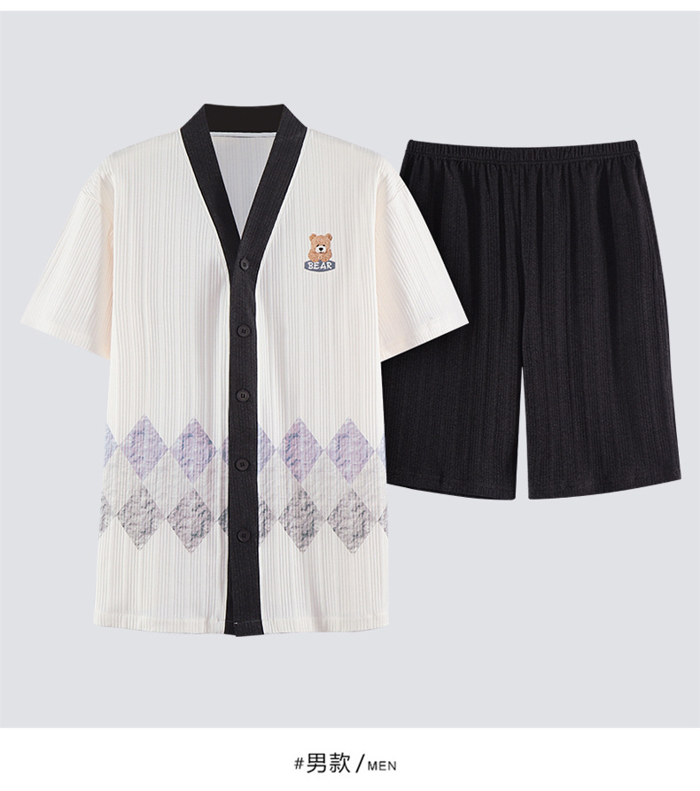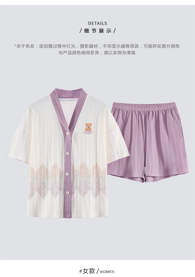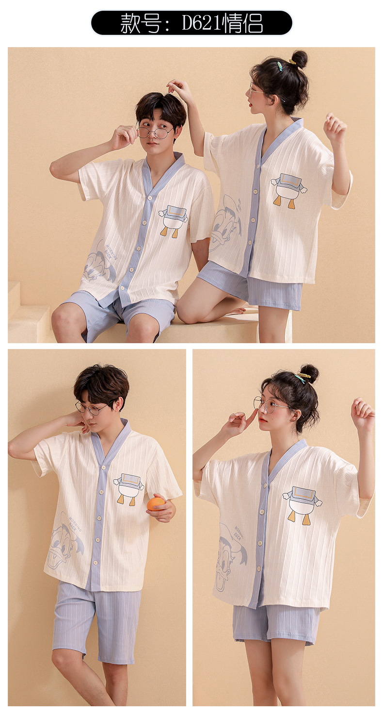 2024 verano pareja pijama de algodón cardigan de manga corta suelta ropa de casa de tamaño grande para hombres y mujeres juegos de camiso
