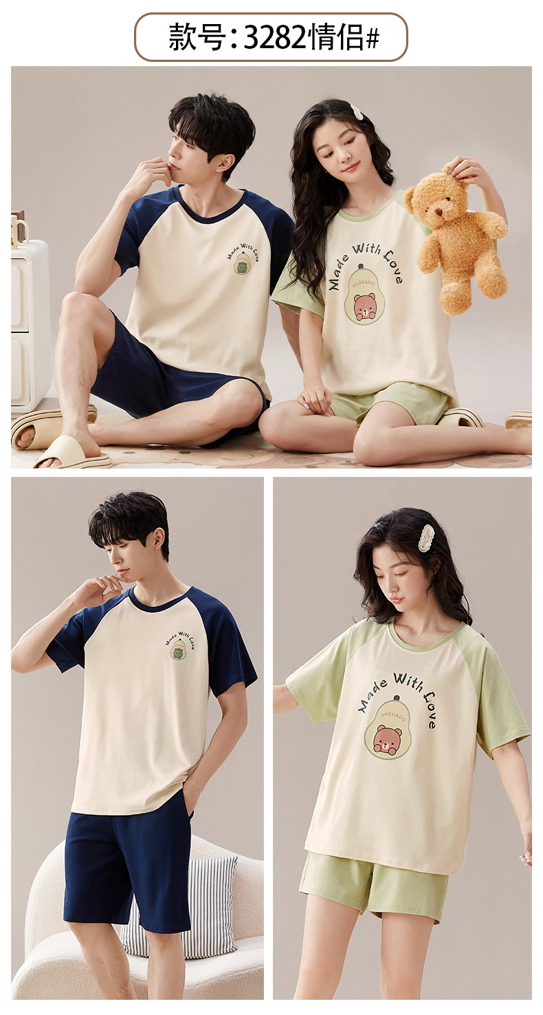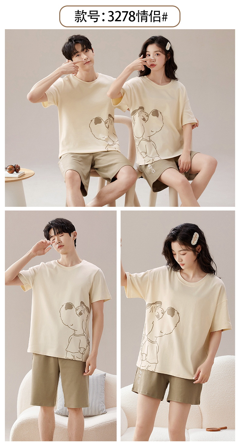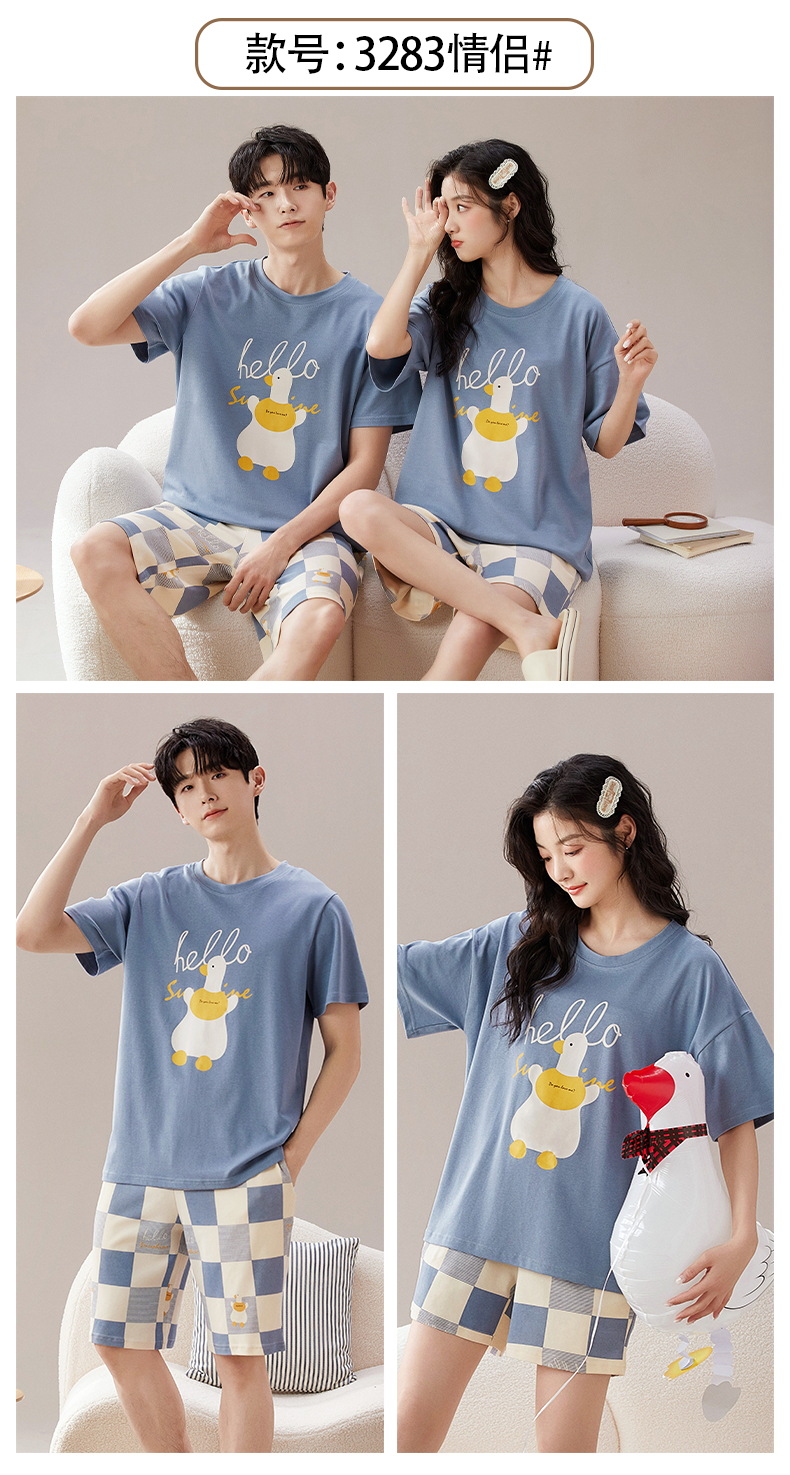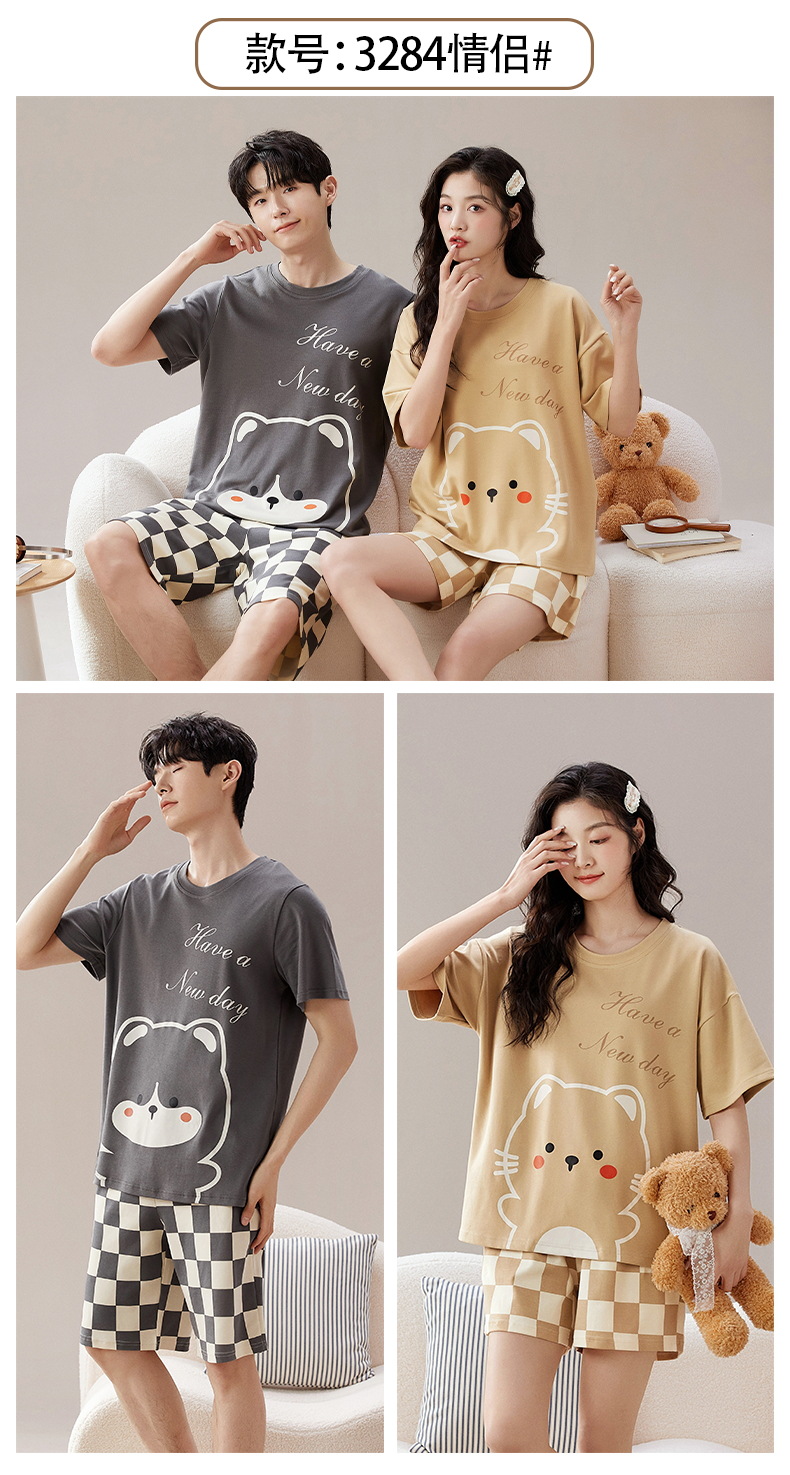 Pajamas de pareja de verano de algodón de verano pantalones cortos de mangas cortas de dibujos animados para hombres nuevos sets de ropa casera para mujeres sin impresión