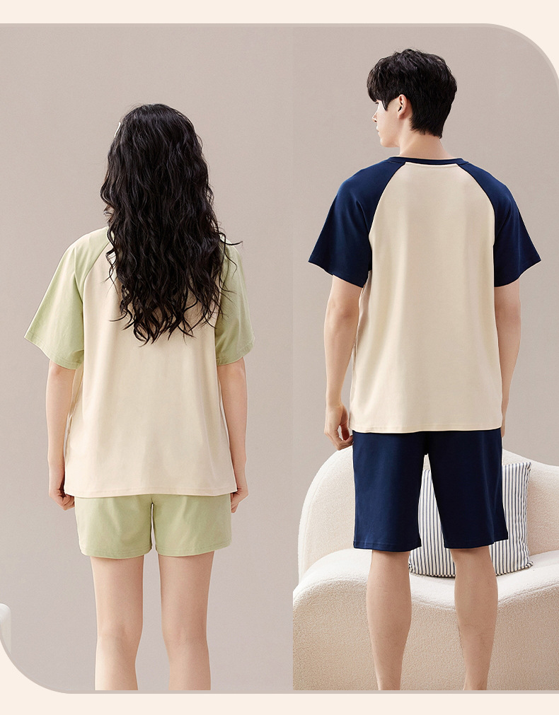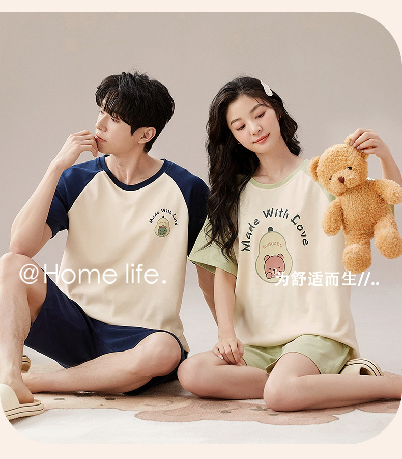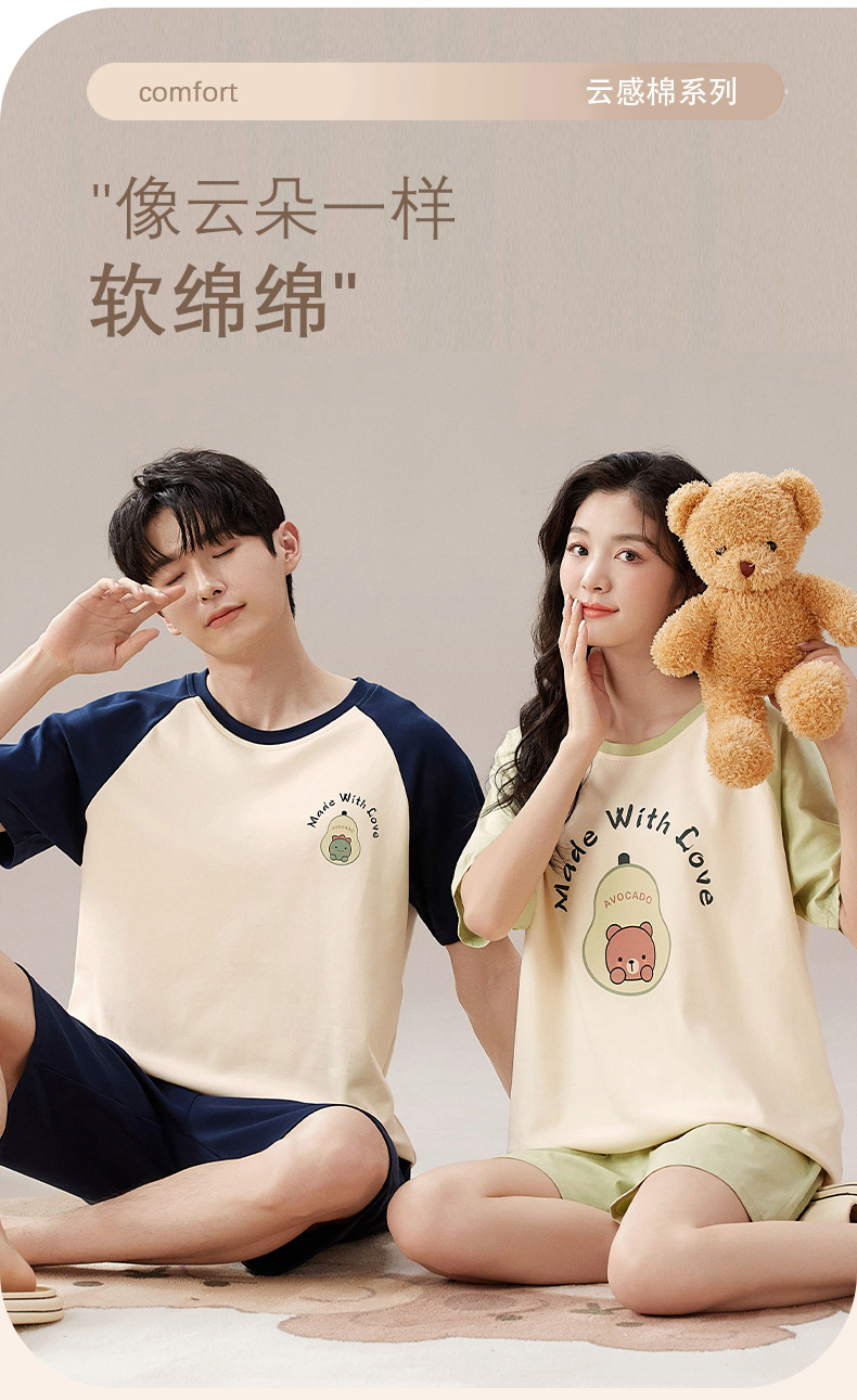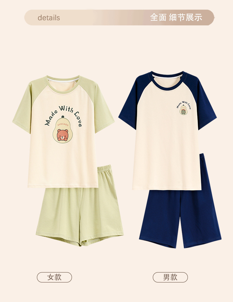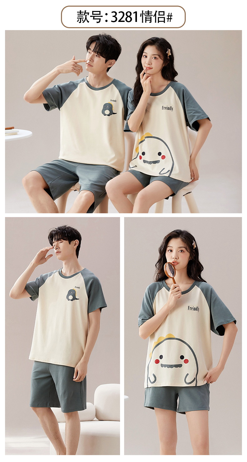 Pajamas de pareja de verano de algodón de verano pantalones cortos de mangas cortas de dibujos animados para hombres nuevos sets de ropa casera para mujeres sin impresión