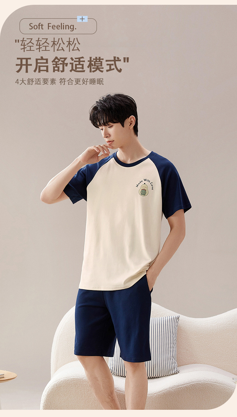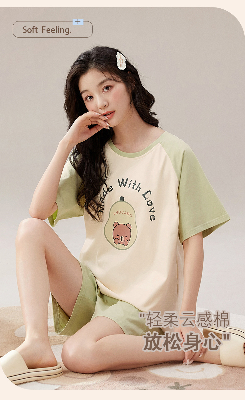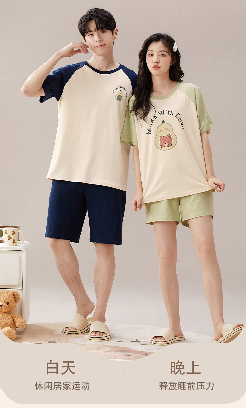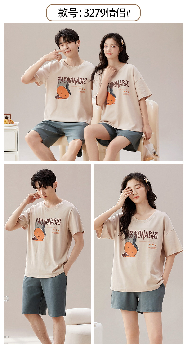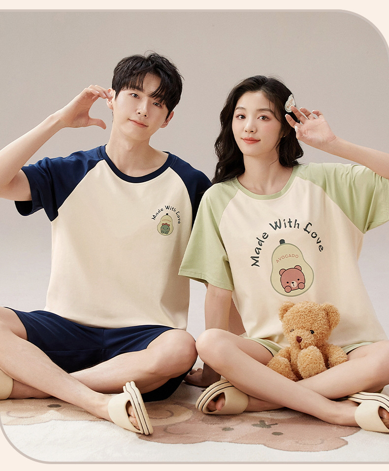 Pajamas de pareja de verano de algodón de verano pantalones cortos de mangas cortas de dibujos animados para hombres nuevos sets de ropa casera para mujeres sin impresión