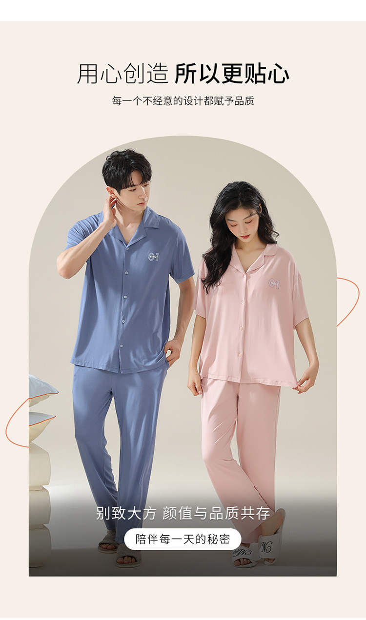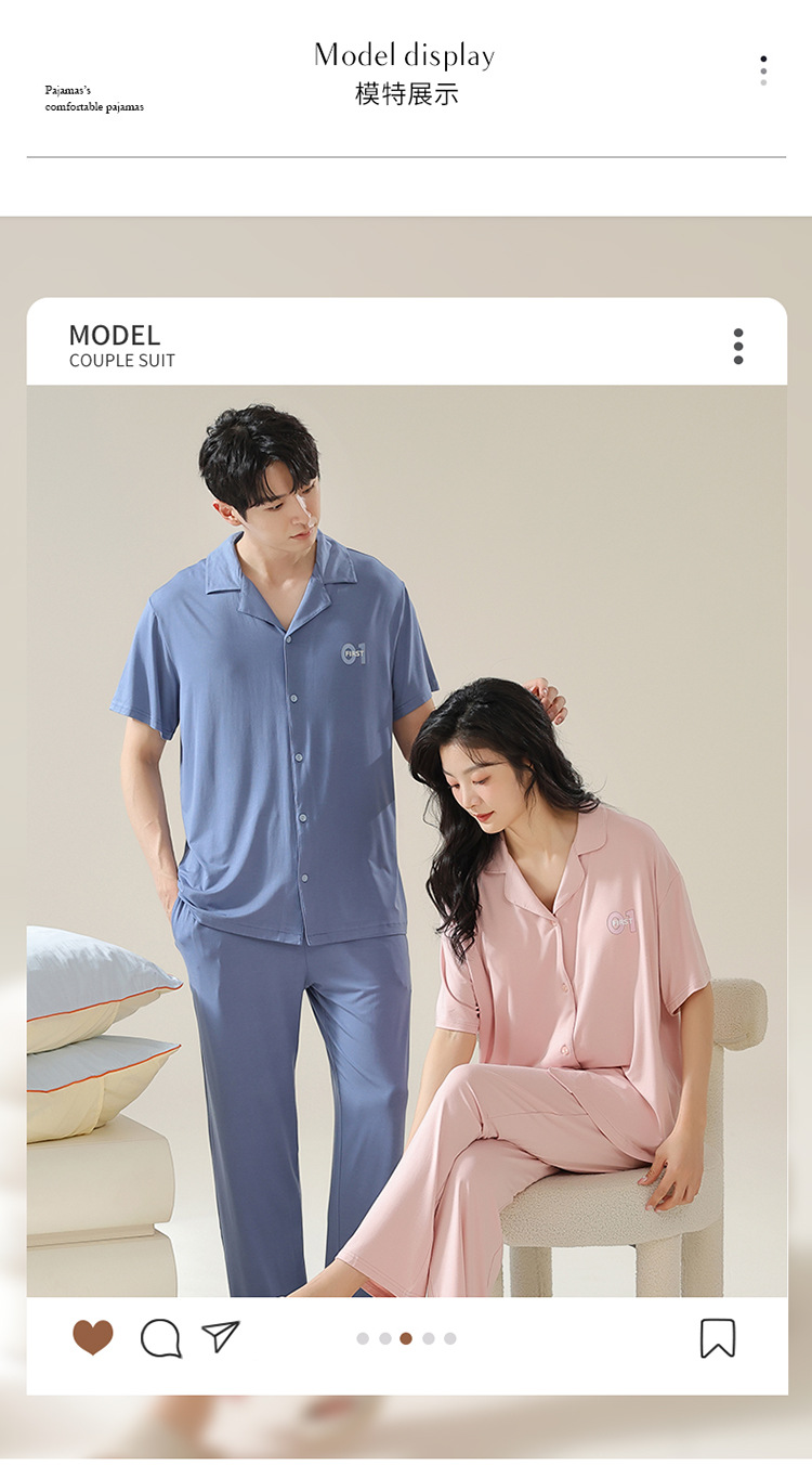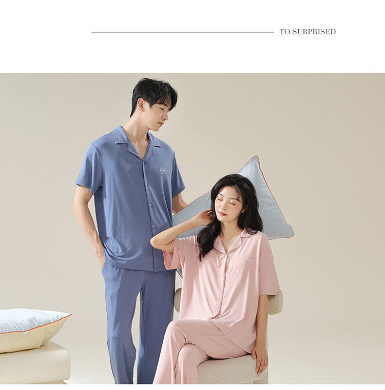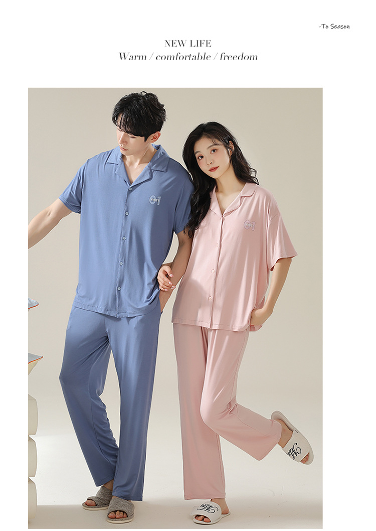 Pajamas de pareja moda para mujeres primavera y verano, pantalones de mangas cortas, ropa delgada para hombres y mujeres, cardigan, set grande