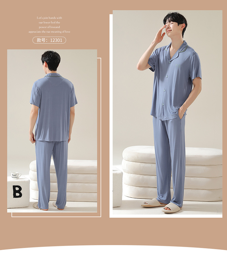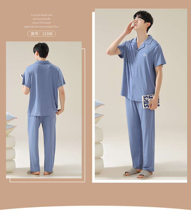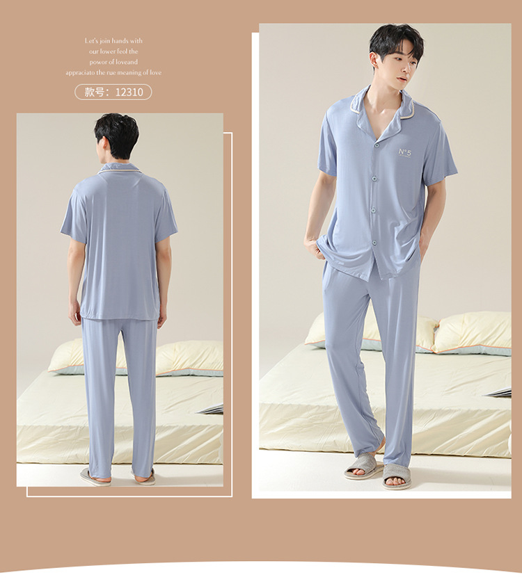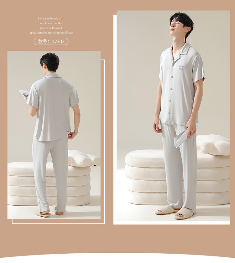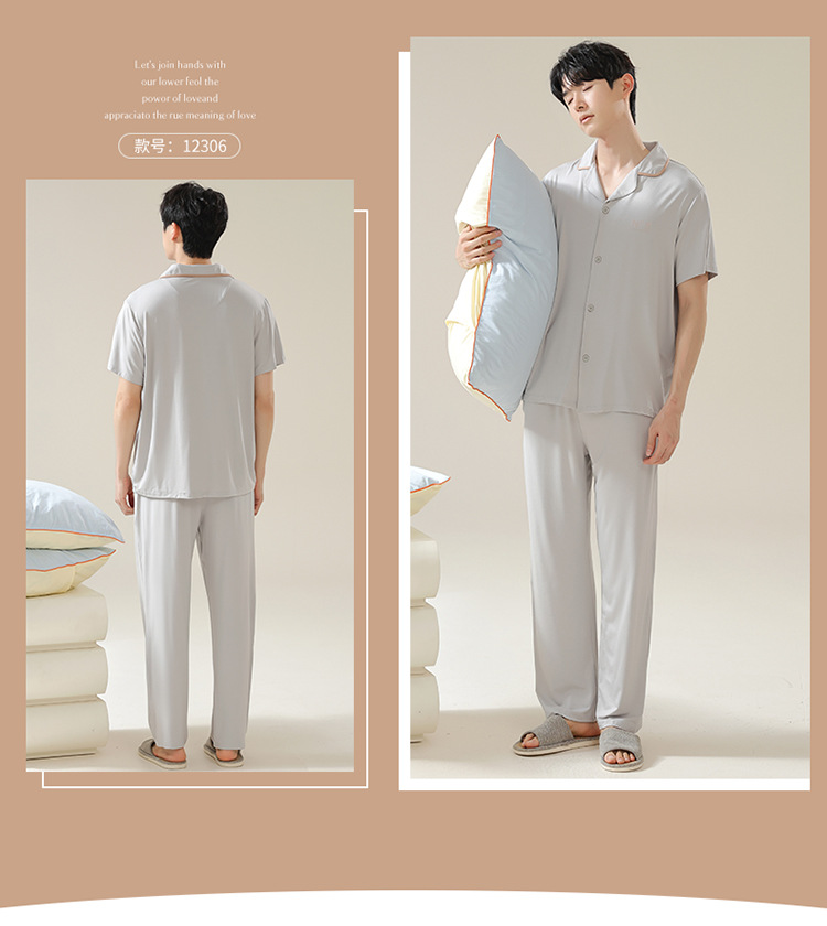 Pajamas de pareja moda para mujeres primavera y verano, pantalones de mangas cortas, ropa delgada para hombres y mujeres, cardigan, set grande