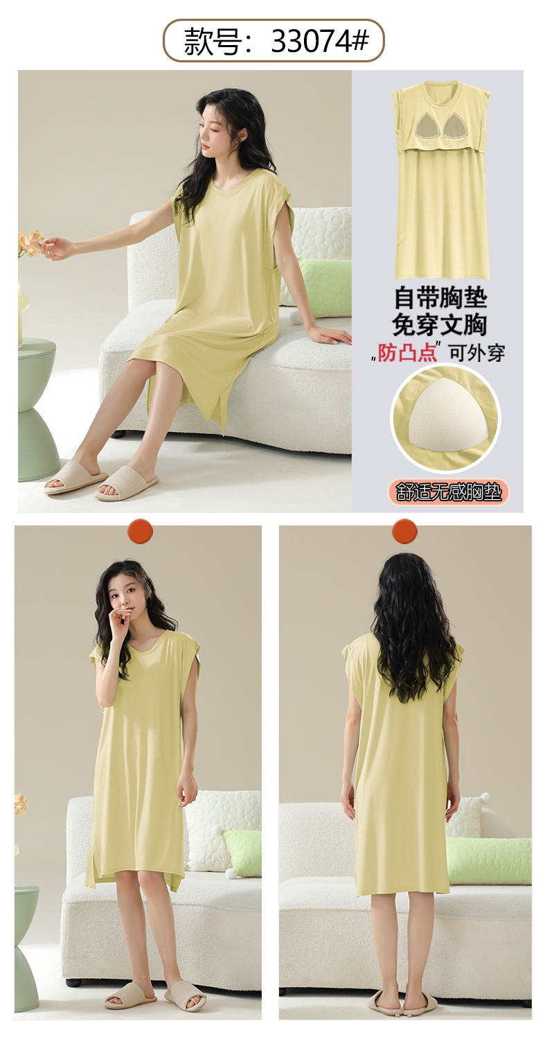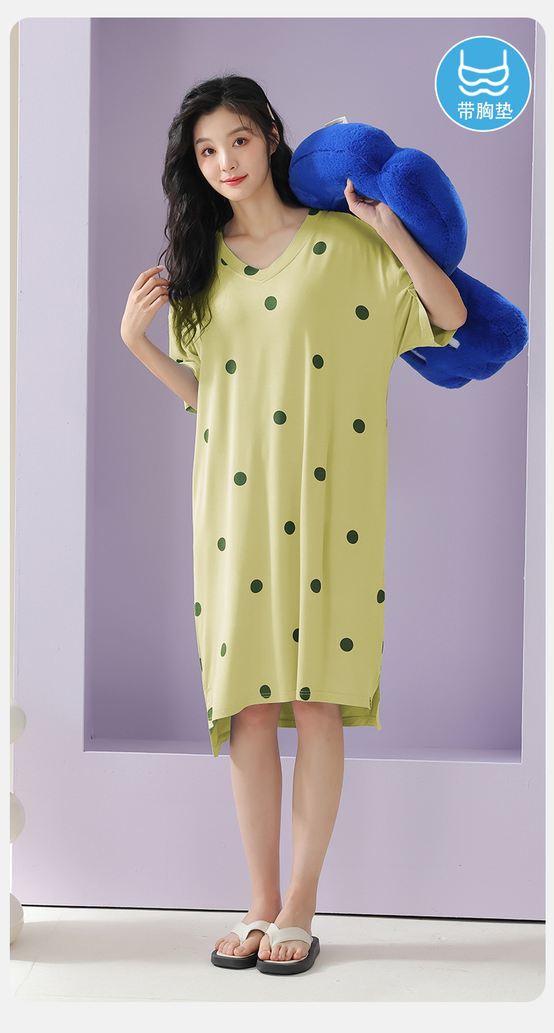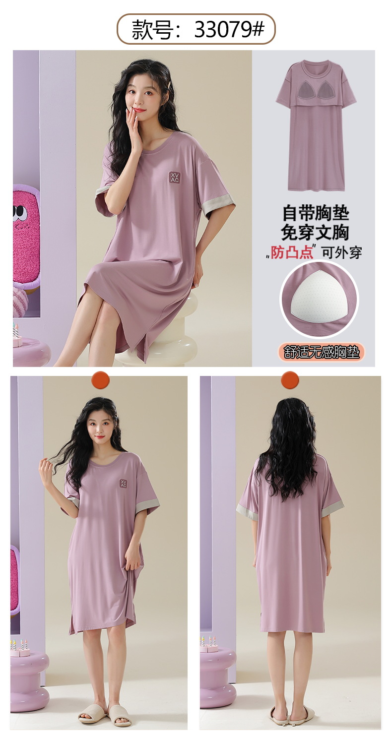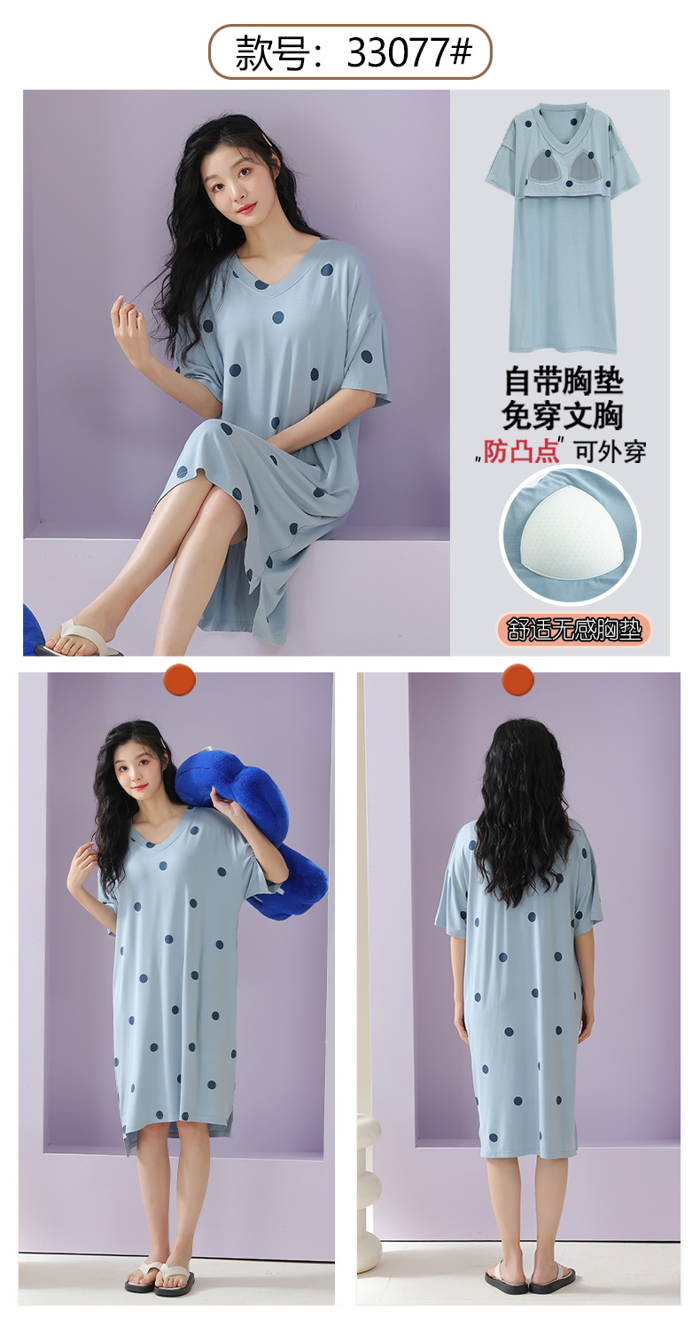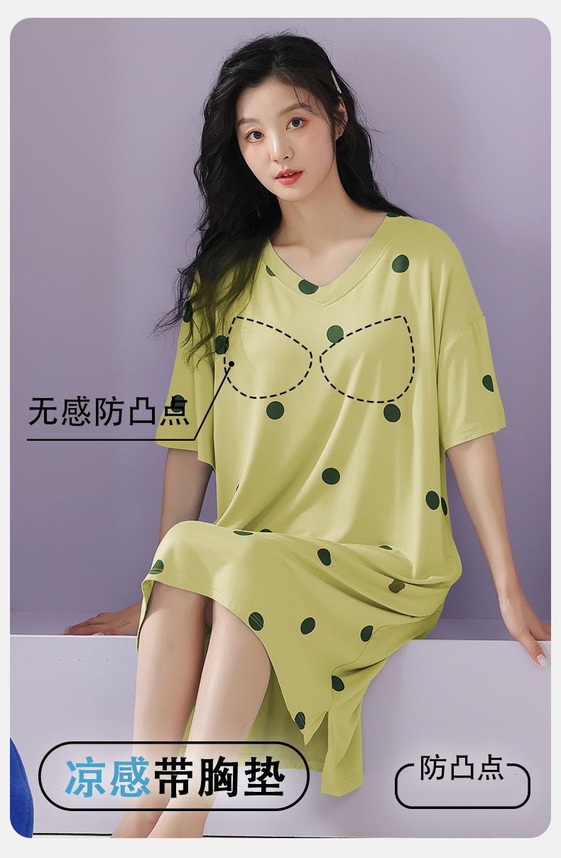 Camisón de mujer modal verano con almohadilla en el pecho media manga de media longitud estilo coreano fresco camisón de ropa para el hogar más tamaño