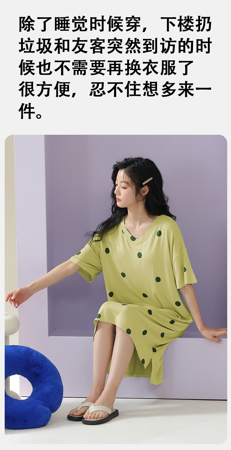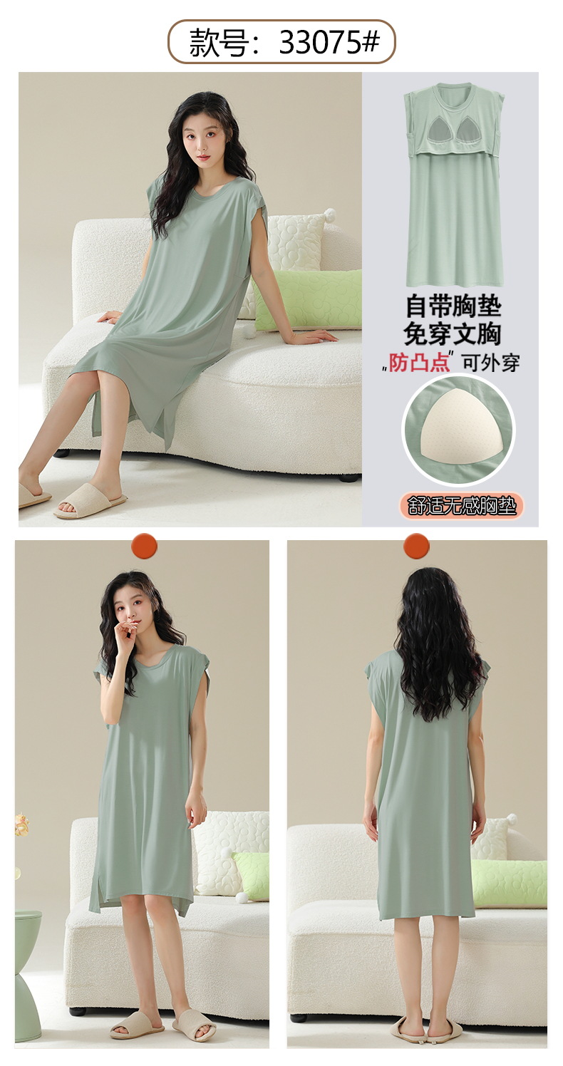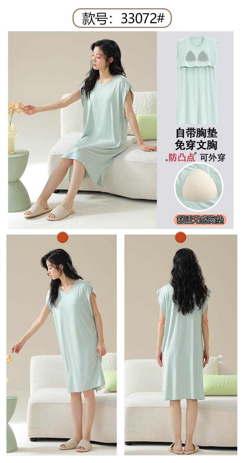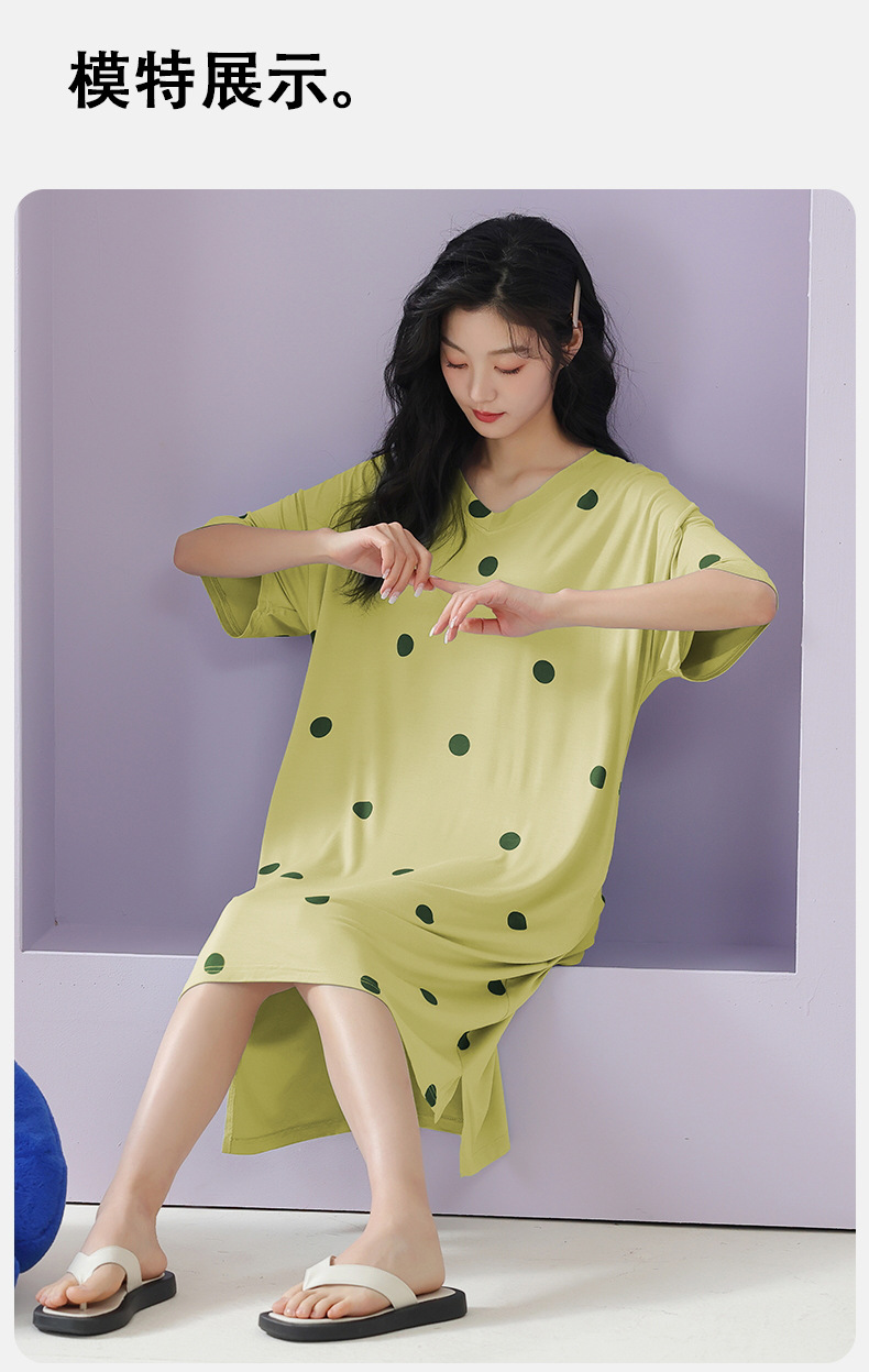 Camisón de mujer modal verano con almohadilla en el pecho media manga de media longitud estilo coreano fresco camisón de ropa para el hogar más tamaño