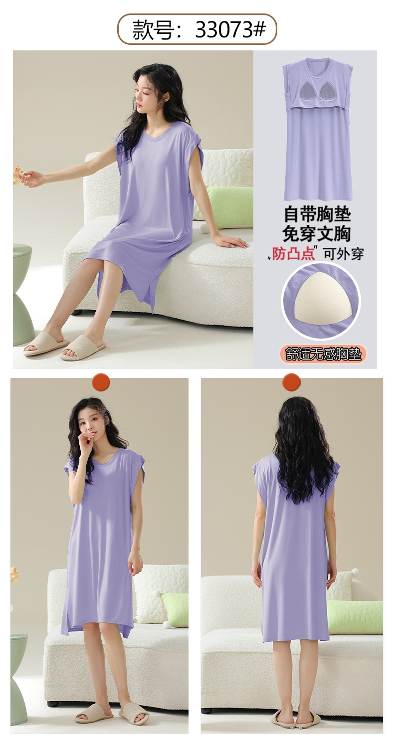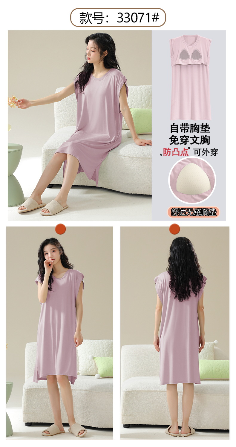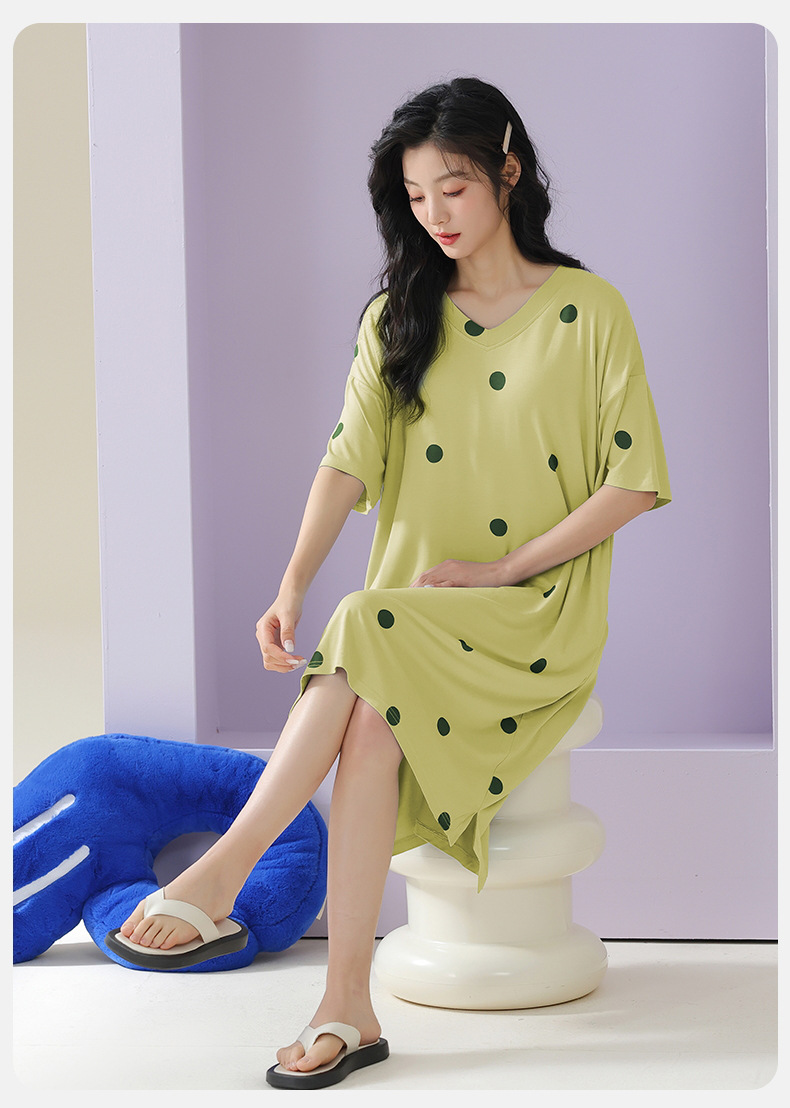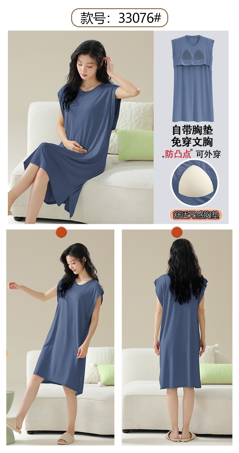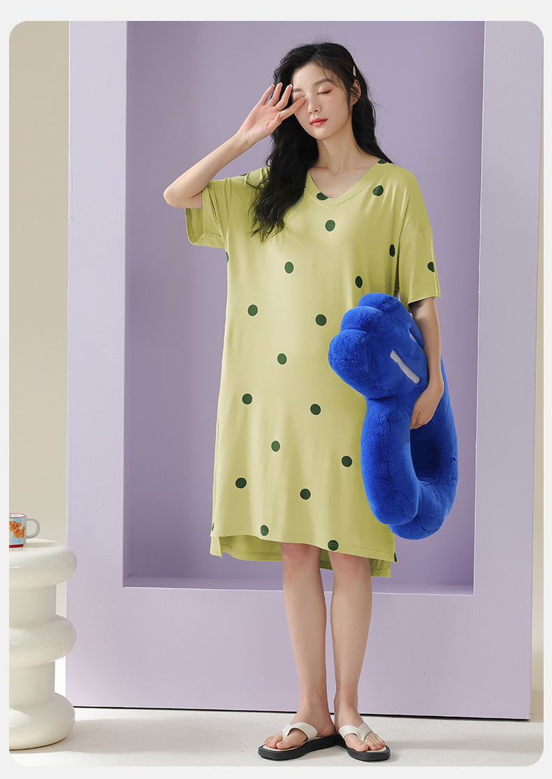 Camisón de mujer modal verano con almohadilla en el pecho media manga de media longitud estilo coreano fresco camisón de ropa para el hogar más tamaño