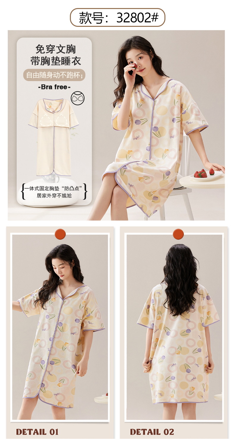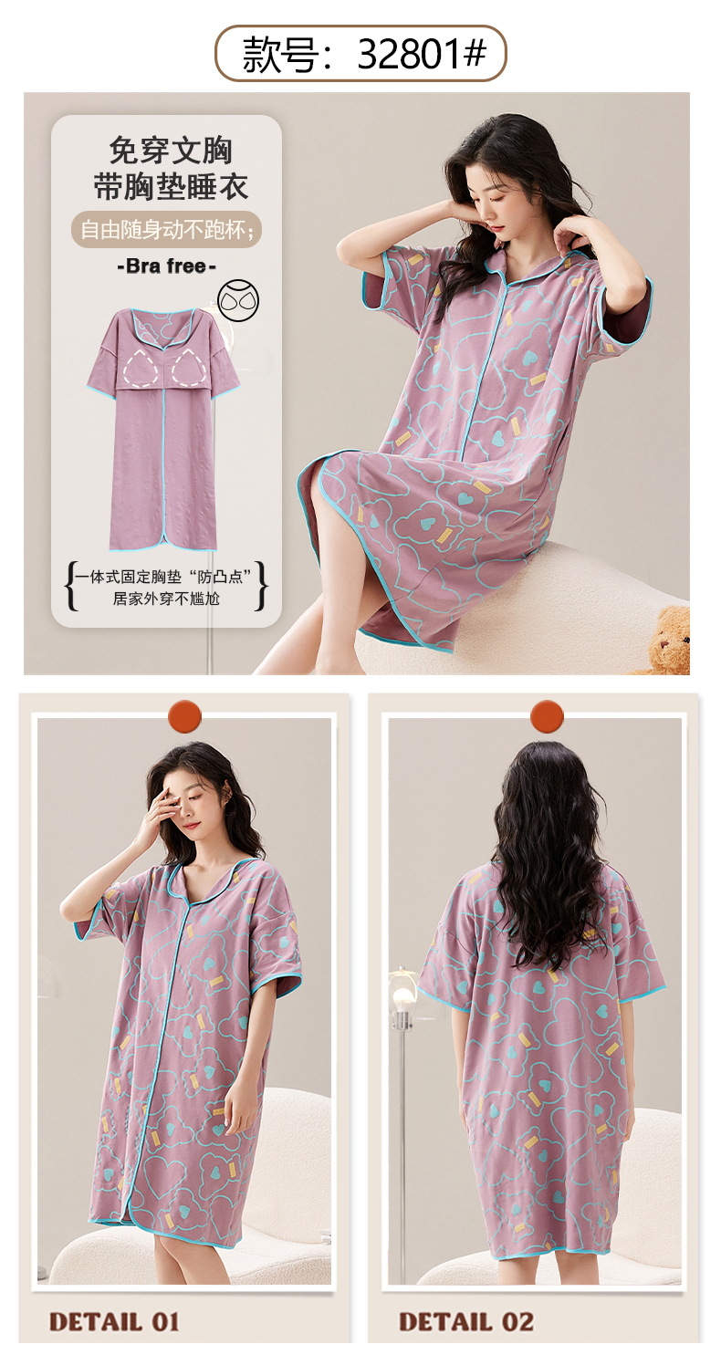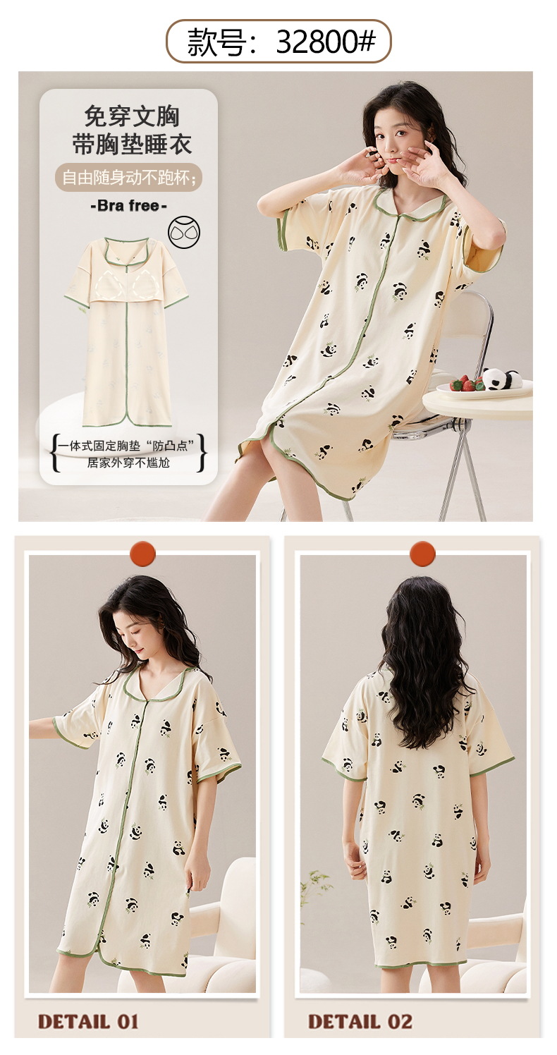 Camisón de verano con almohadilla en el pecho de las mujeres de manga corta suelta pijamas de las mujeres ocasionales prendas de vestir exteriores de algodón de dibujos animados de las mujeres homewear