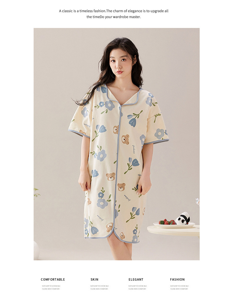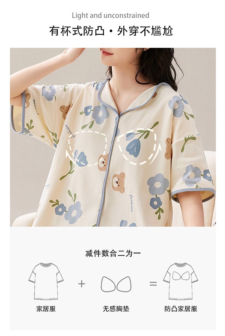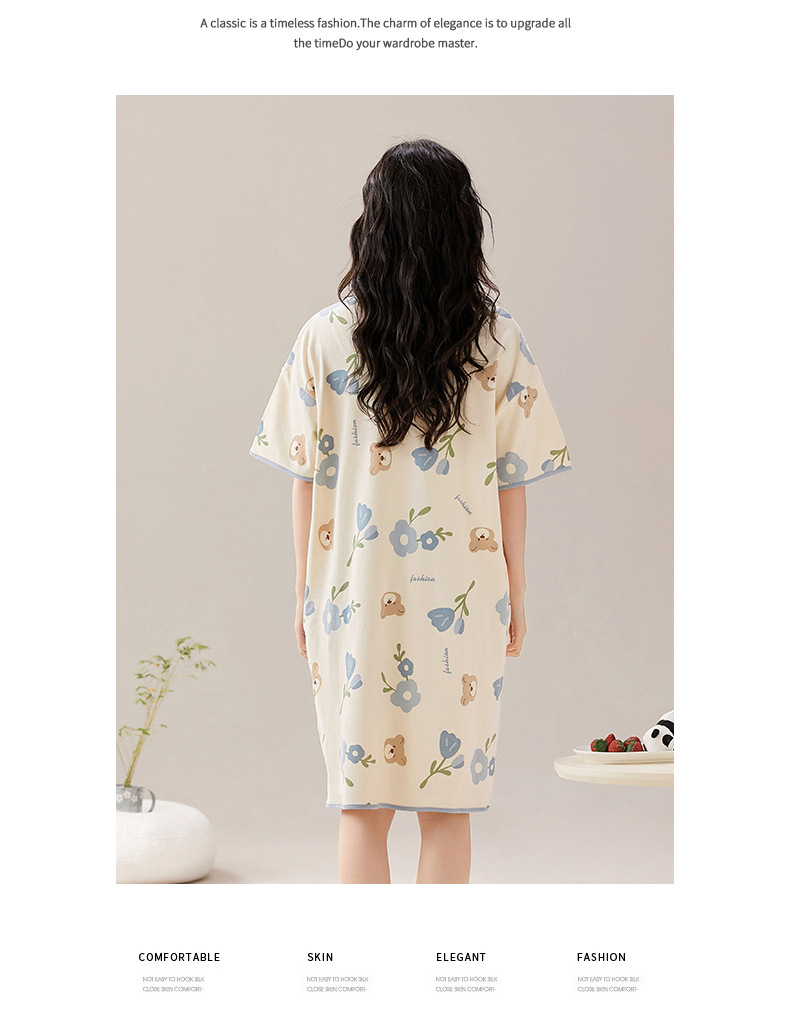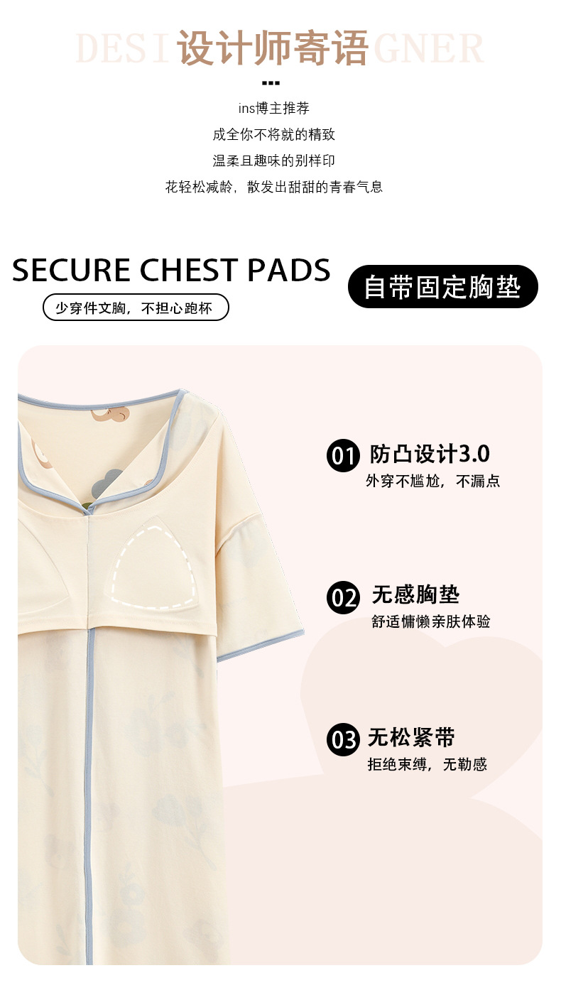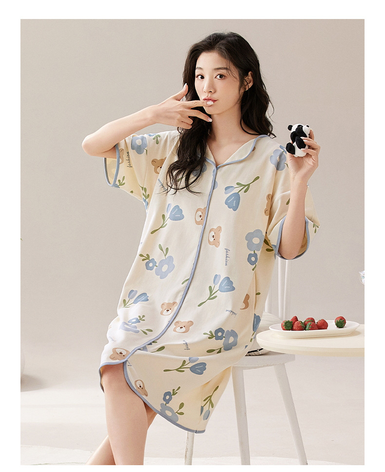 Camisón de verano con almohadilla en el pecho de las mujeres de manga corta suelta pijamas de las mujeres ocasionales prendas de vestir exteriores de algodón de dibujos animados de las mujeres homewear