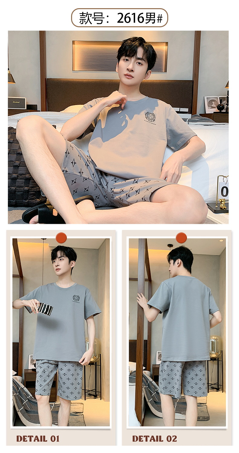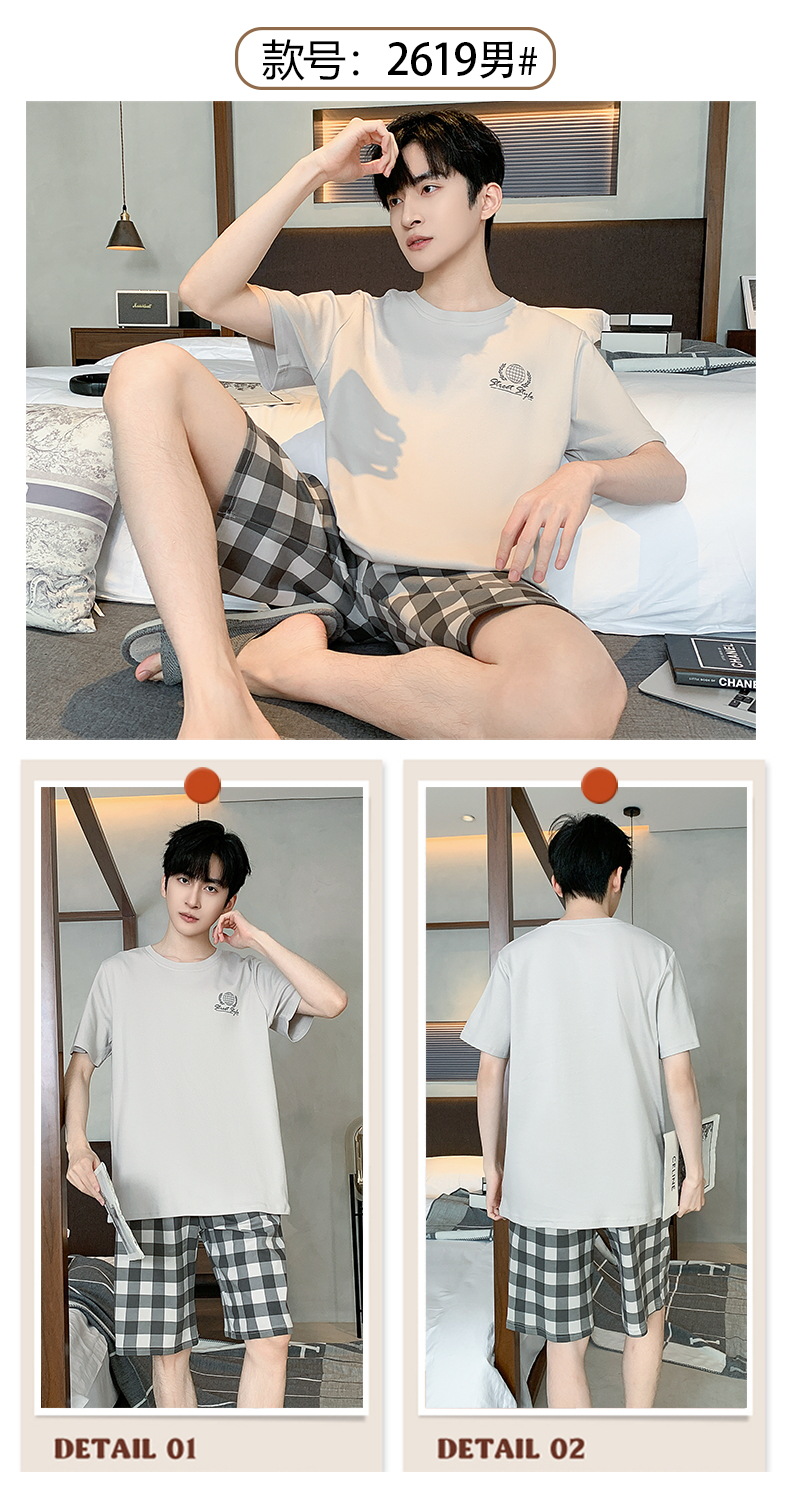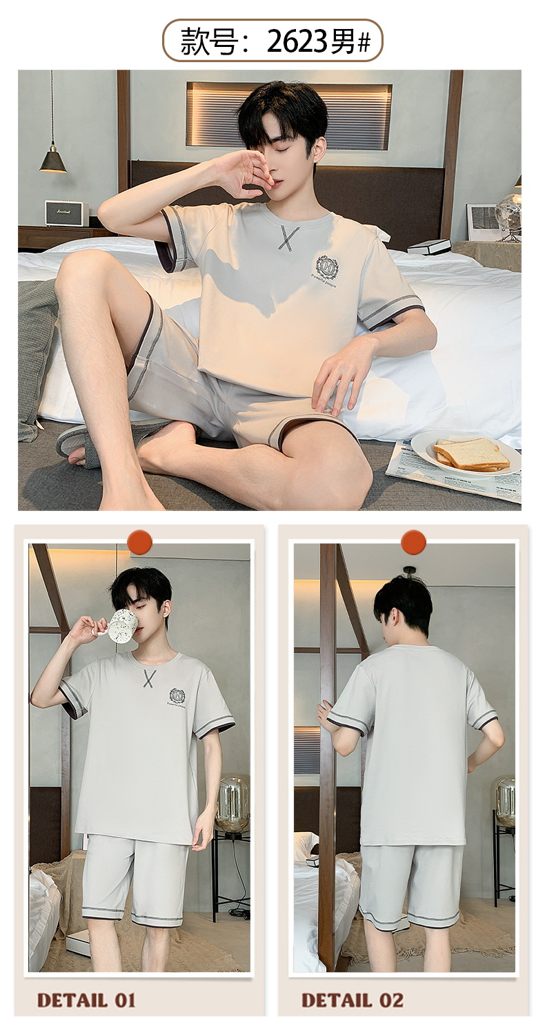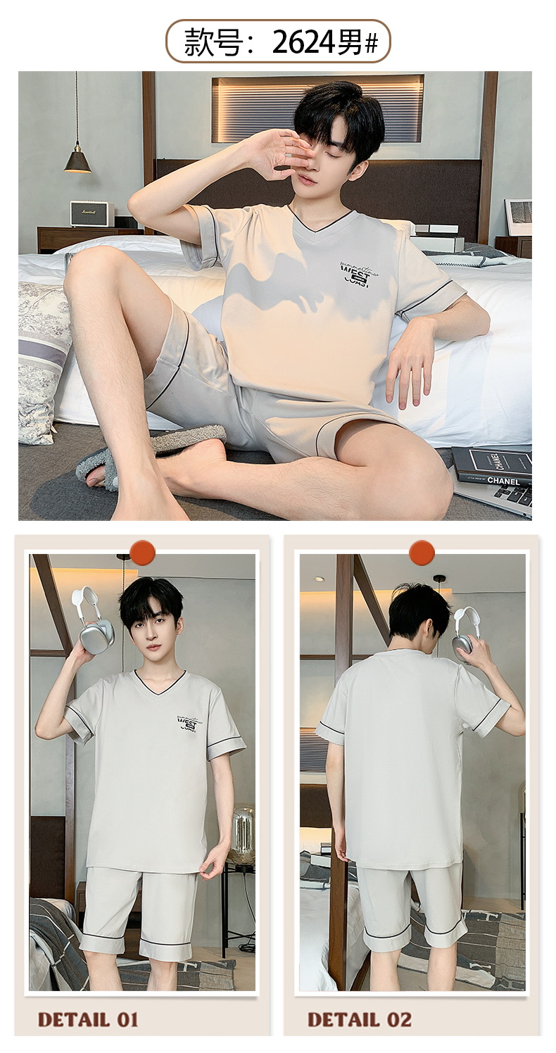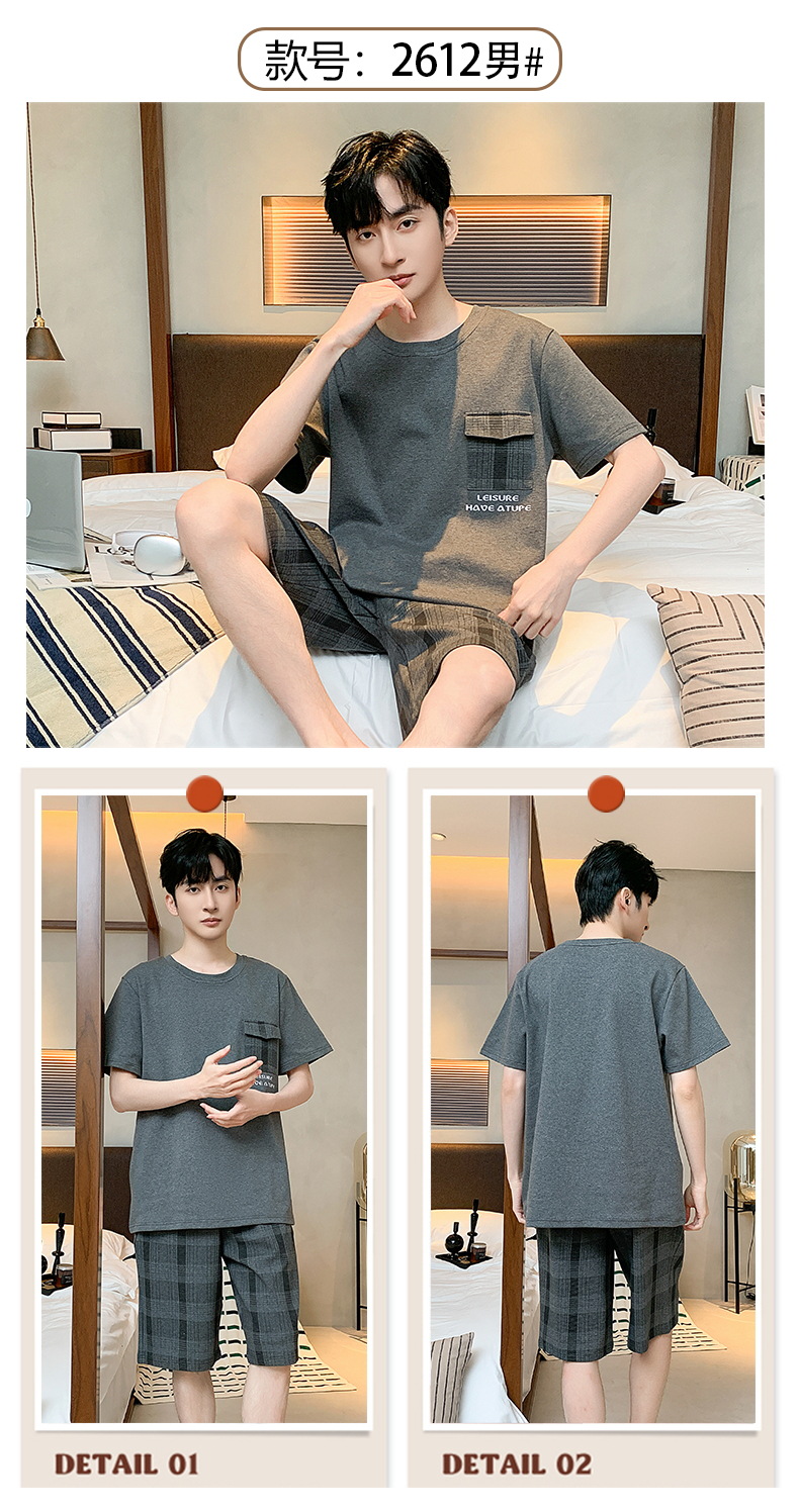 2024 nuevos pijamas de los hombres de verano de manga corta de algodón coreano casual Delgado desgaste exterior cómodo homewear traje
