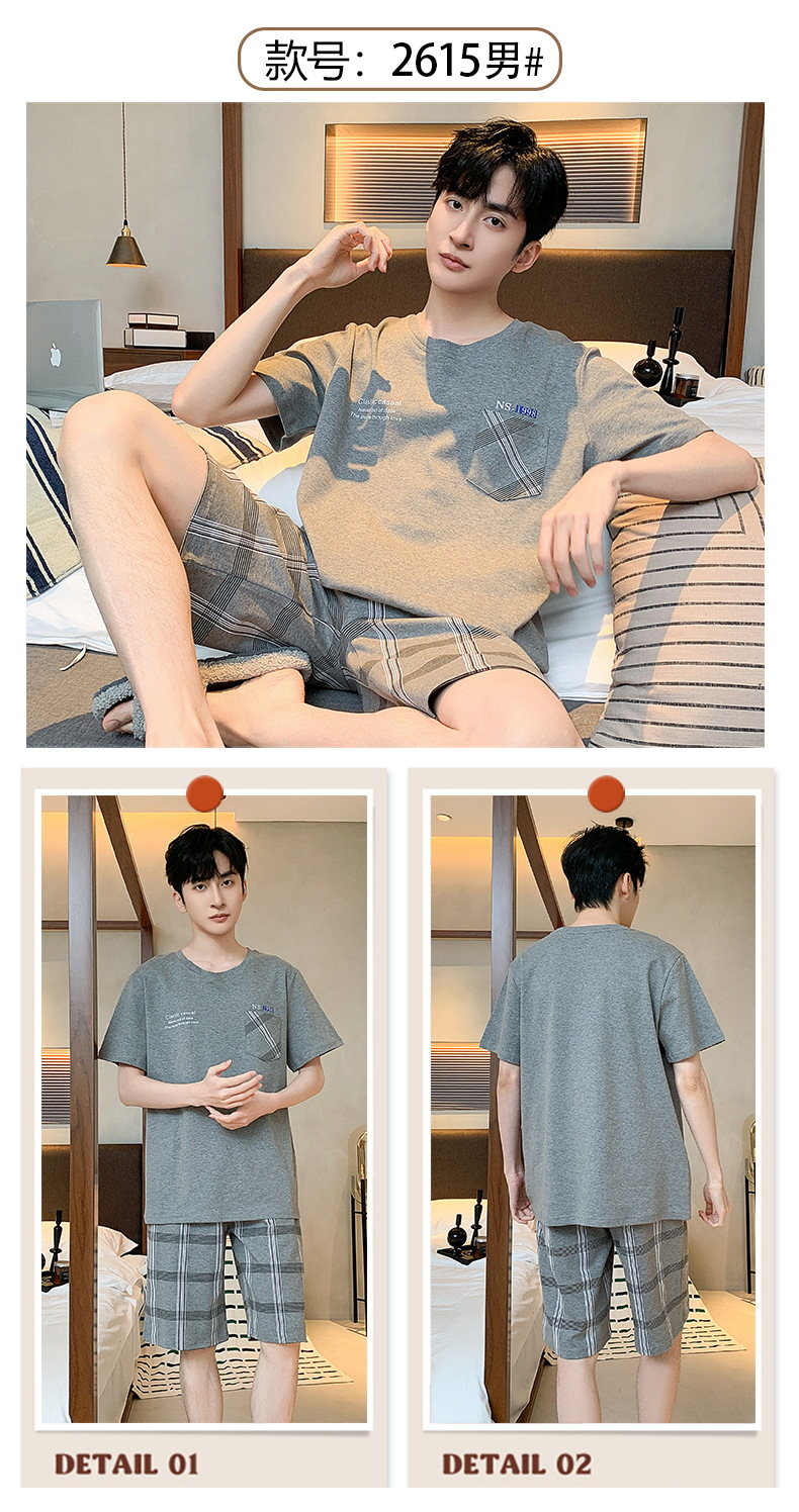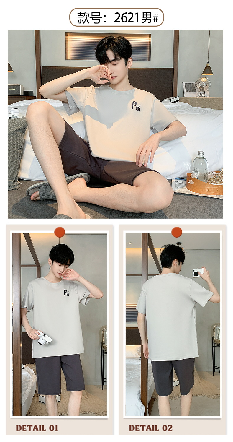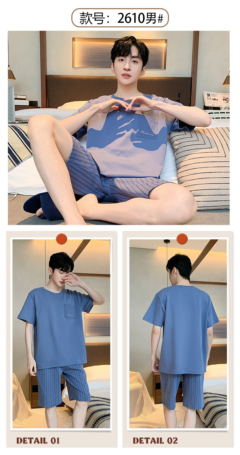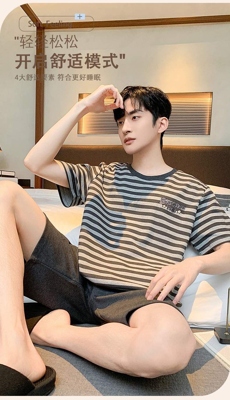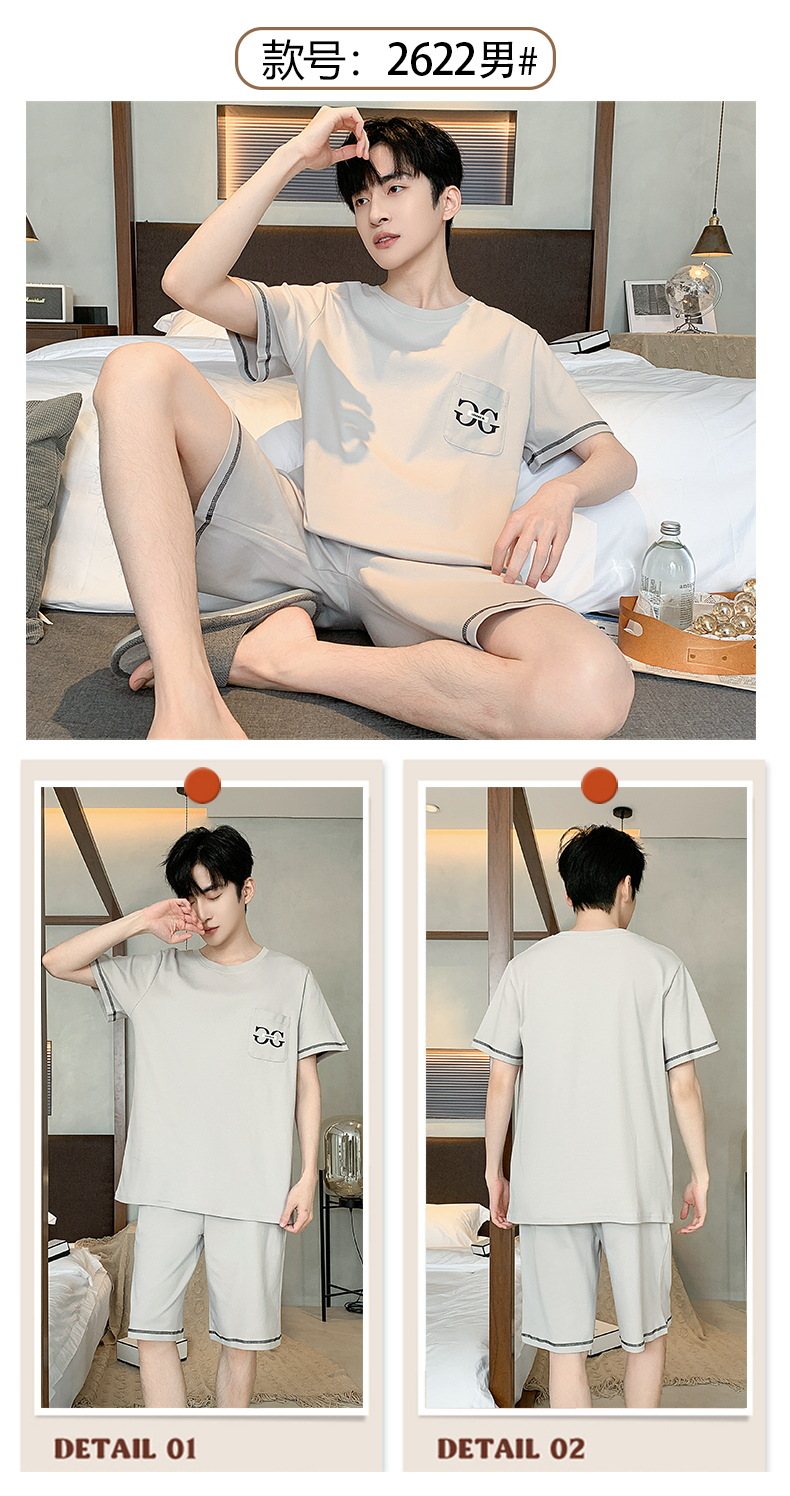 2024 nuevos pijamas de los hombres de verano de manga corta de algodón coreano casual Delgado desgaste exterior cómodo homewear traje