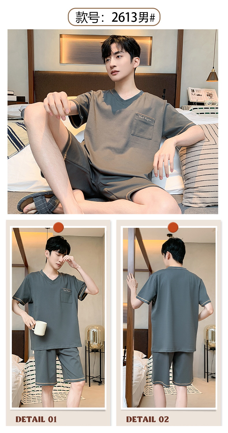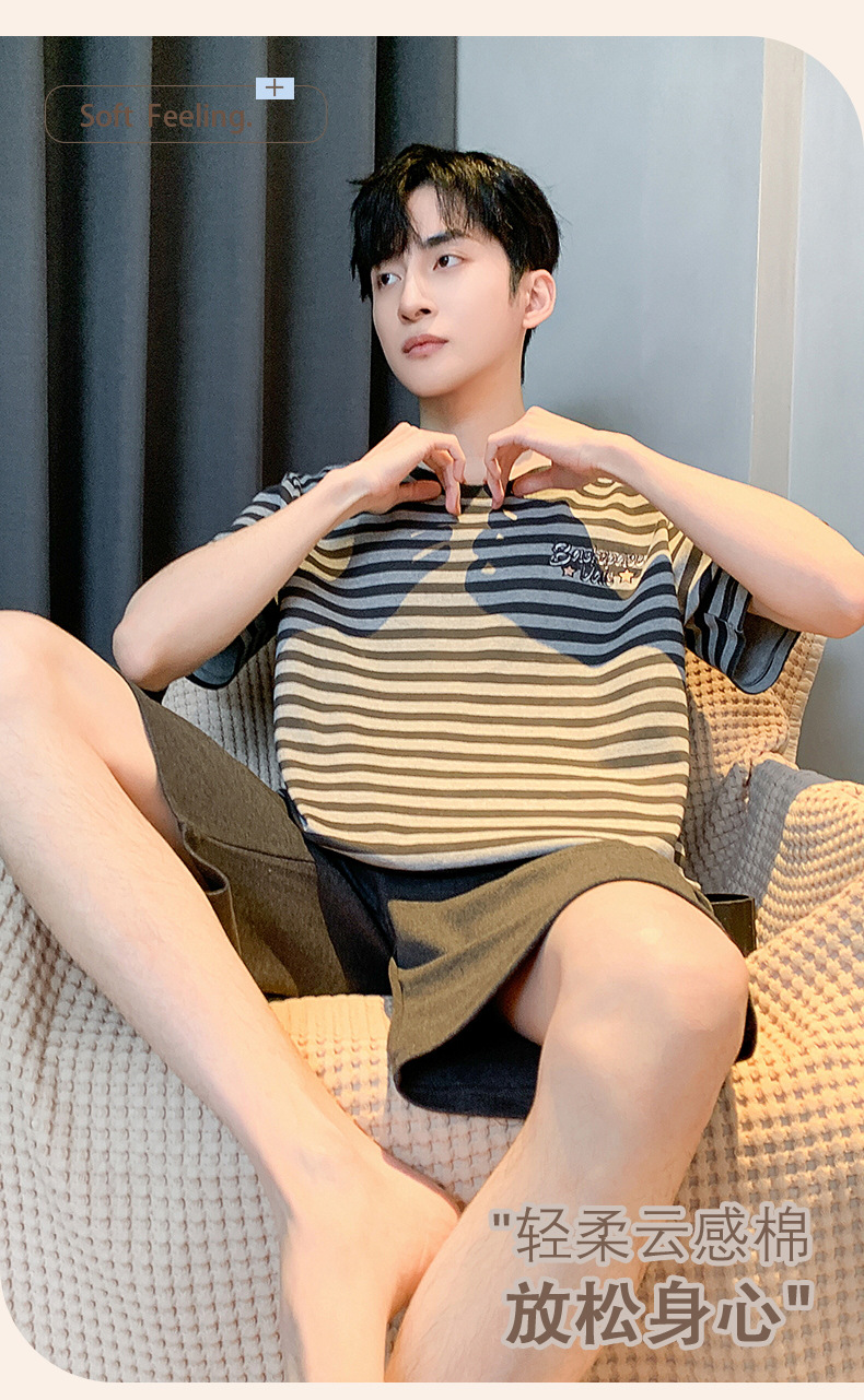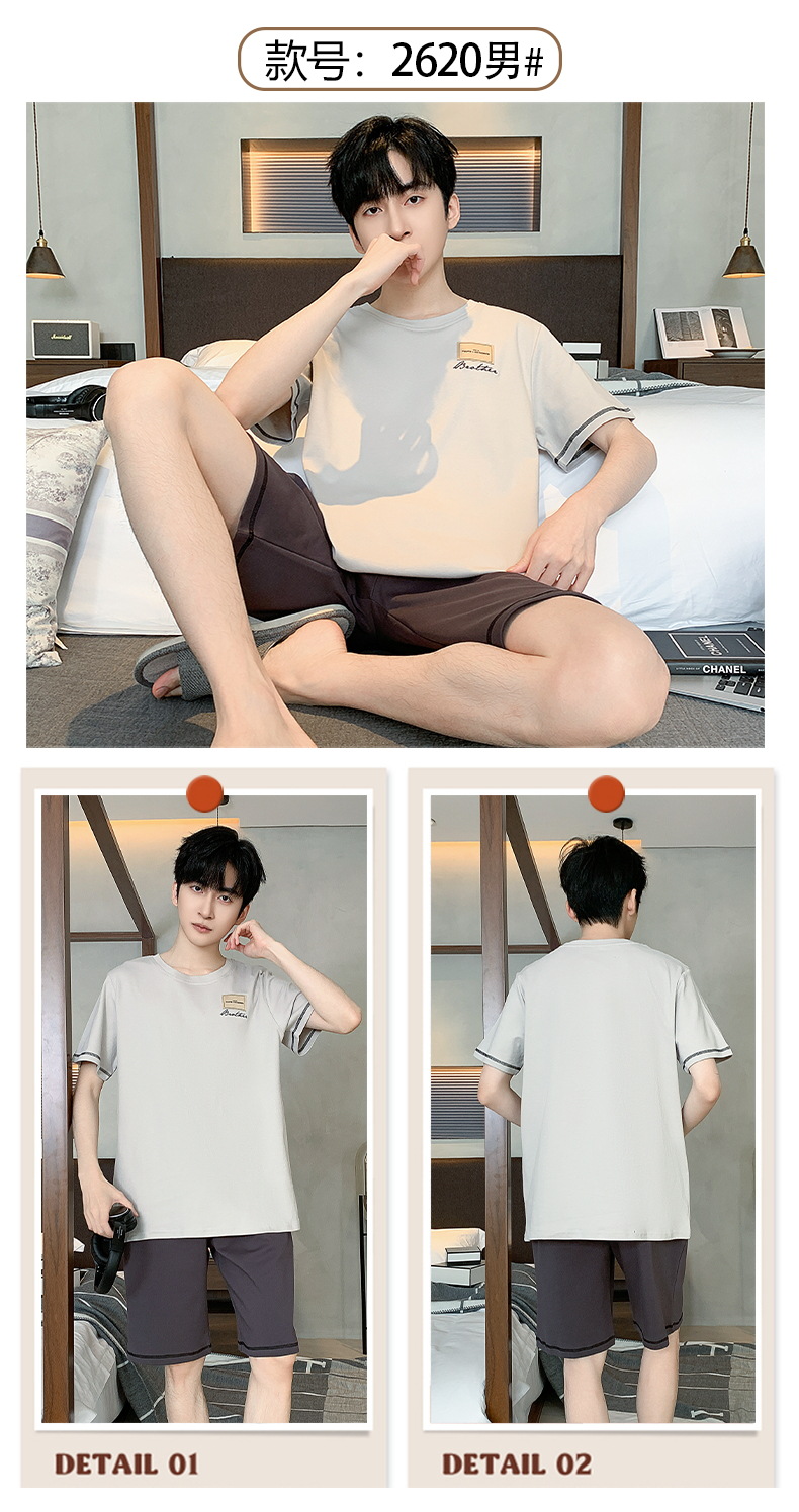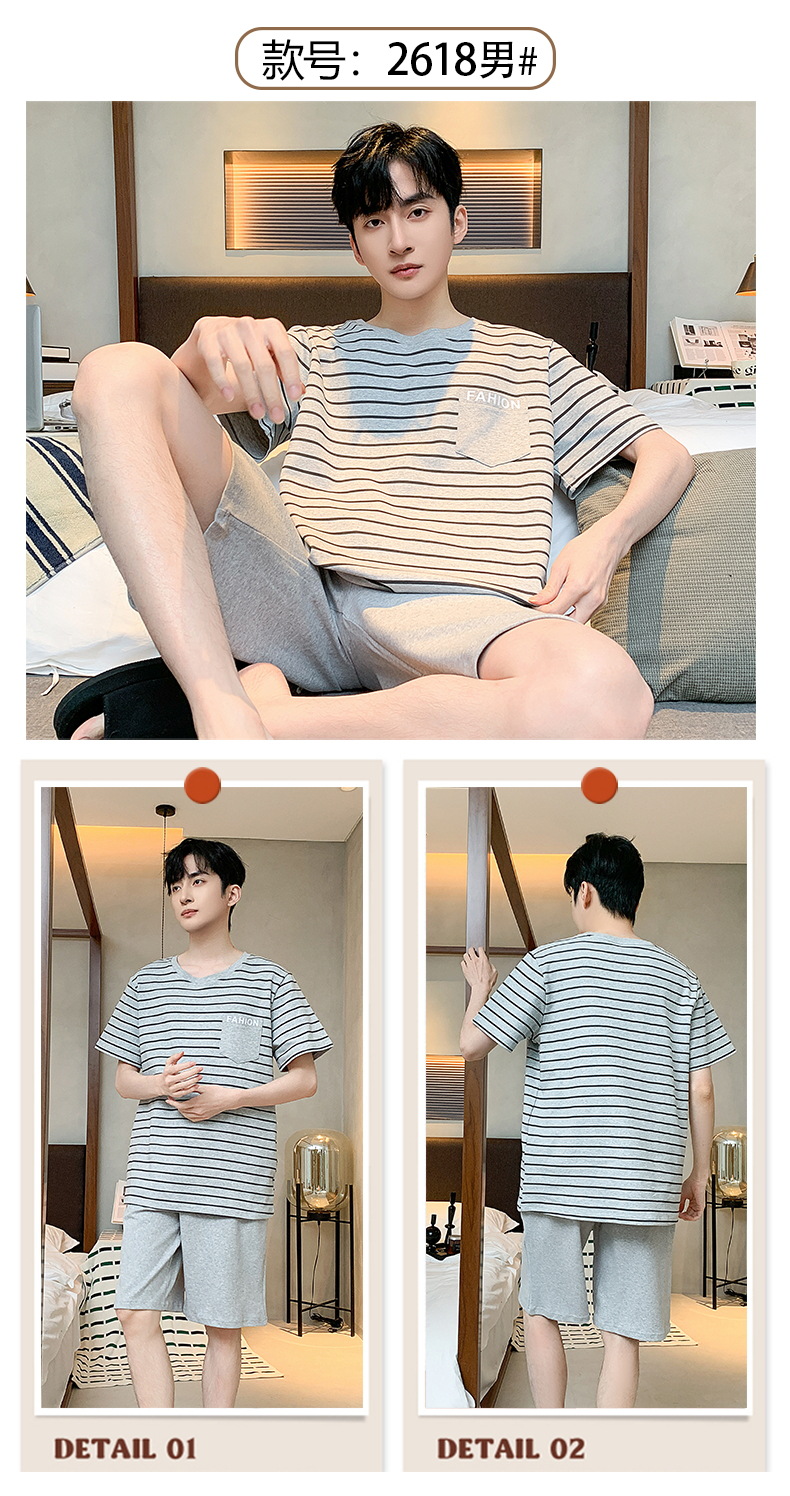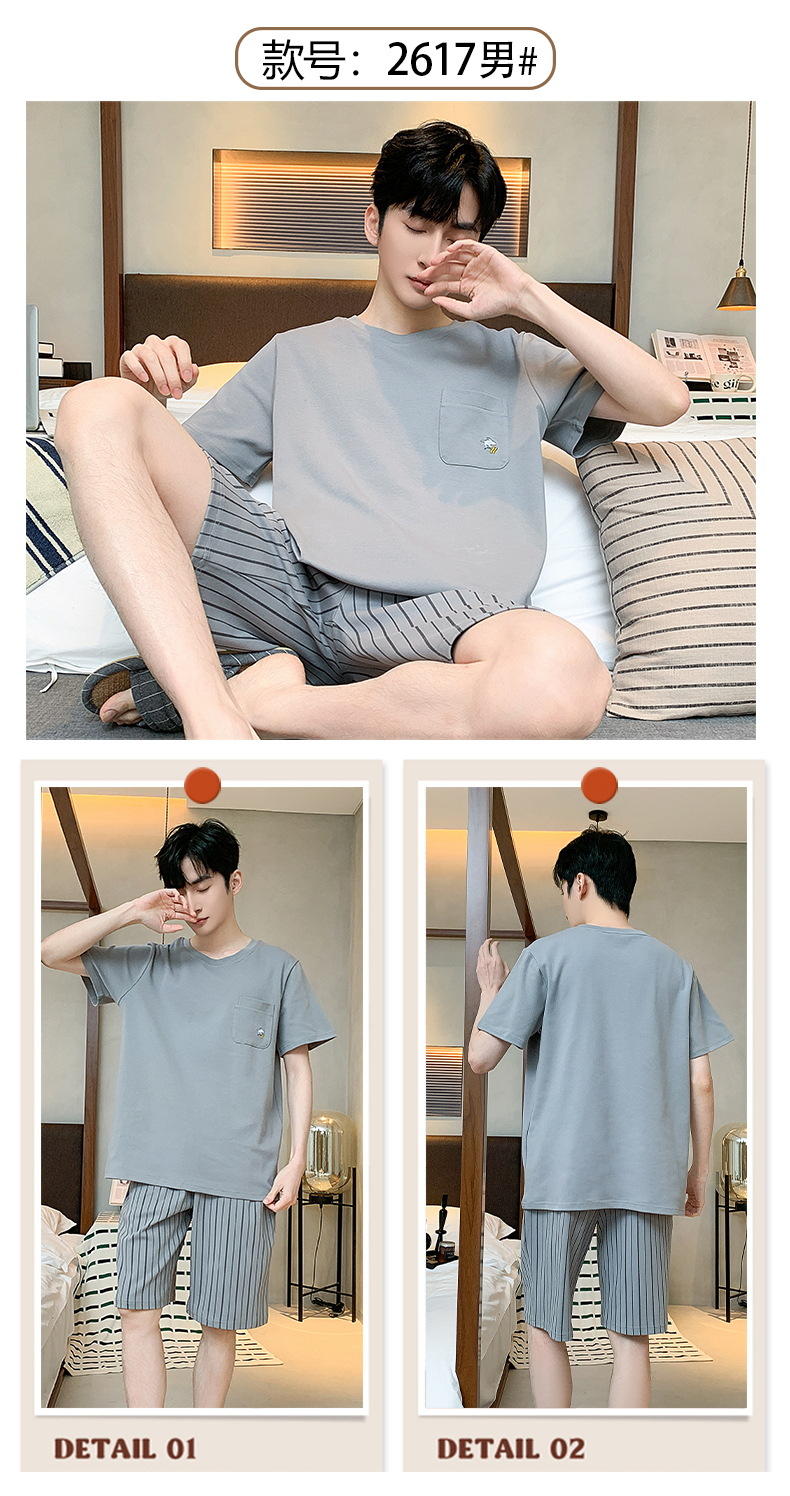 2024 nuevos pijamas de los hombres de verano de manga corta de algodón coreano casual Delgado desgaste exterior cómodo homewear traje