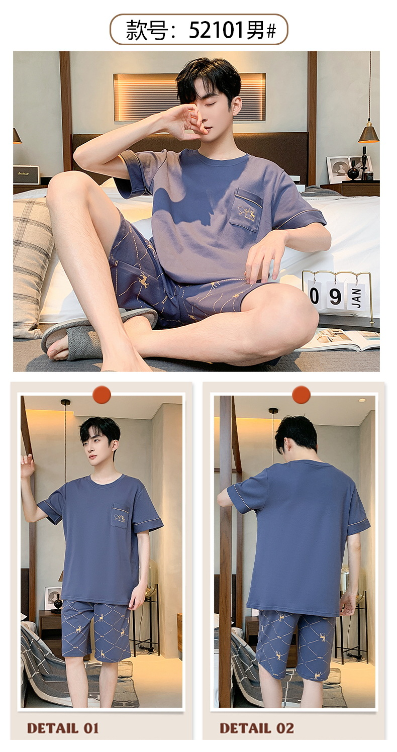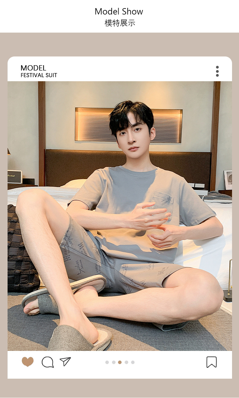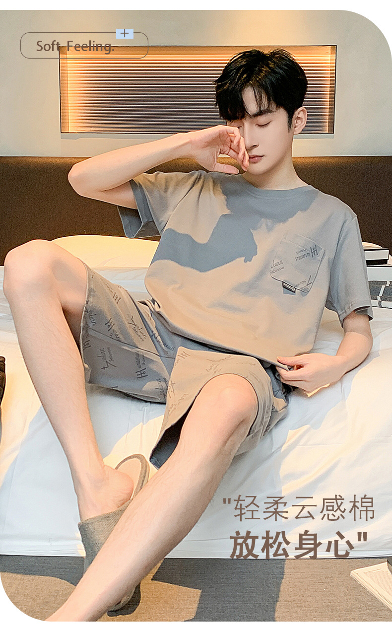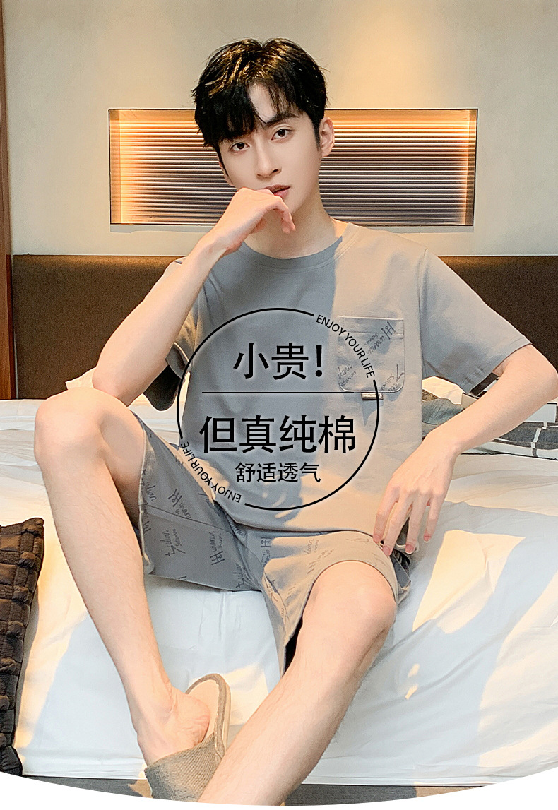 Pijamas de algodón de los hombres de manga corta de verano lindo de dibujos animados hombres jóvenes sueltos 2024 Nuevo traje de homewear de talla grande