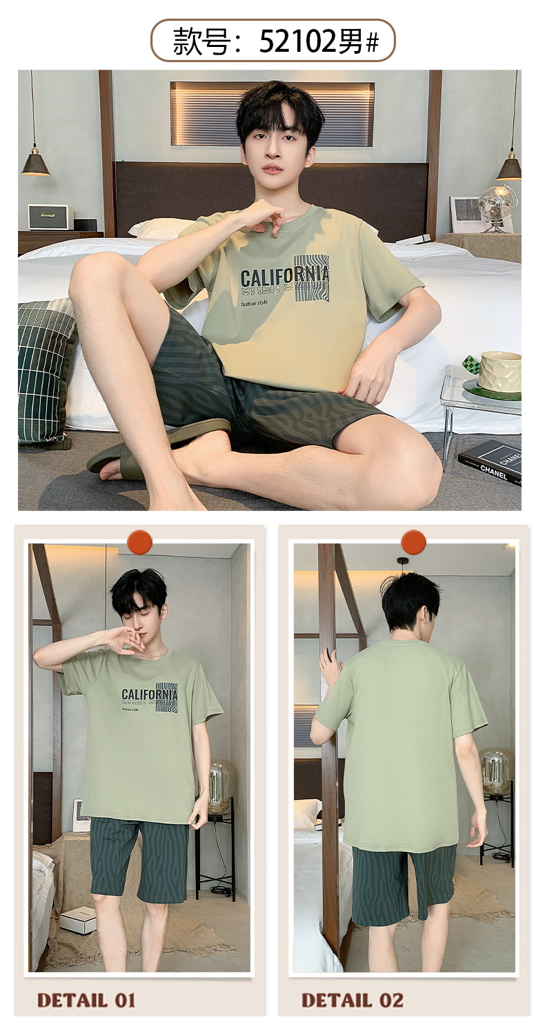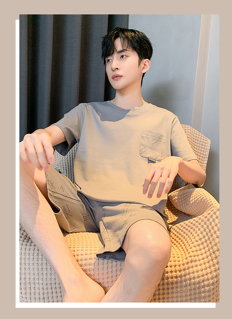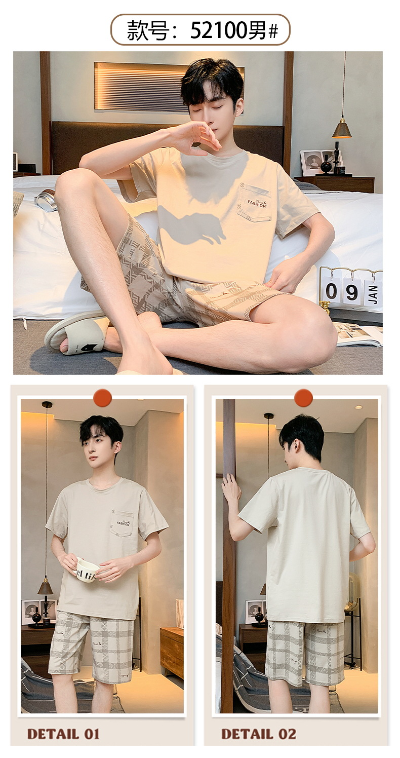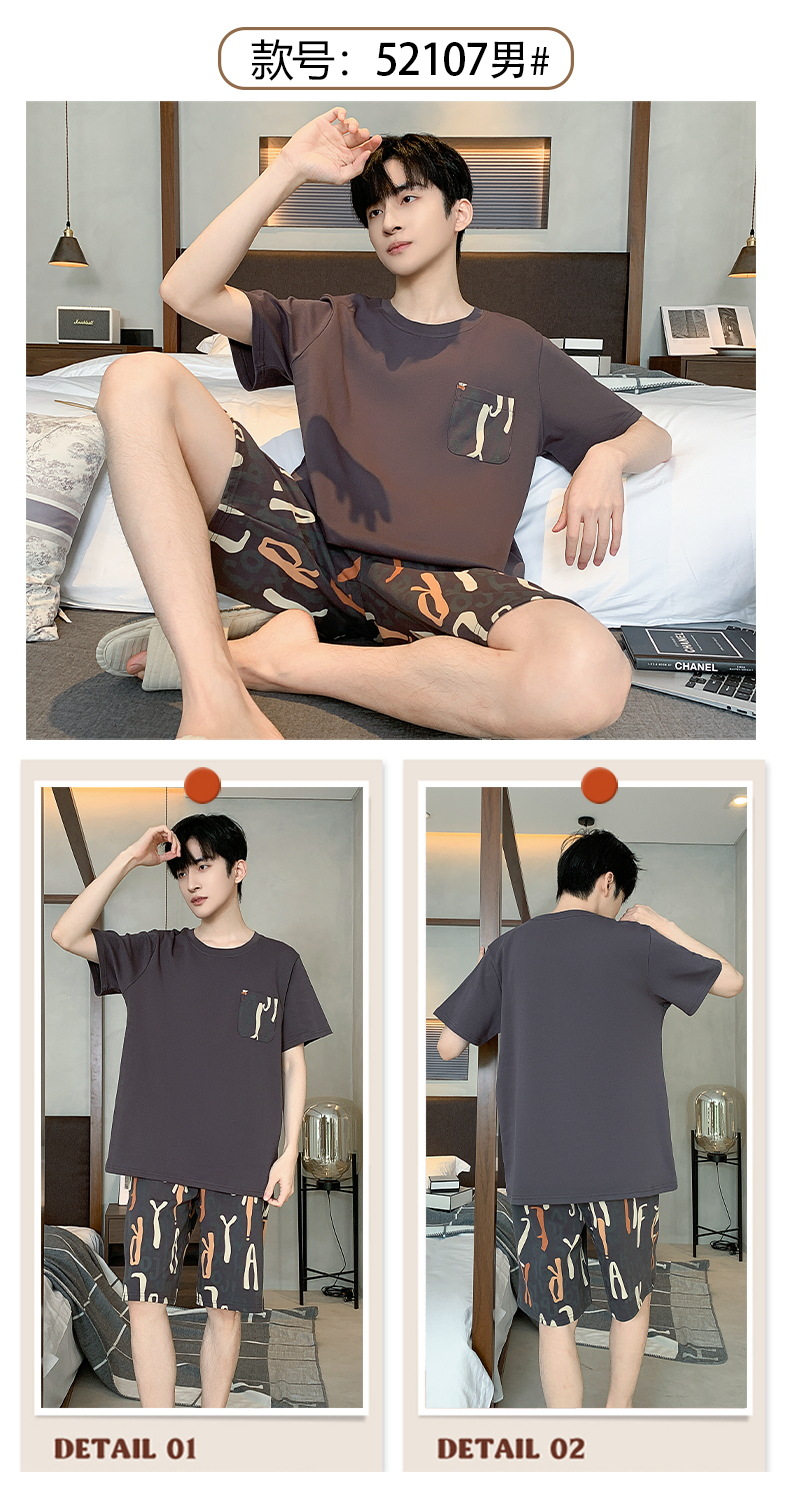Pijamas de algodón de los hombres de manga corta de verano lindo de dibujos animados hombres jóvenes sueltos 2024 Nuevo traje de homewear de talla grande