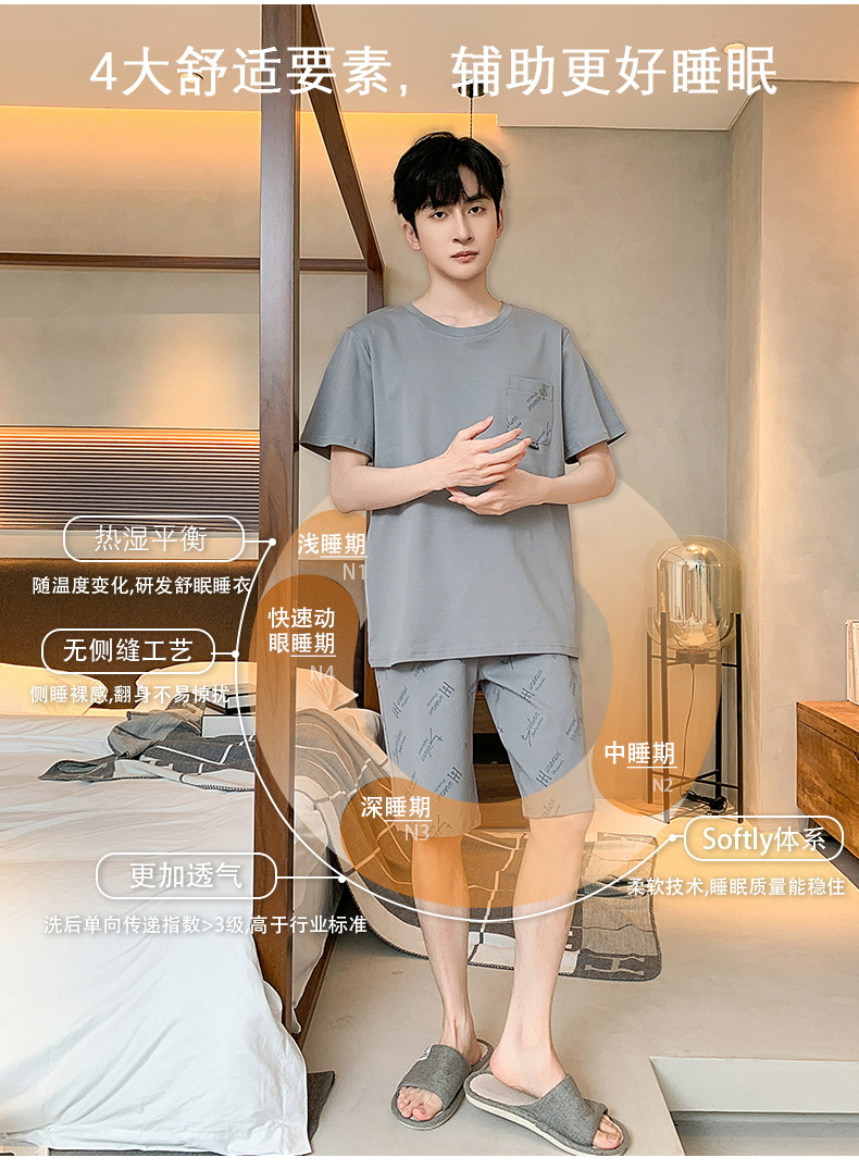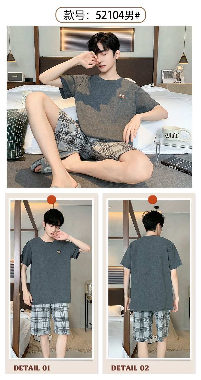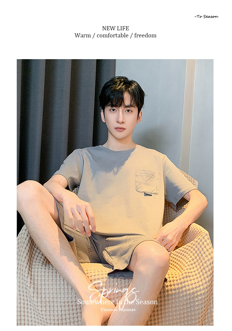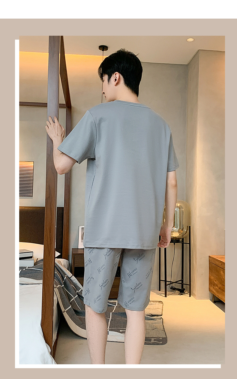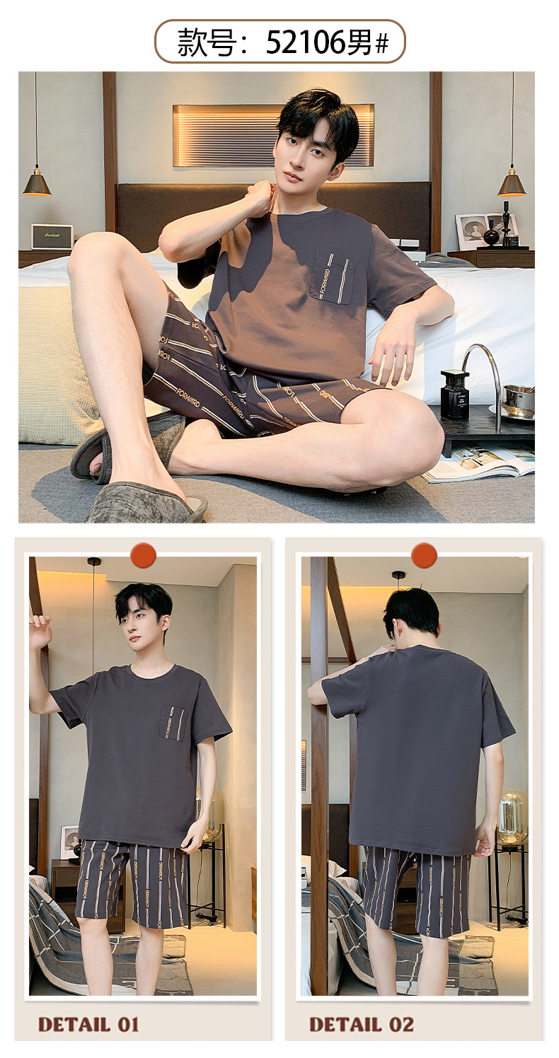 Pijamas de algodón de los hombres de manga corta de verano lindo de dibujos animados hombres jóvenes sueltos 2024 Nuevo traje de homewear de talla grande