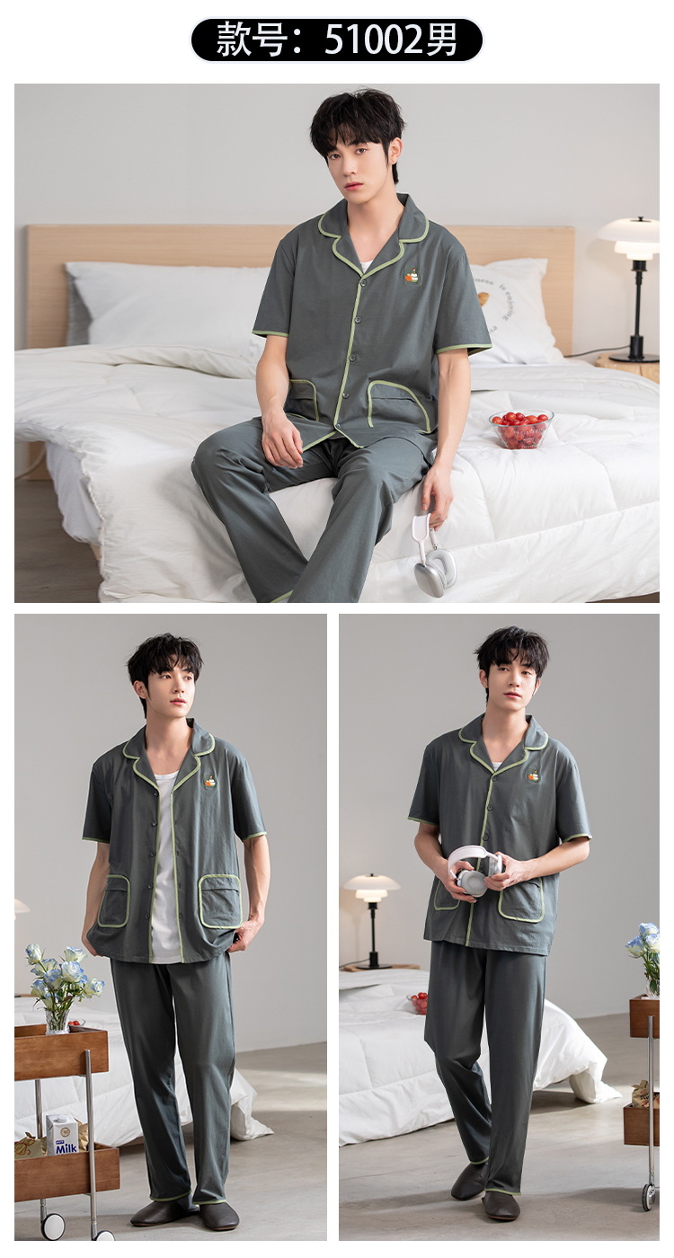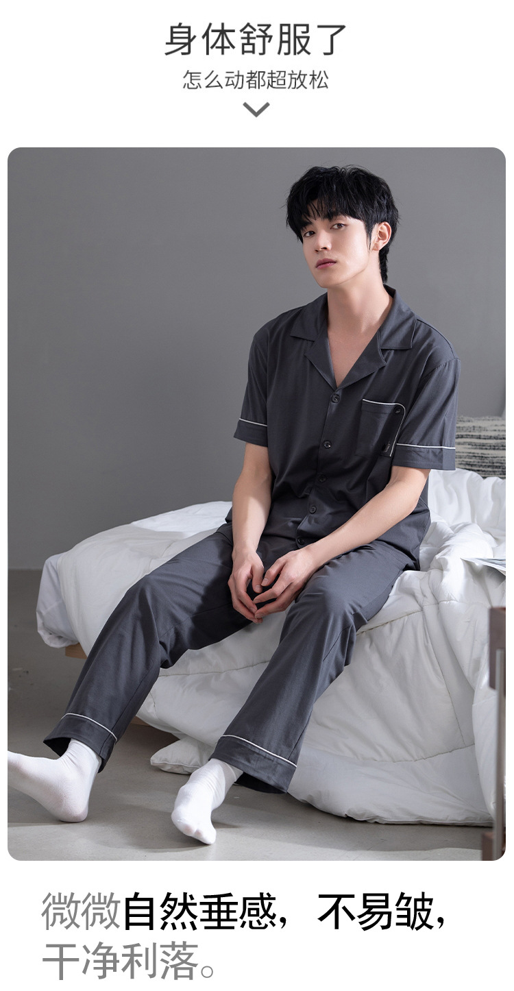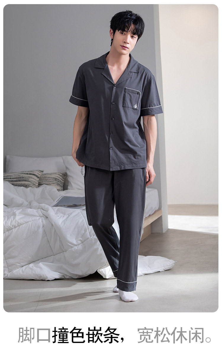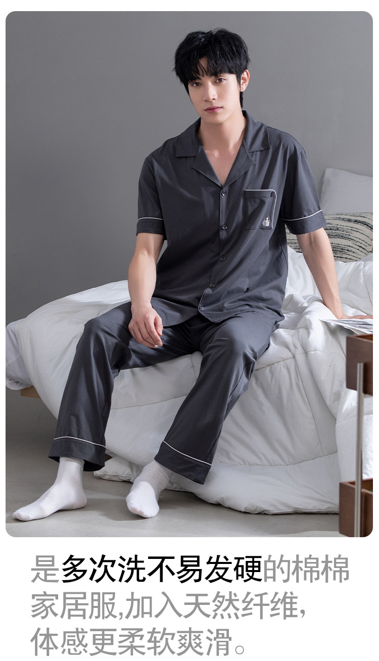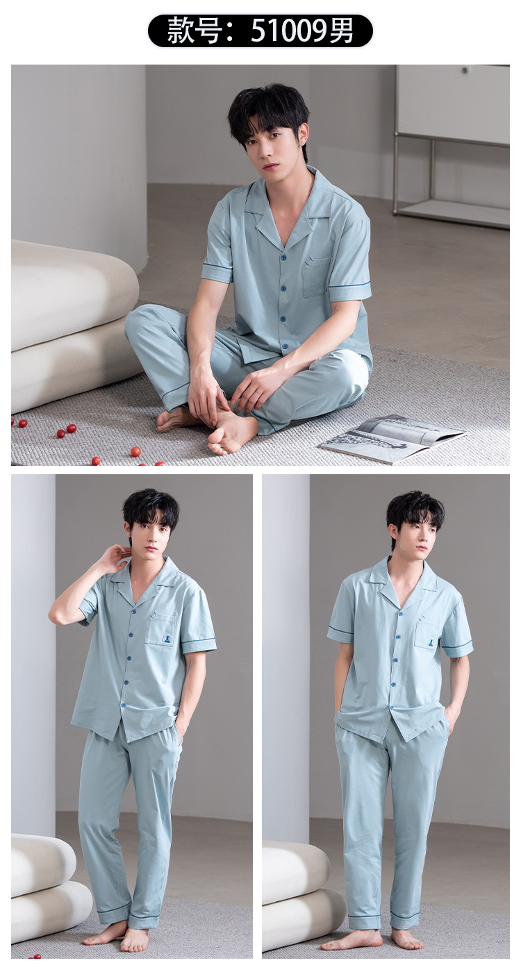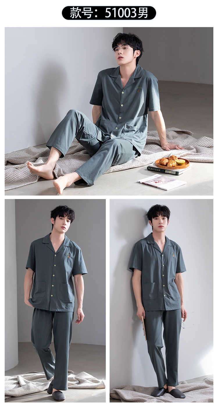 Pijamas de hombre Pantalones de manga corta de verano de los hombres traje de algodón de media manga solapa de los hombres de verano ropa para el hogar primavera y otoño