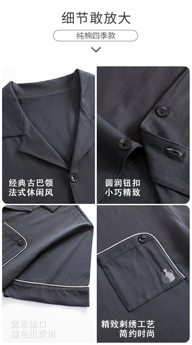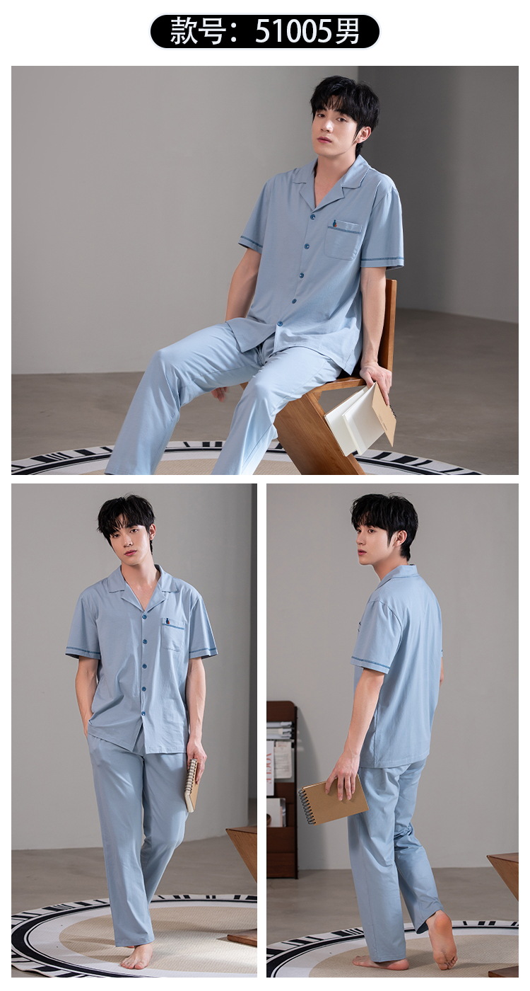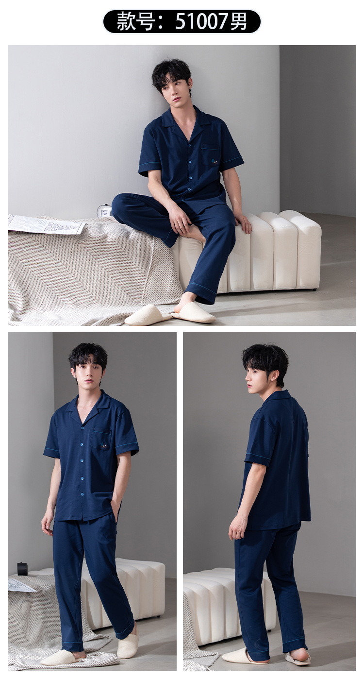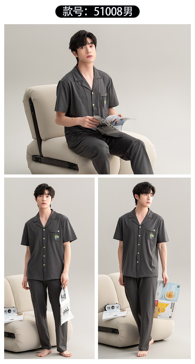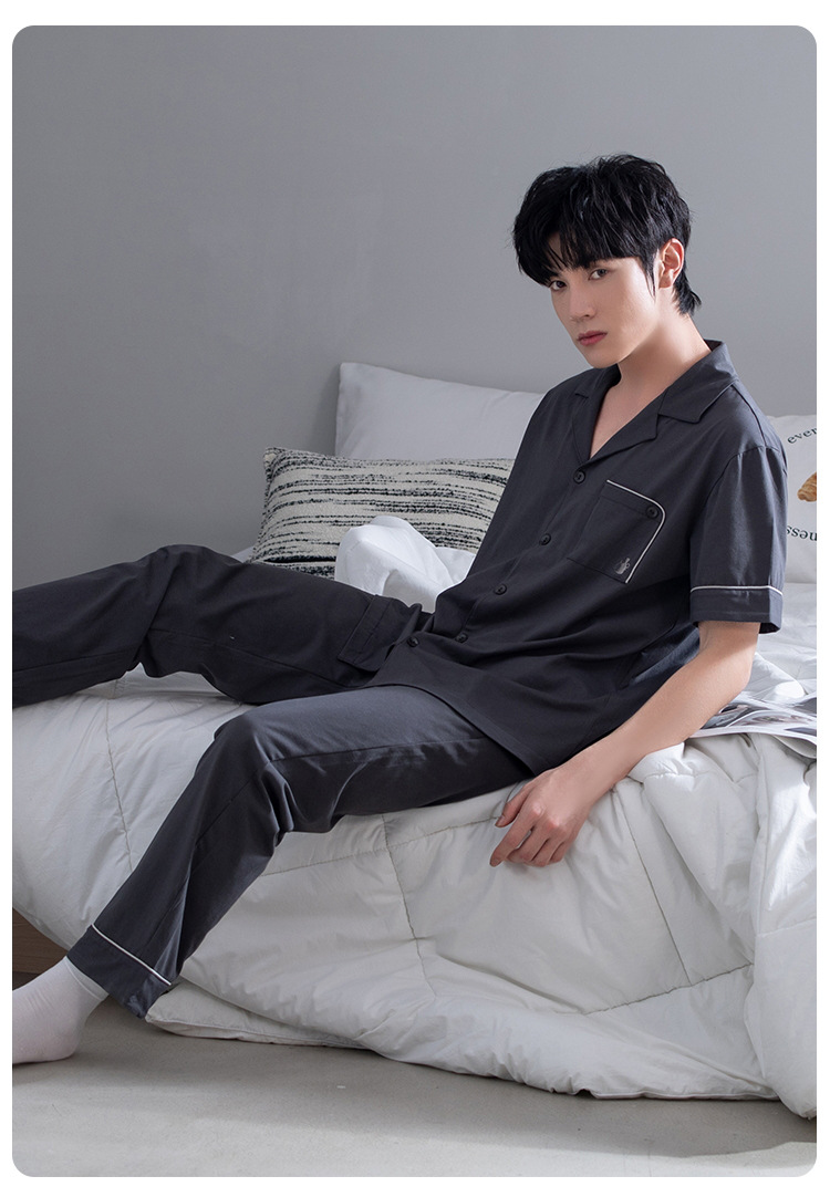 Pijamas de hombre Pantalones de manga corta de verano de los hombres traje de algodón de media manga solapa de los hombres de verano ropa para el hogar primavera y otoño